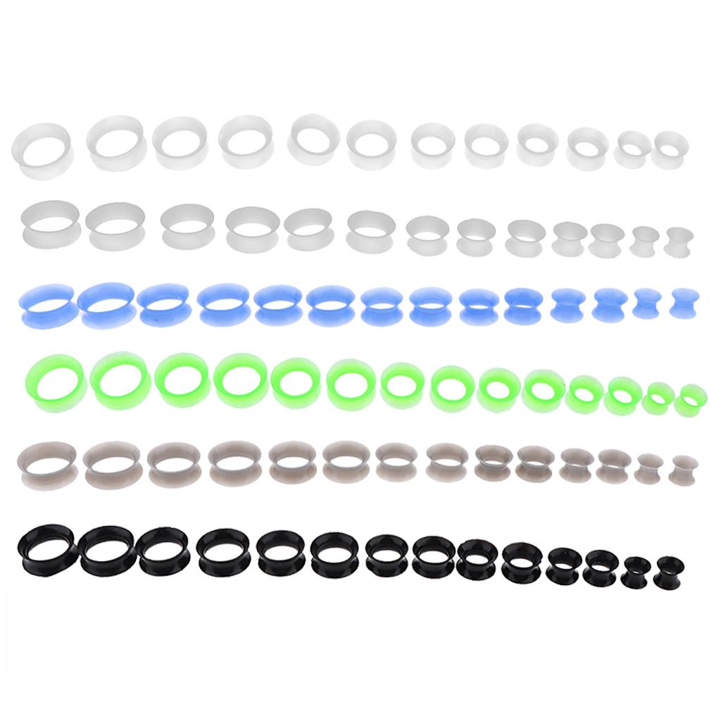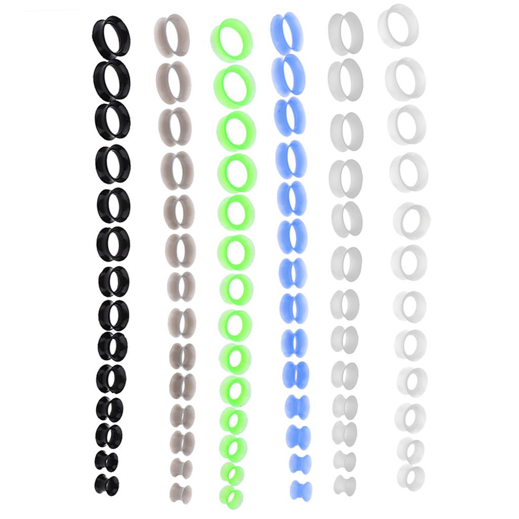 Hollow Thin Silicone Ear stretching kit - you will get 7 pairs different colors double flared silicone tunnels.