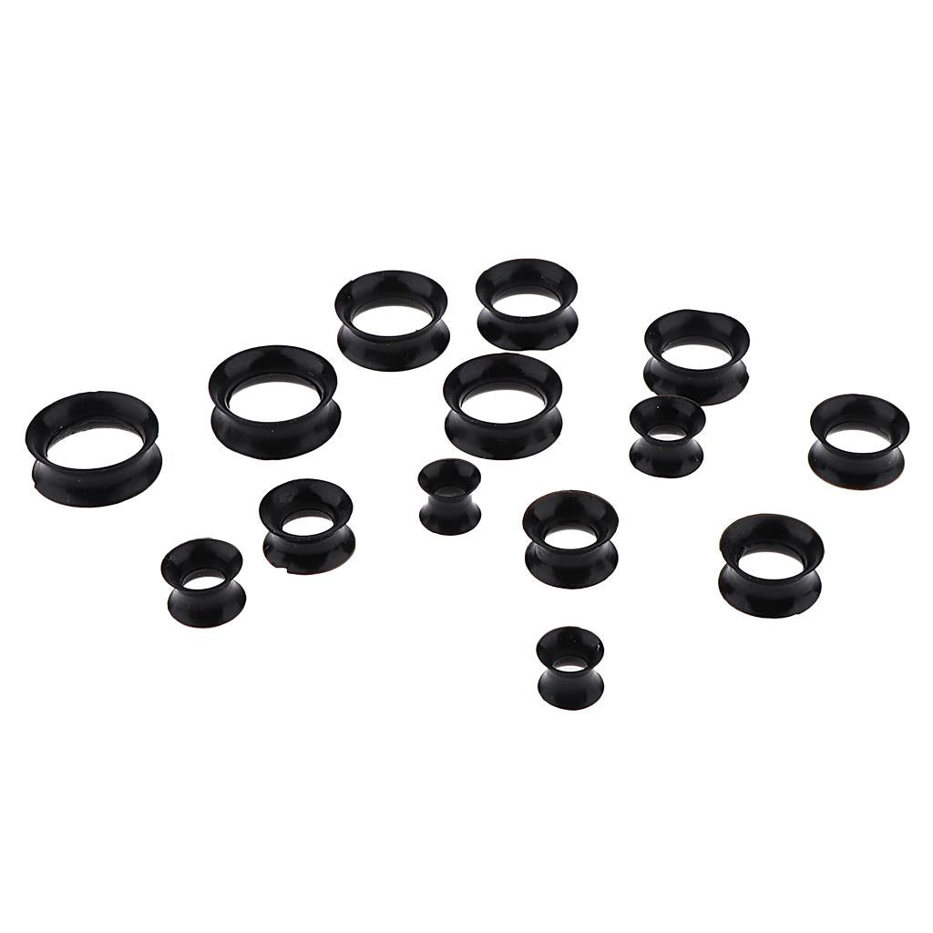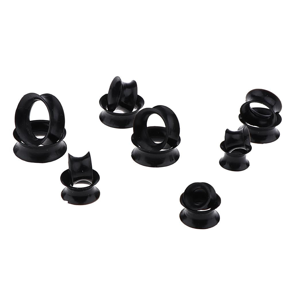 7 Pairs Lot Flexible Silicone Ear Gauges Thin Soft Plugs Flesh Tunnels Black