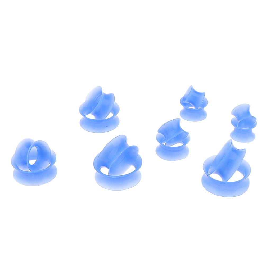 7 Pairs Lot Flexible Silicone Ear Gauges Thin Soft Plugs Flesh Tunnels Blue