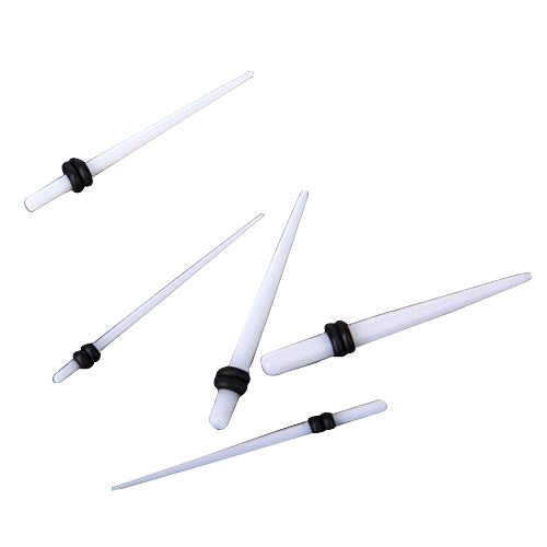Stretch your ears with our 5 pieces of Acrylic Ear Taper Kit. Start with size 16G(1.3 mm) to 8G (3 mm). There is one taper in each size. Each taper comes with double o-rings.