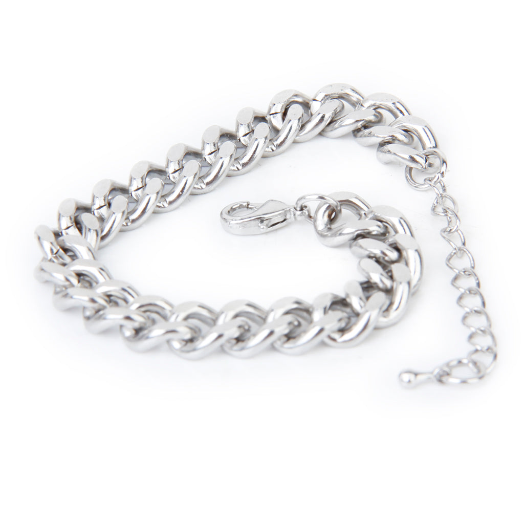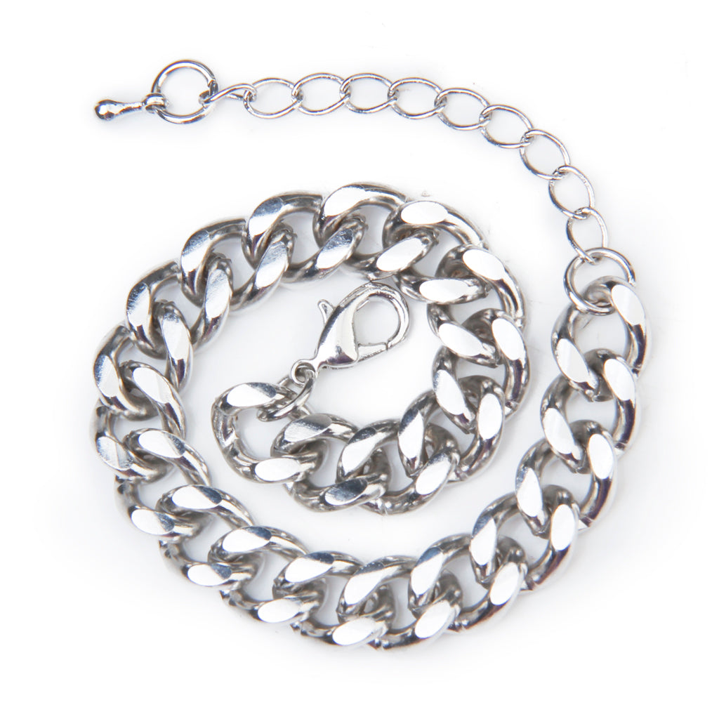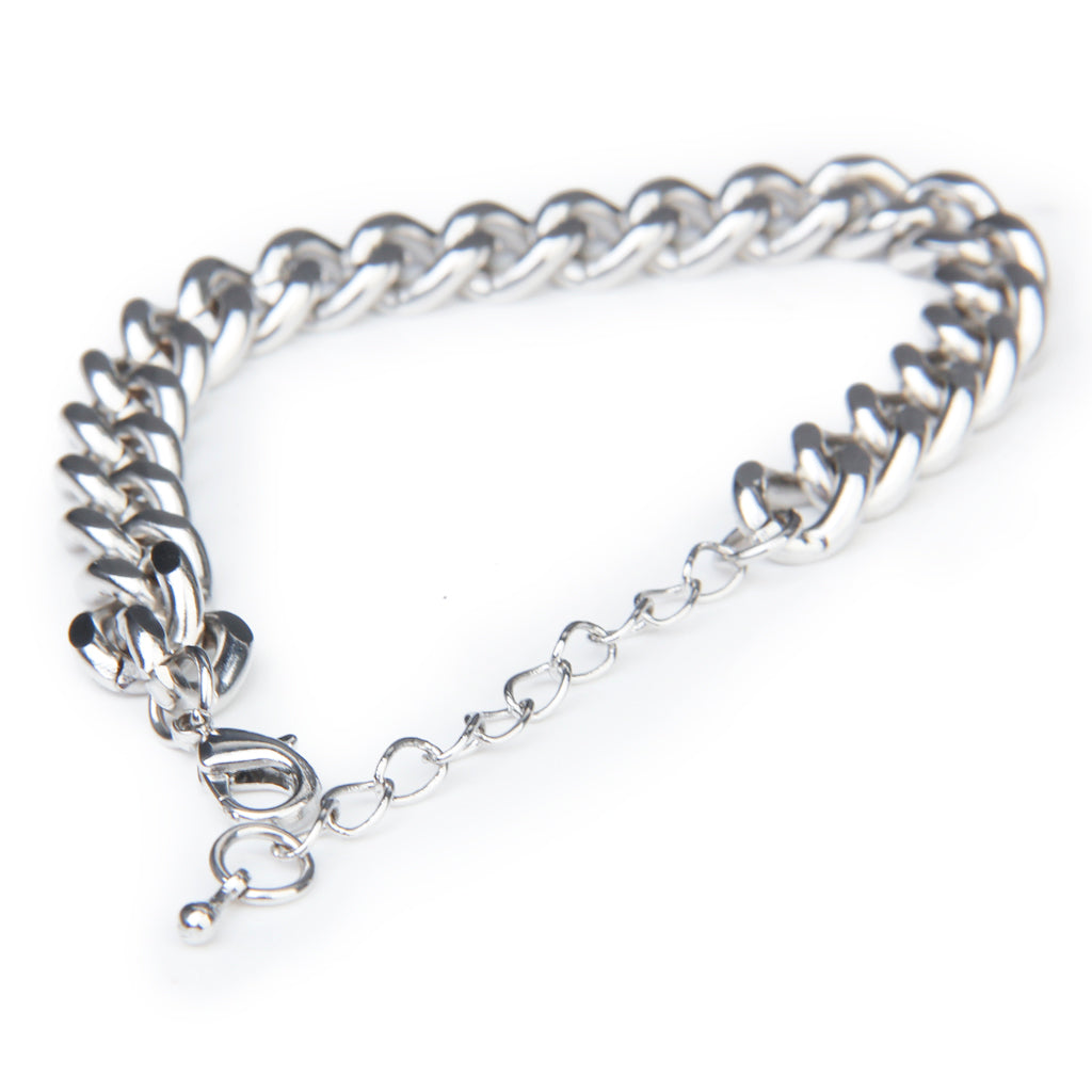 Adjustable Fashion Silver Metal Link Chain Charm Cuff Bracelet Wristband