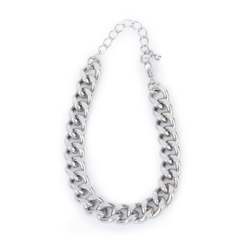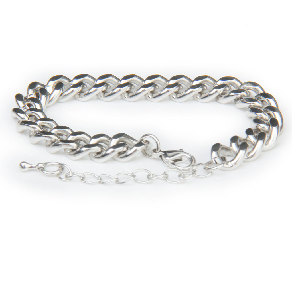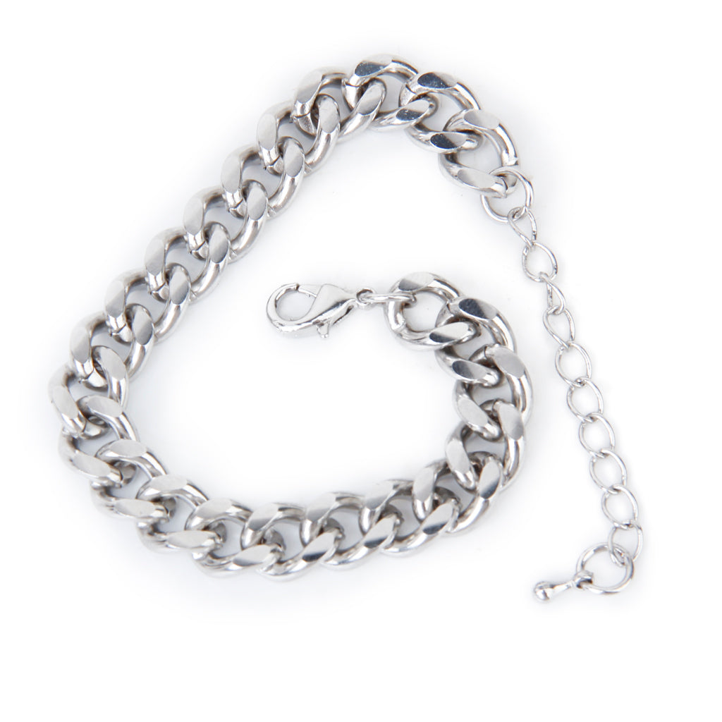 Adjustable Fashion Silver Metal Link Chain Charm Cuff Bracelet Wristband
