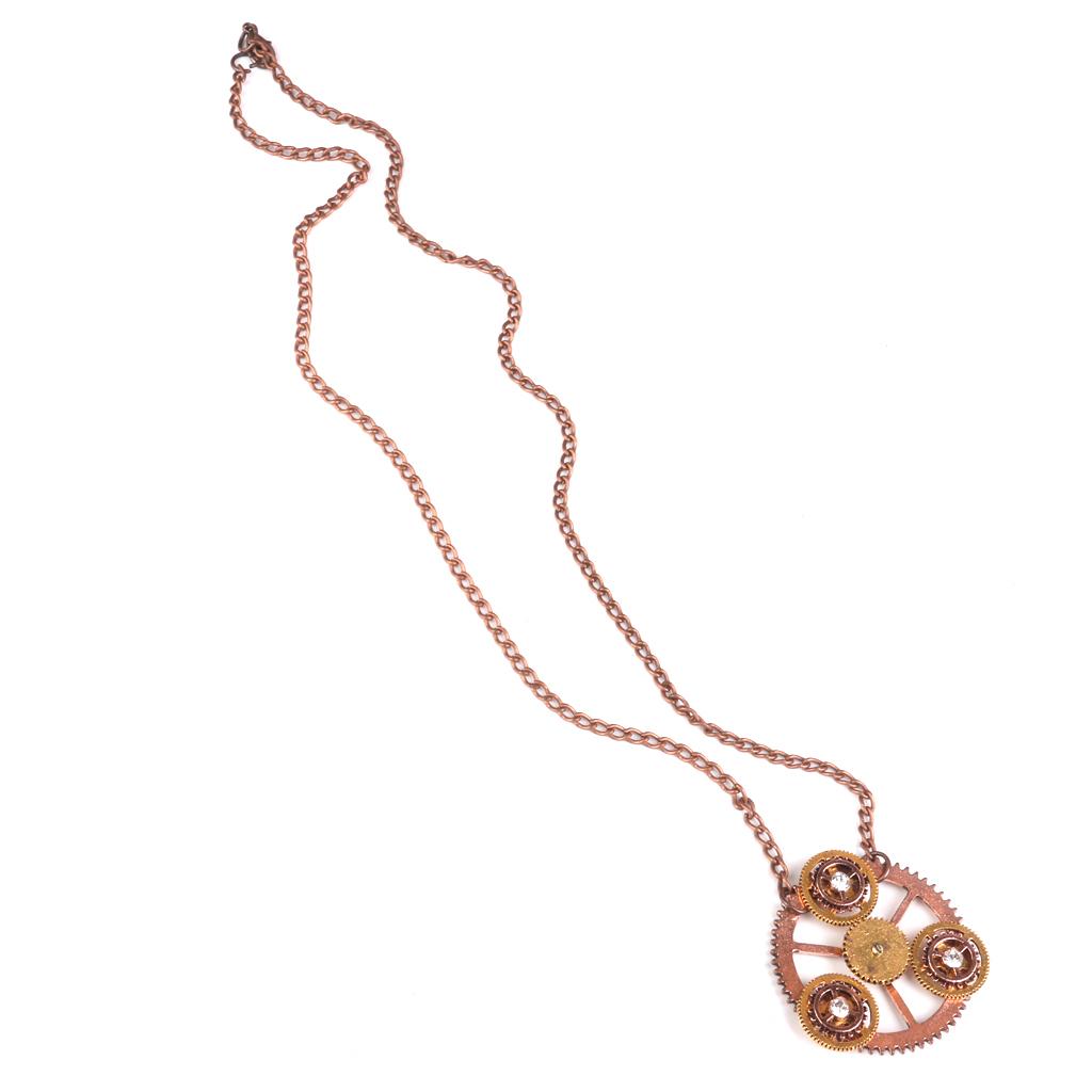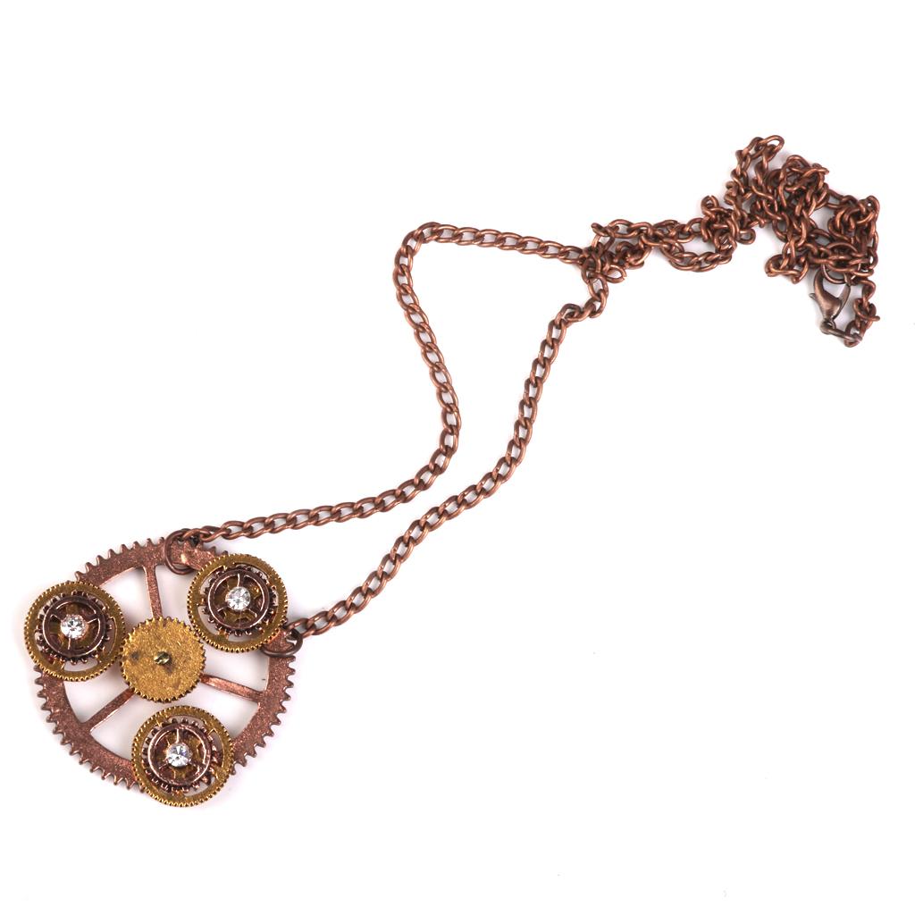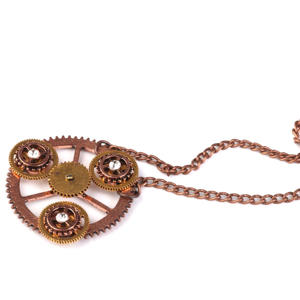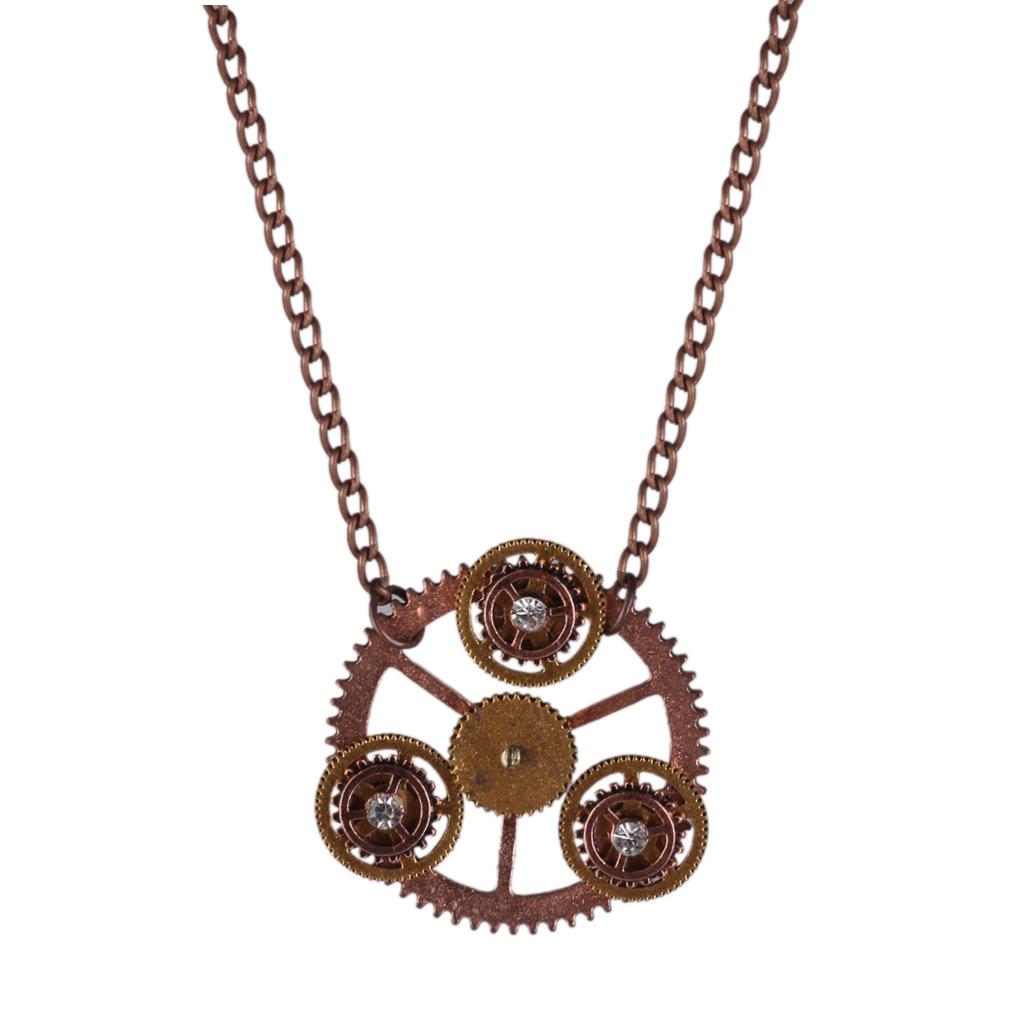 • Pendant filled with tiny cogs and gears, decorated with 3 sparkly rhinestones