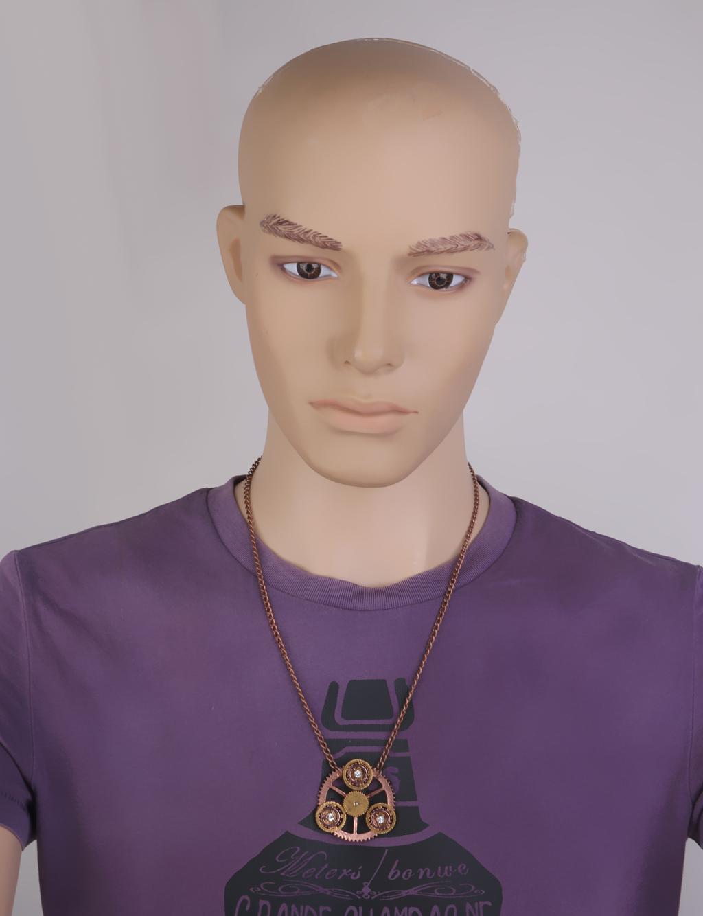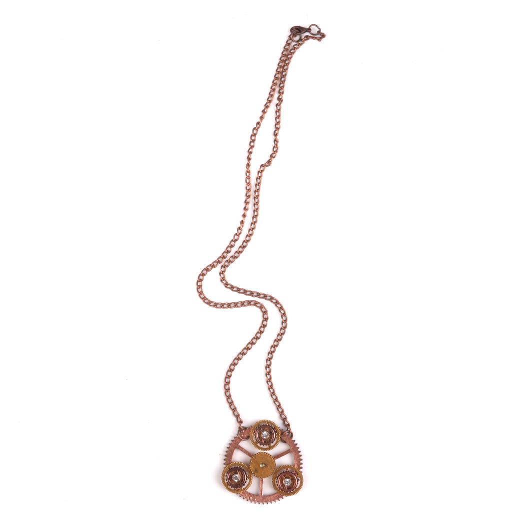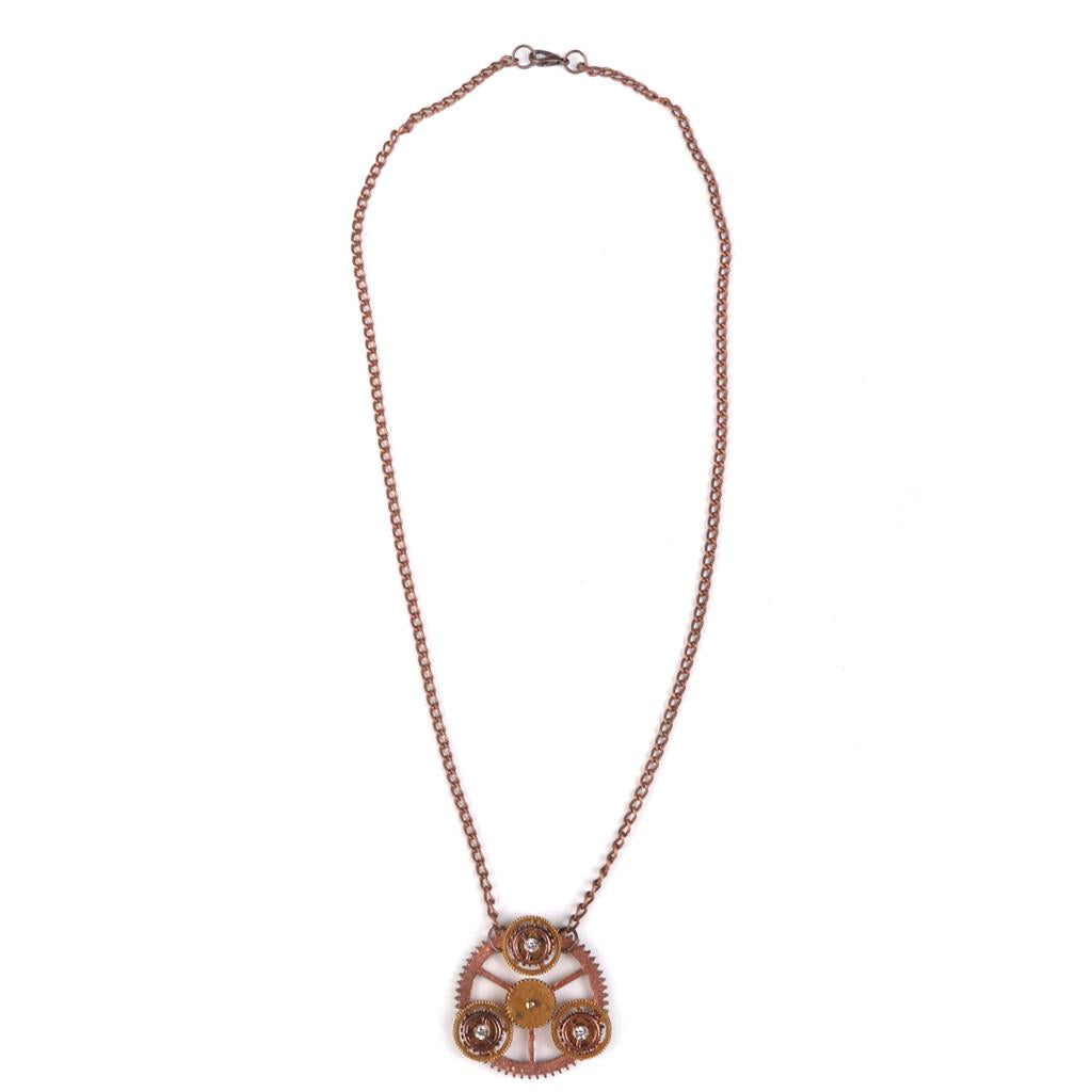 • Pendant filled with tiny cogs and gears, decorated with 3 sparkly rhinestones