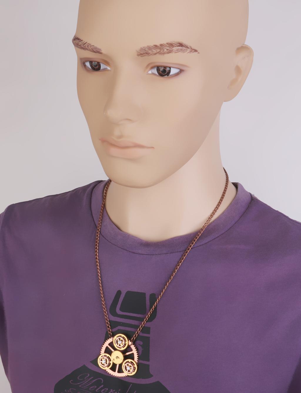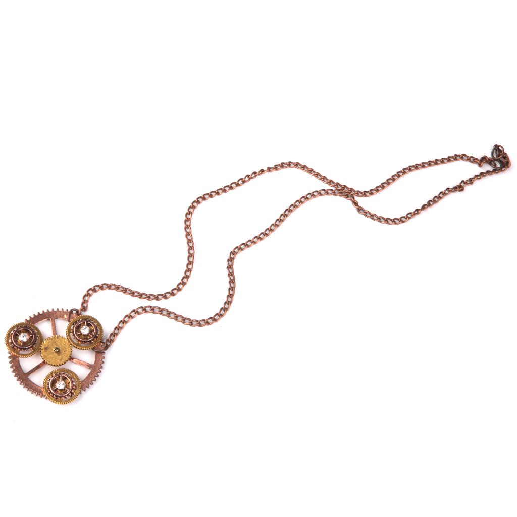 Alloy Steampunk Rhinestone Gears Charm Pendant Chain Necklace Ancient Red