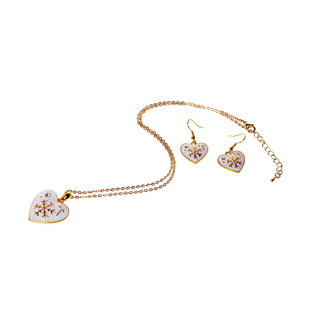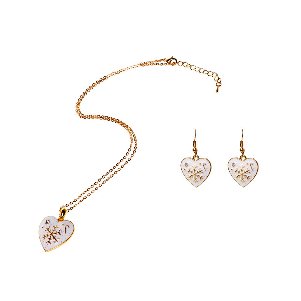 Christmas Crystal Snowflake Heart Dangle Earrings Necklace Gold Jewelry Sets