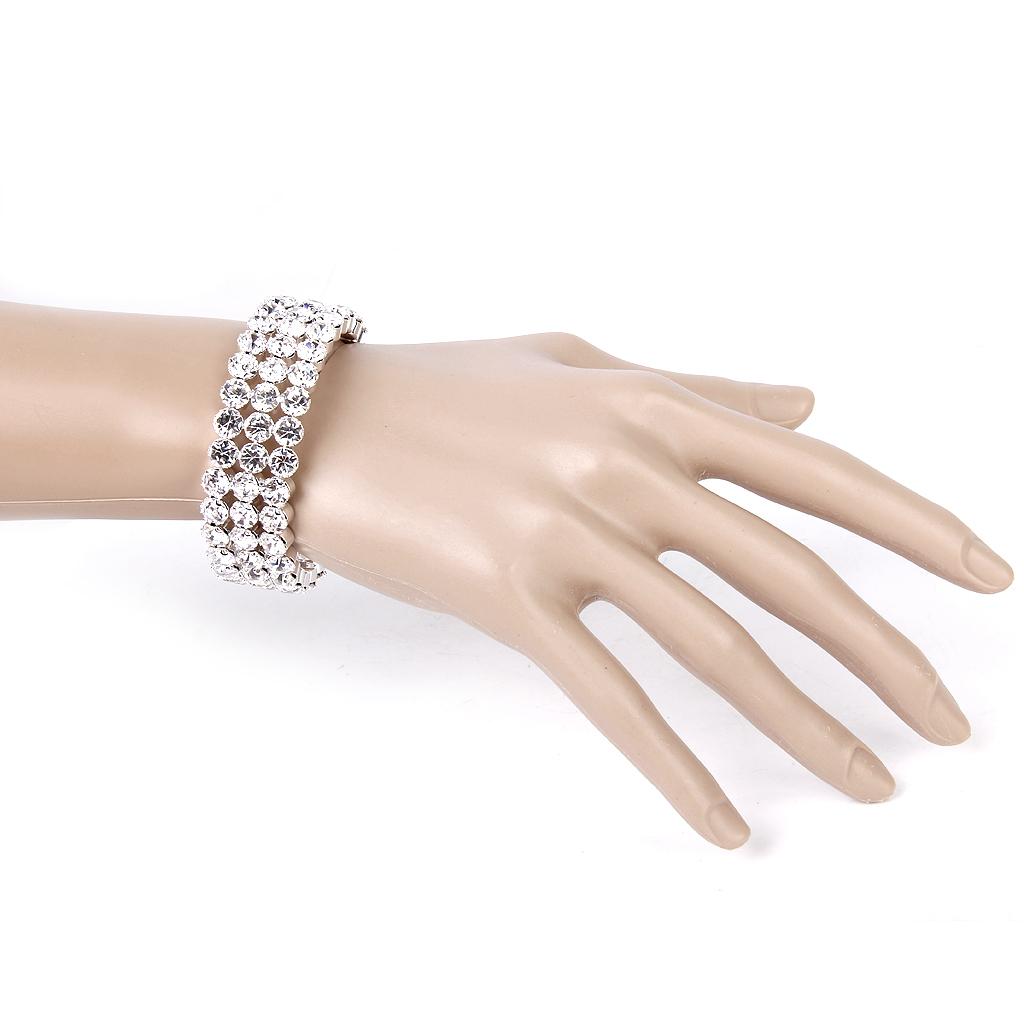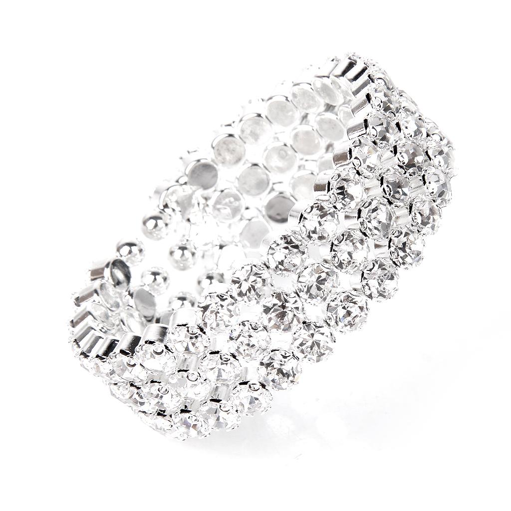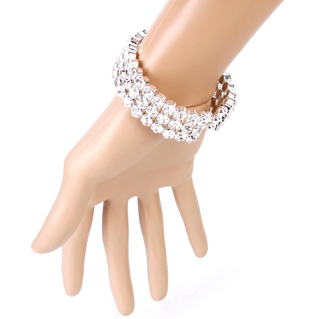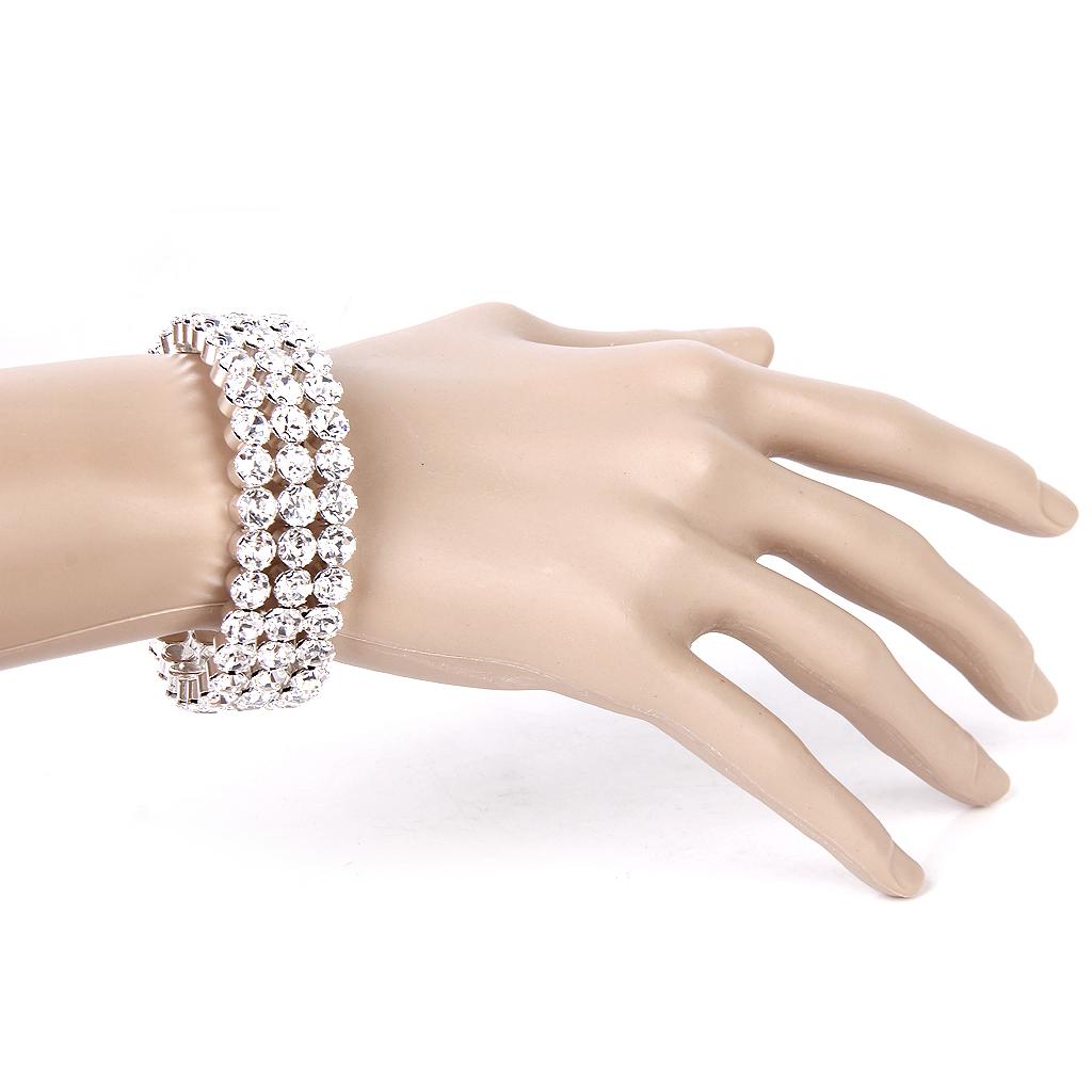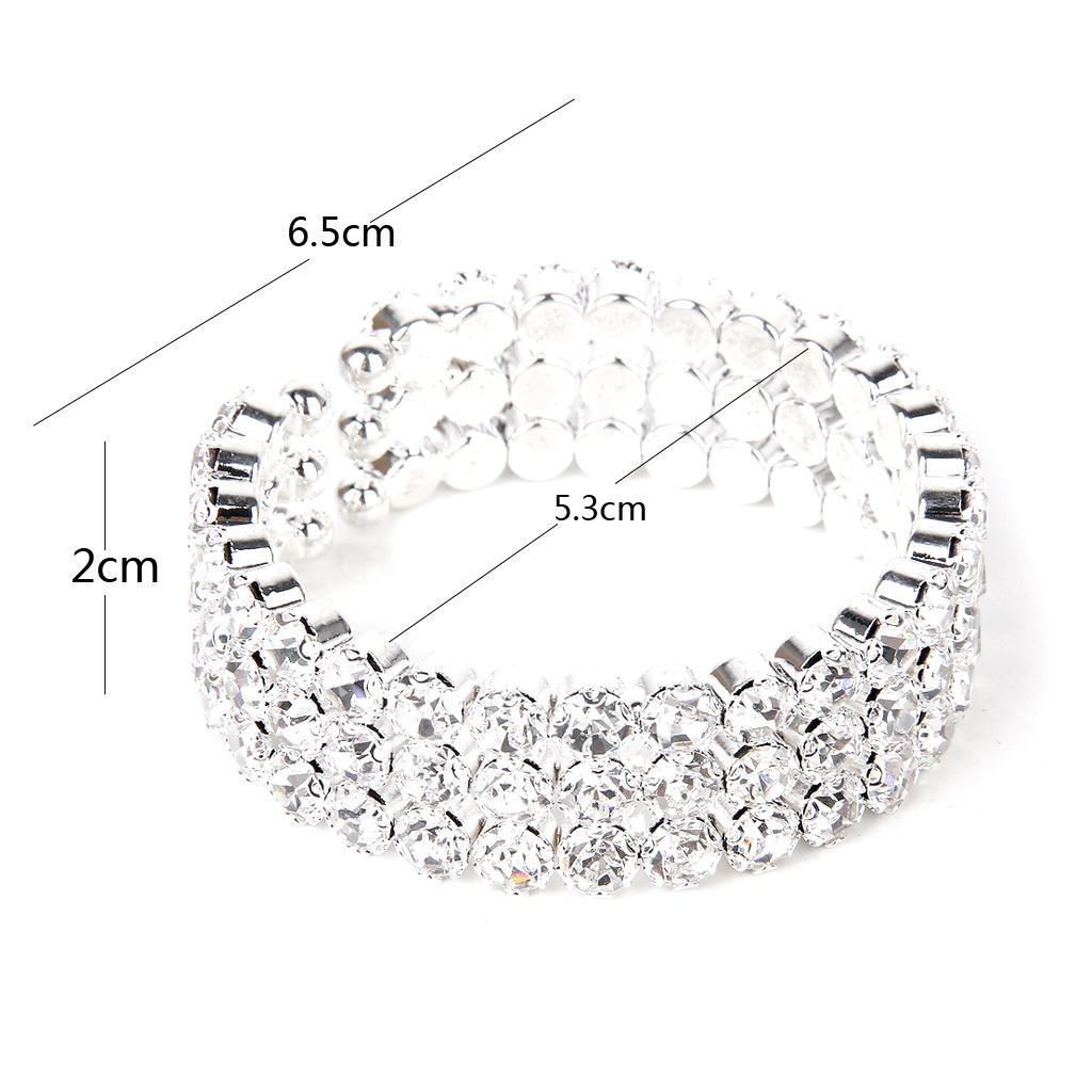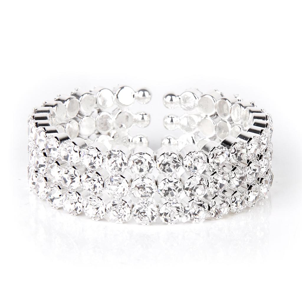 Clear Silver Wedding Bridal 3-Row Crystal Rhinestone Open Cuff Bracelet Wristband
