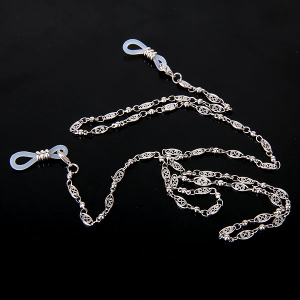 The copper fashion eyeglass chain is very delicate and gorgeous.It is a great jewelry, but also very durable and never rust. Both sides of the high elastic silicone rubber tip firmly entangle the temples, not easy to fall off. The chain is a great choice as a gift to friends.