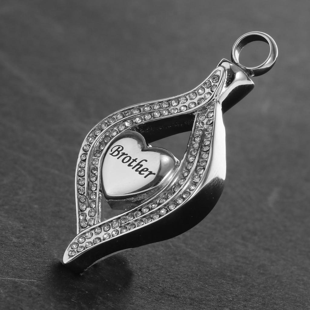 Crystal Heart Cremation Urn Necklace Ashes Keepsake Pendant Jewelry Brother