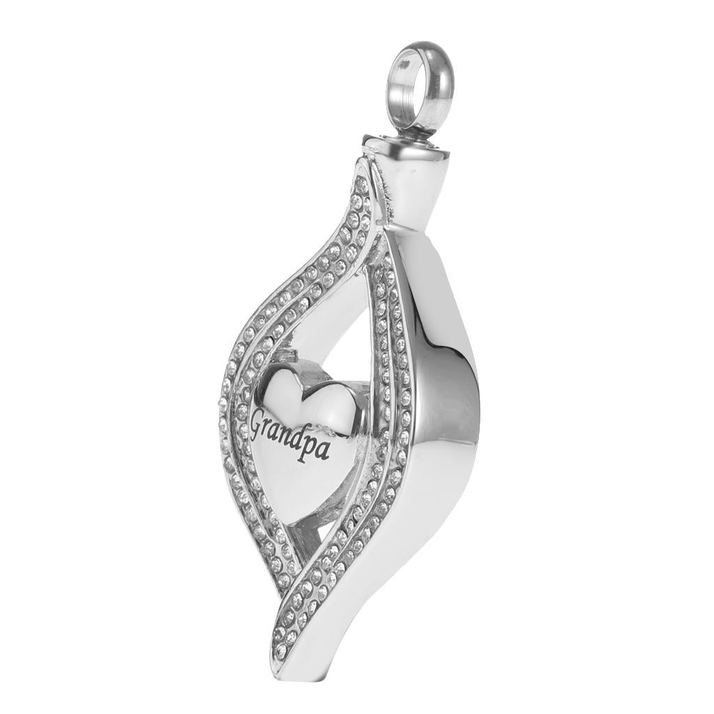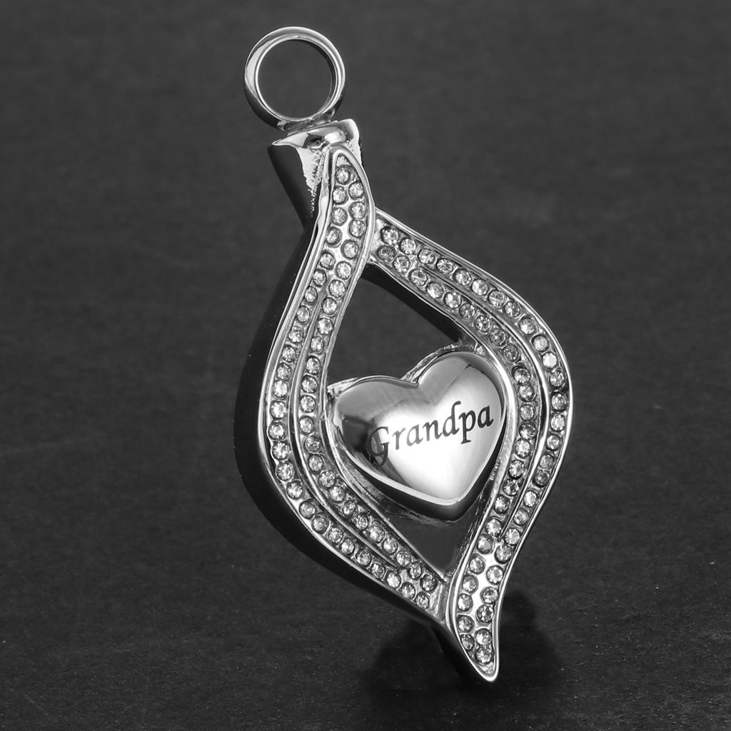 Crystal Heart Cremation Urn Necklace Ashes Keepsake Pendant Jewelry Grandpa