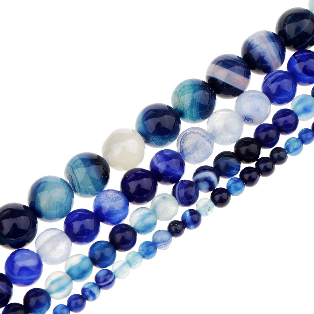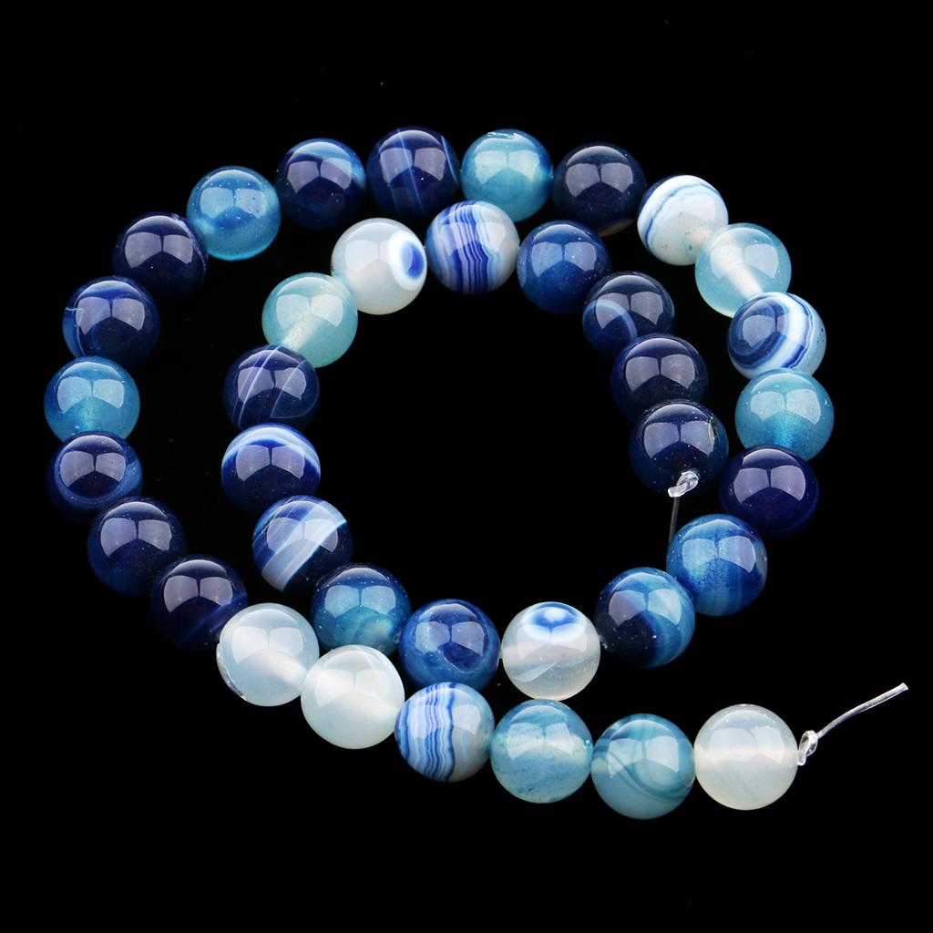 Dark Blue Natural Agate Beads Striped Loose Beads Bulk Jewelry Crfats 10mm