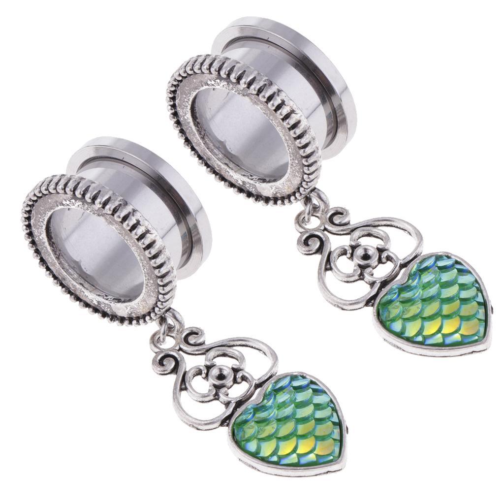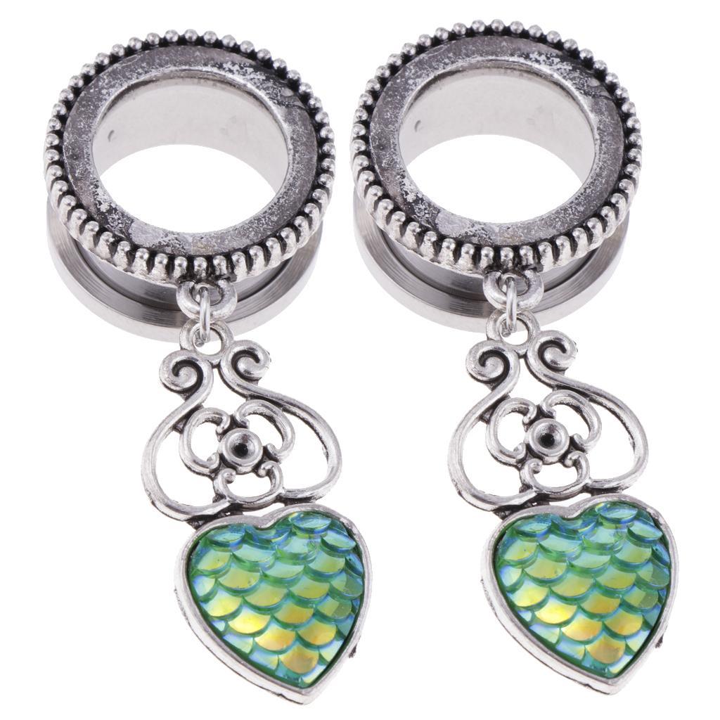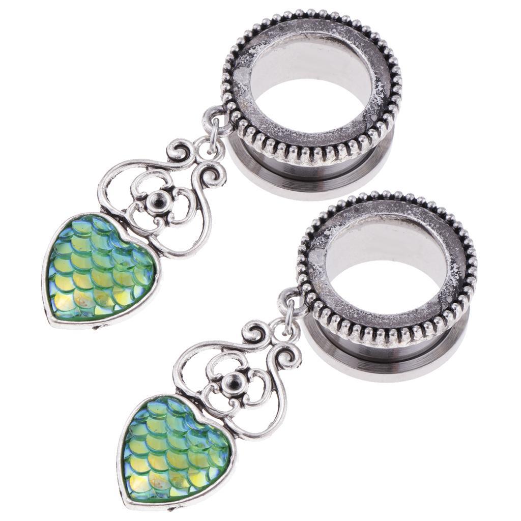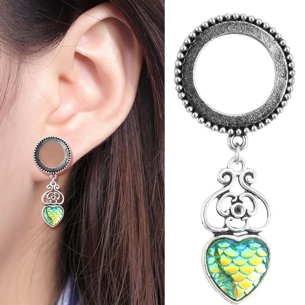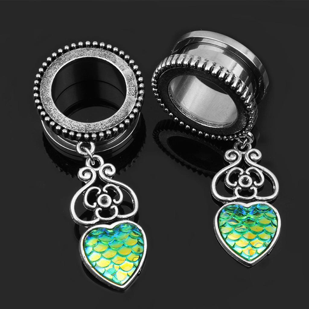 Ear Flesh Tunnels Heart Shape Fish Scale Dangle Ear Piercing Jewelry 18mm