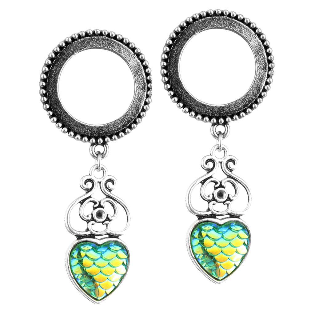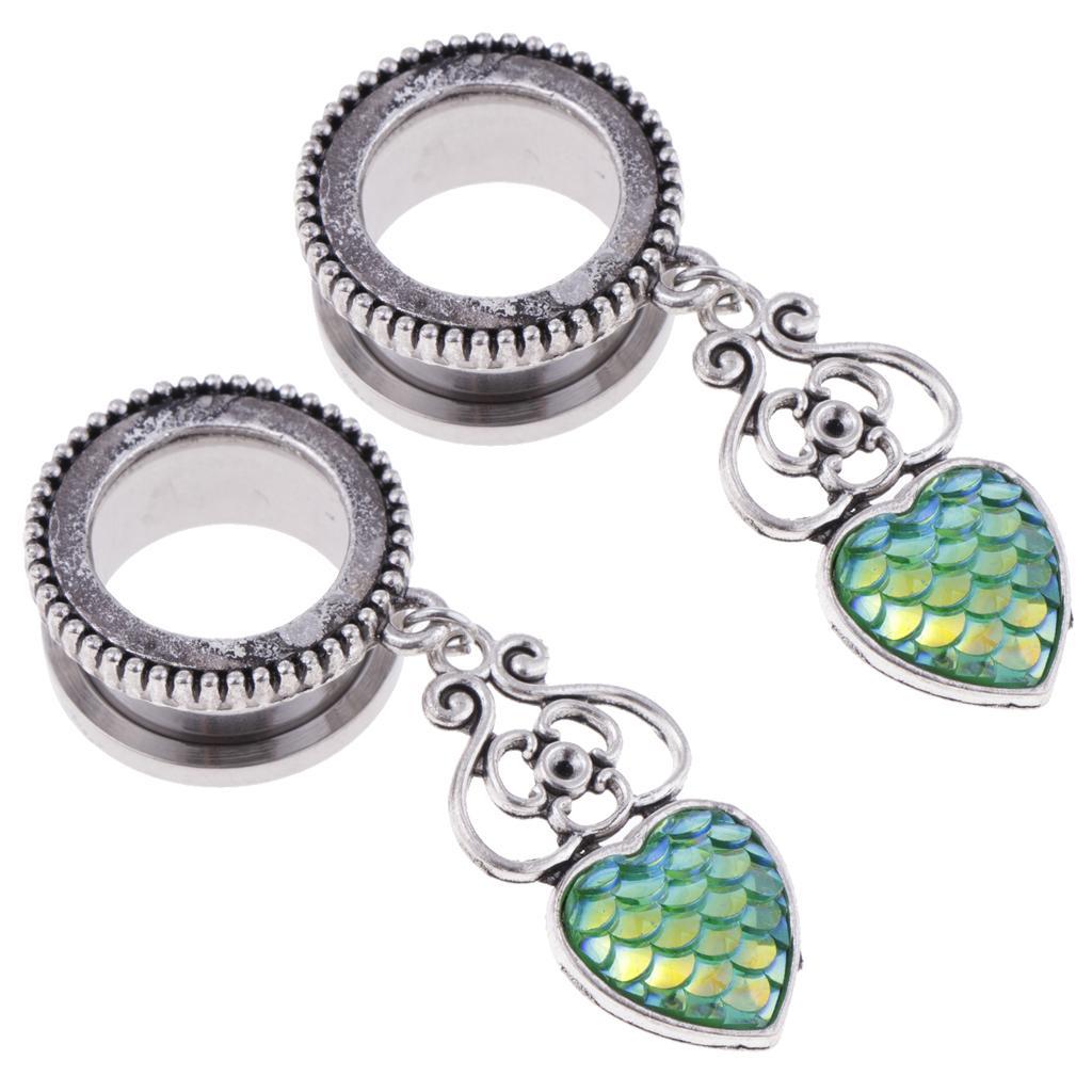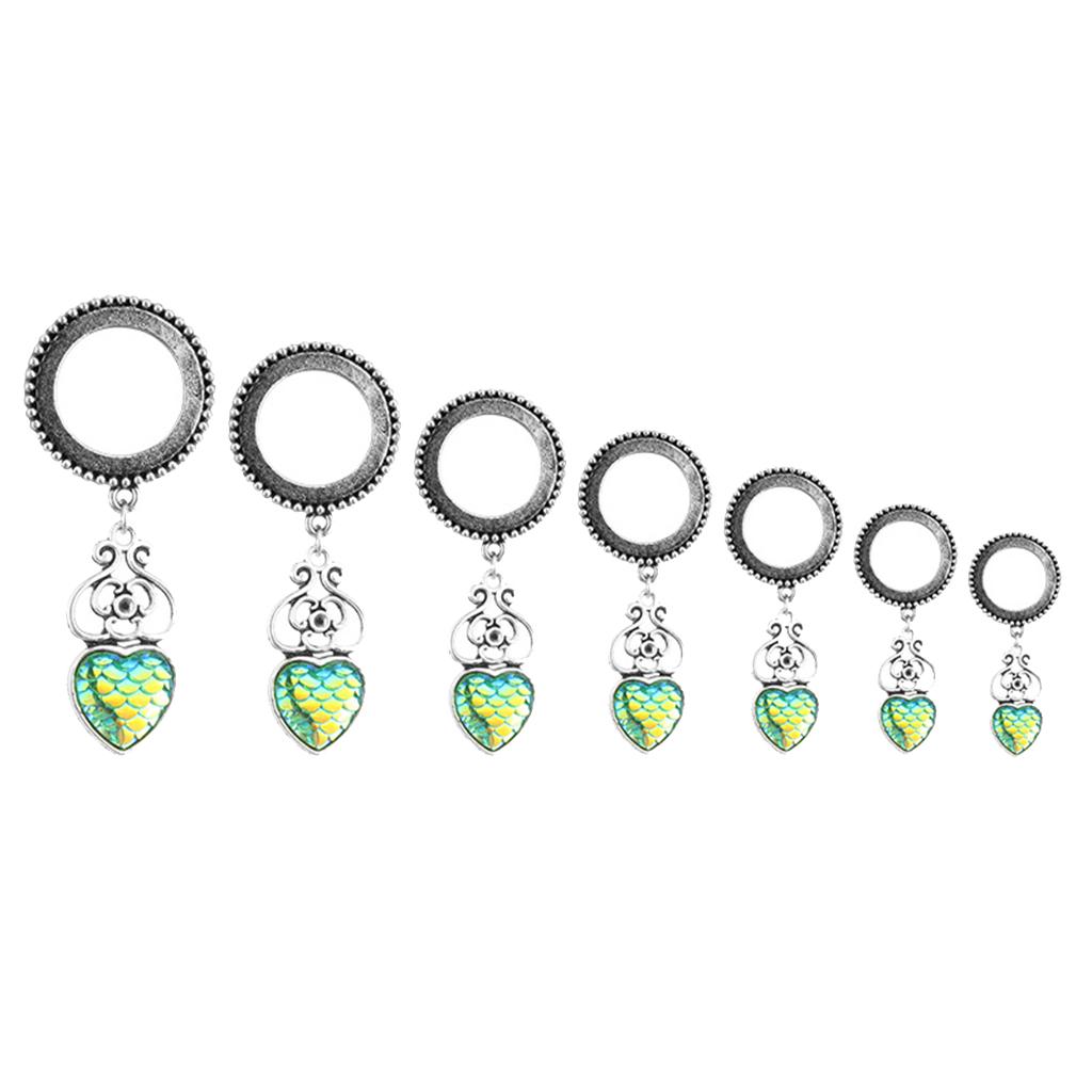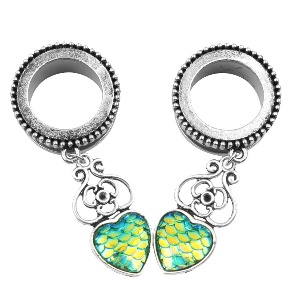 Ear Flesh Tunnels Heart Shape Fish Scale Dangle Ear Piercing Jewelry 18mm
