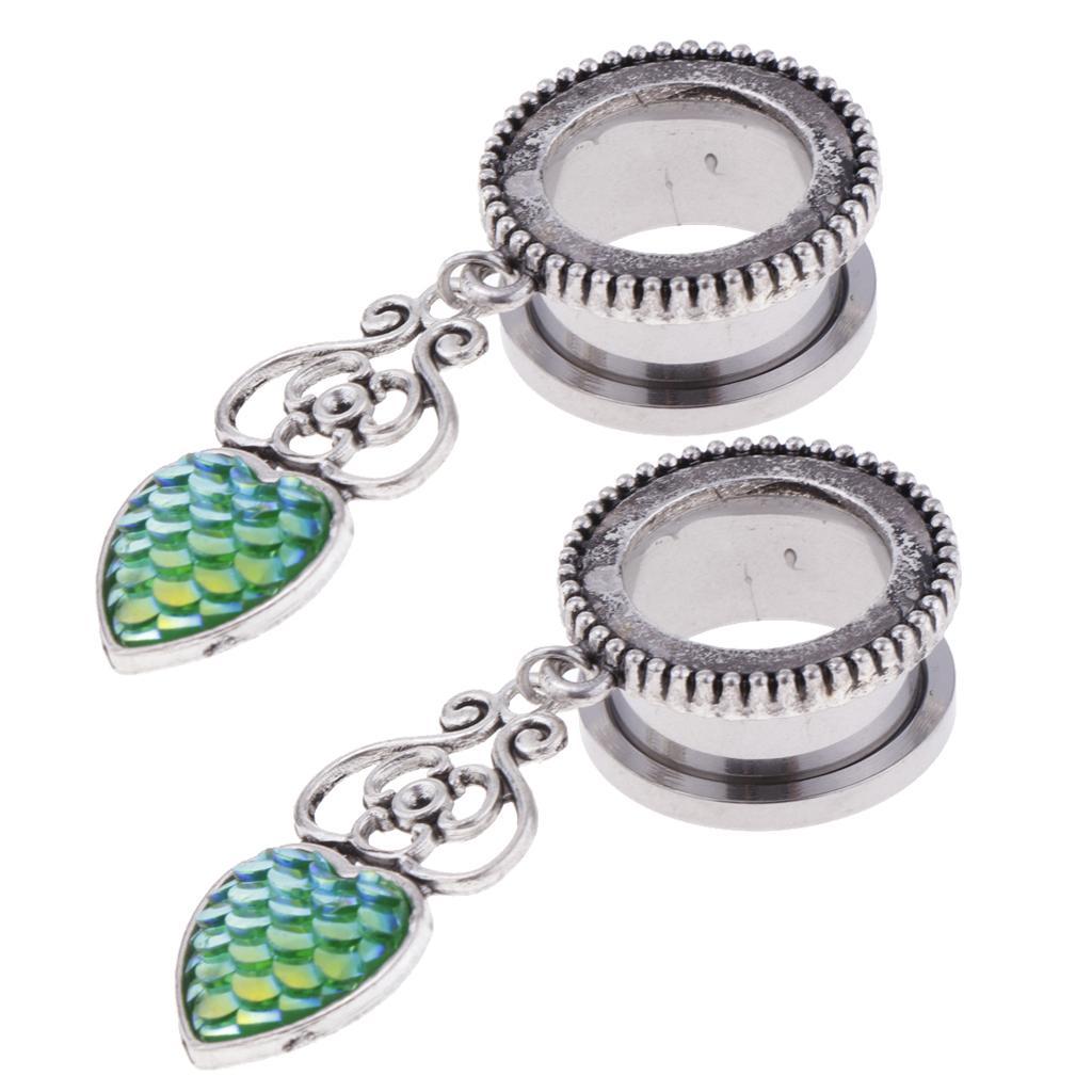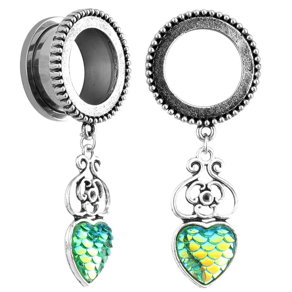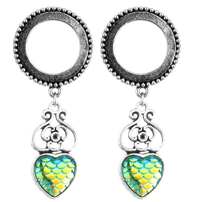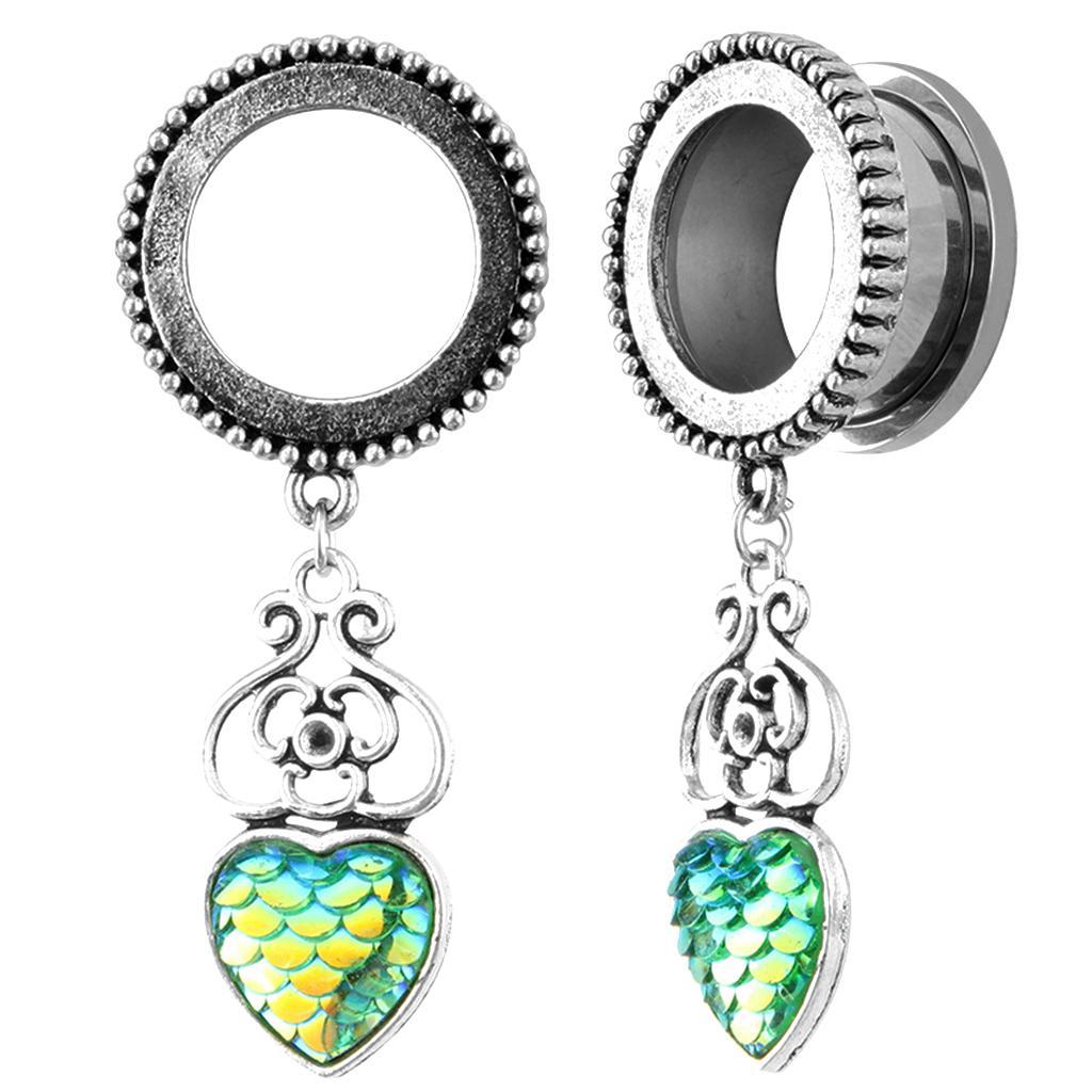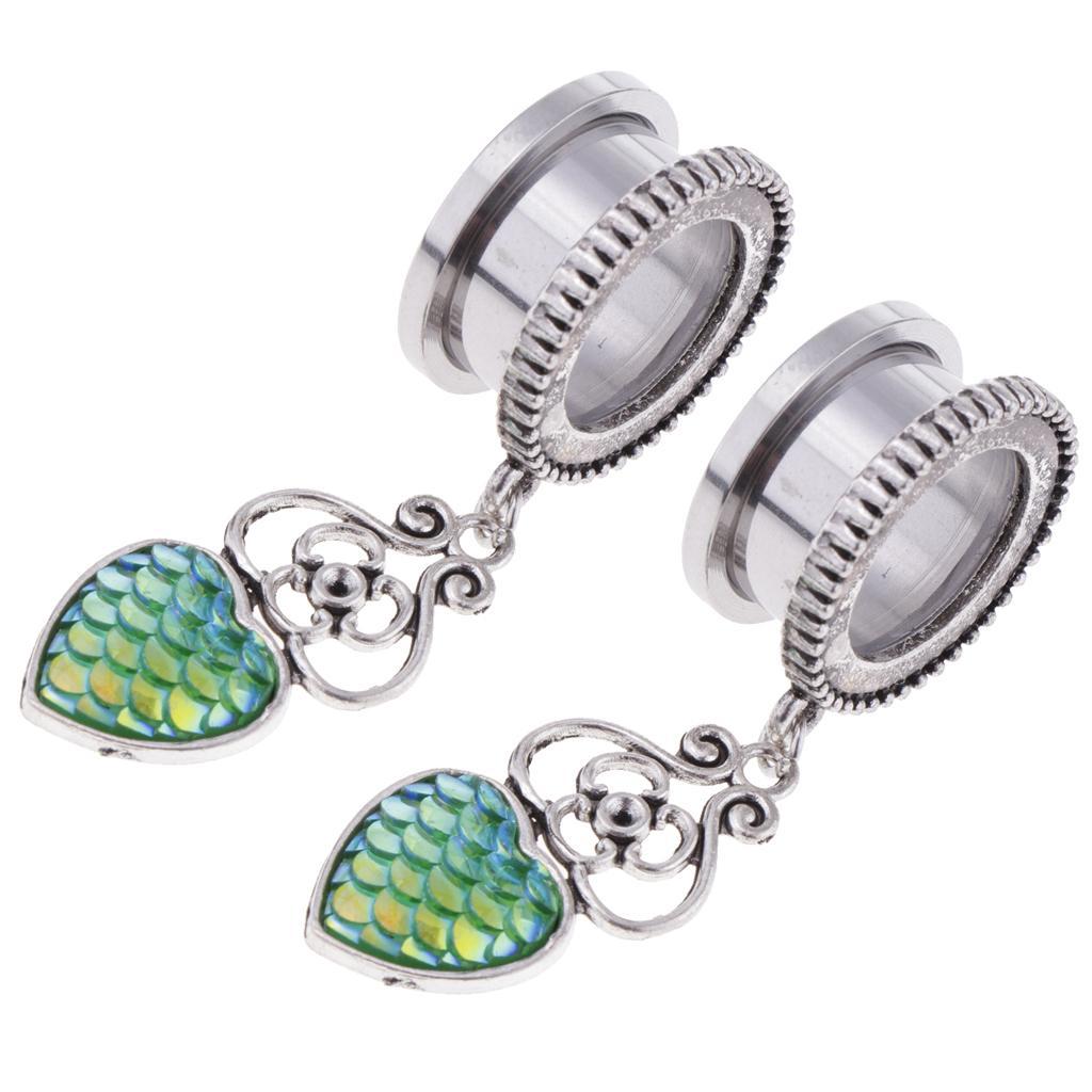 Ear Flesh Tunnels Heart Shape Fish Scale Dangle Ear Piercing Jewelry 18mm