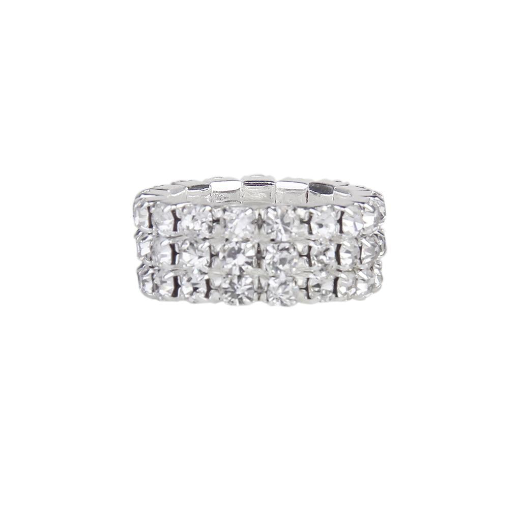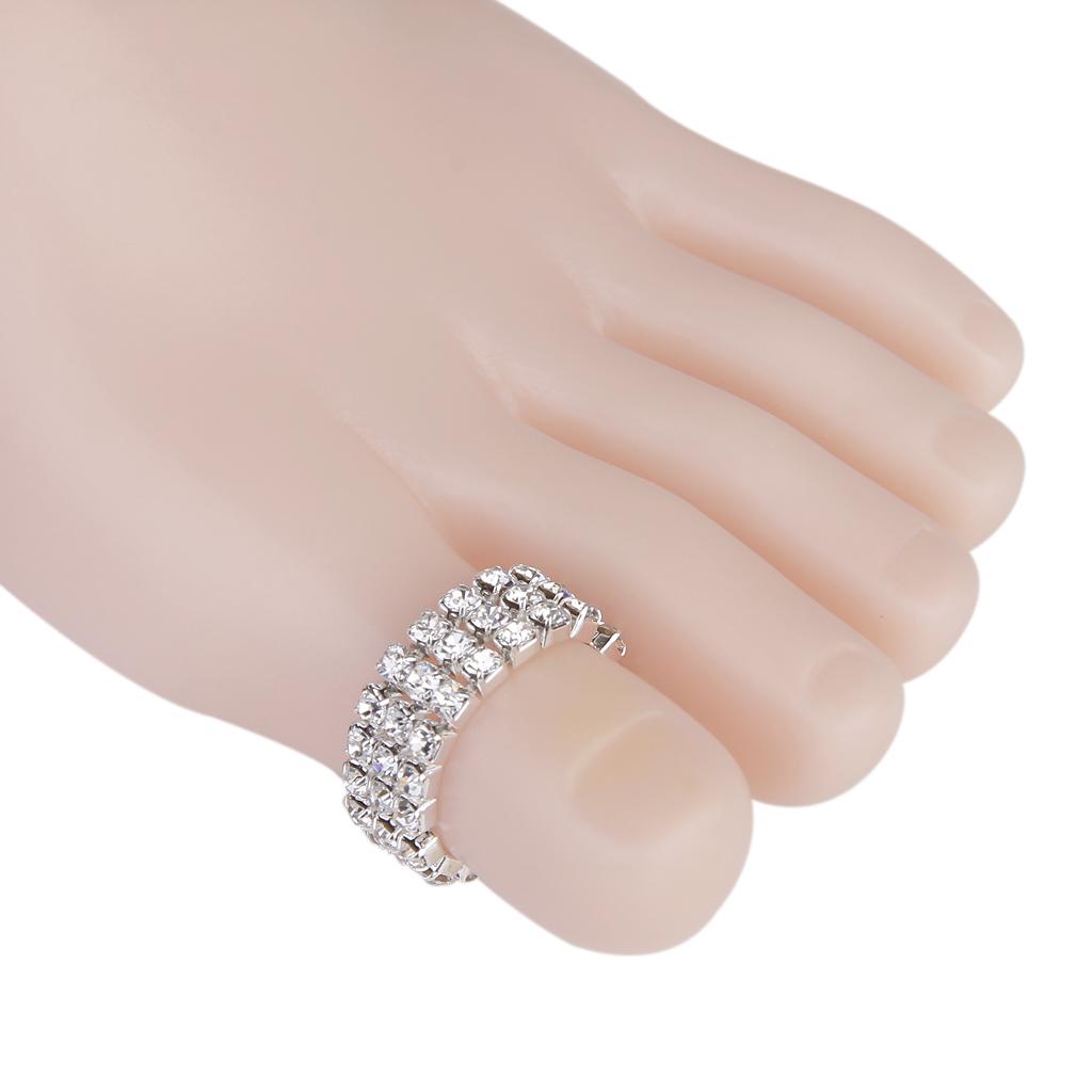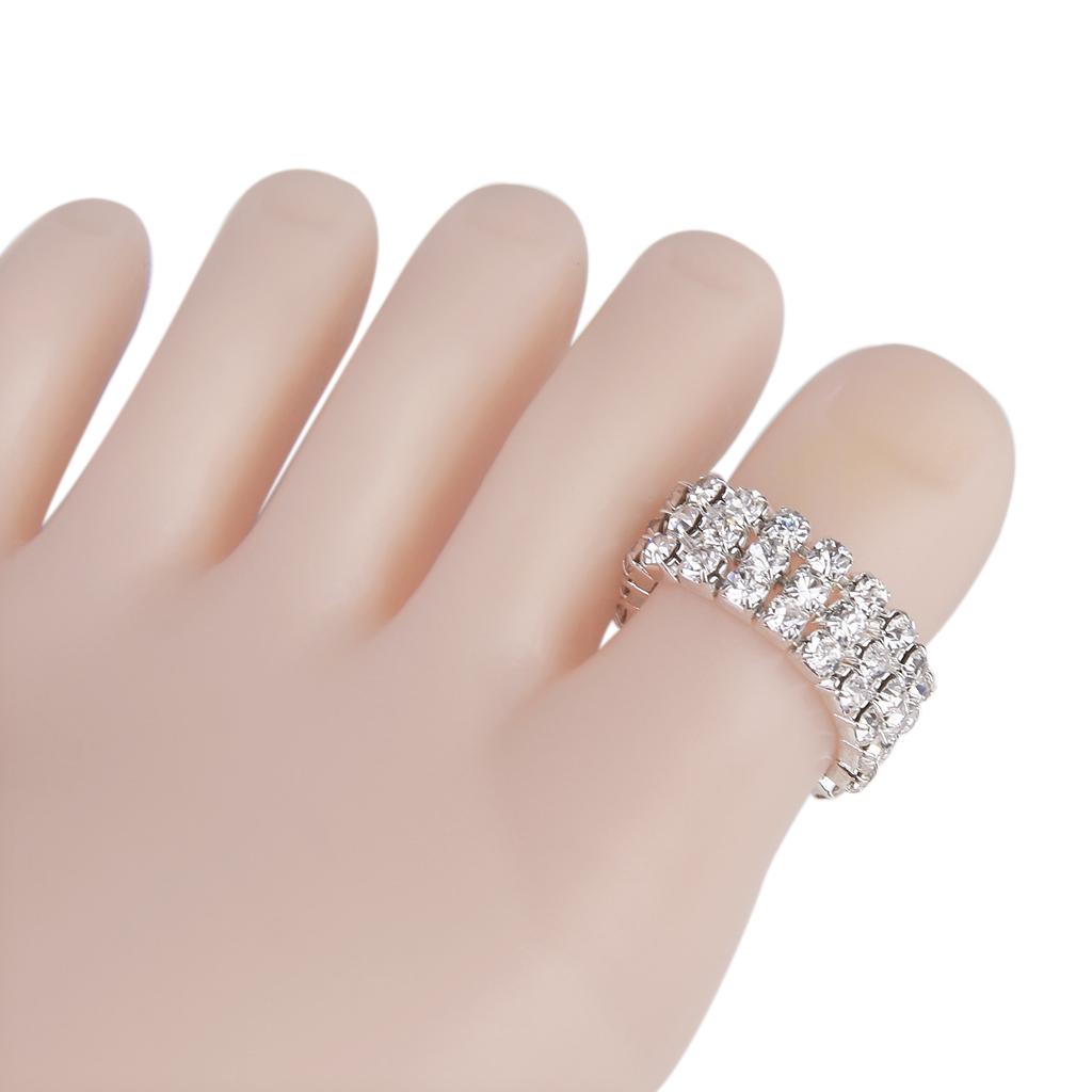Elastic Silver Tone 3 Row Crystal Rhinestone Toe Ring Bridal Jewelry 9mm