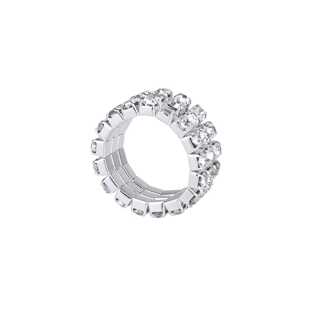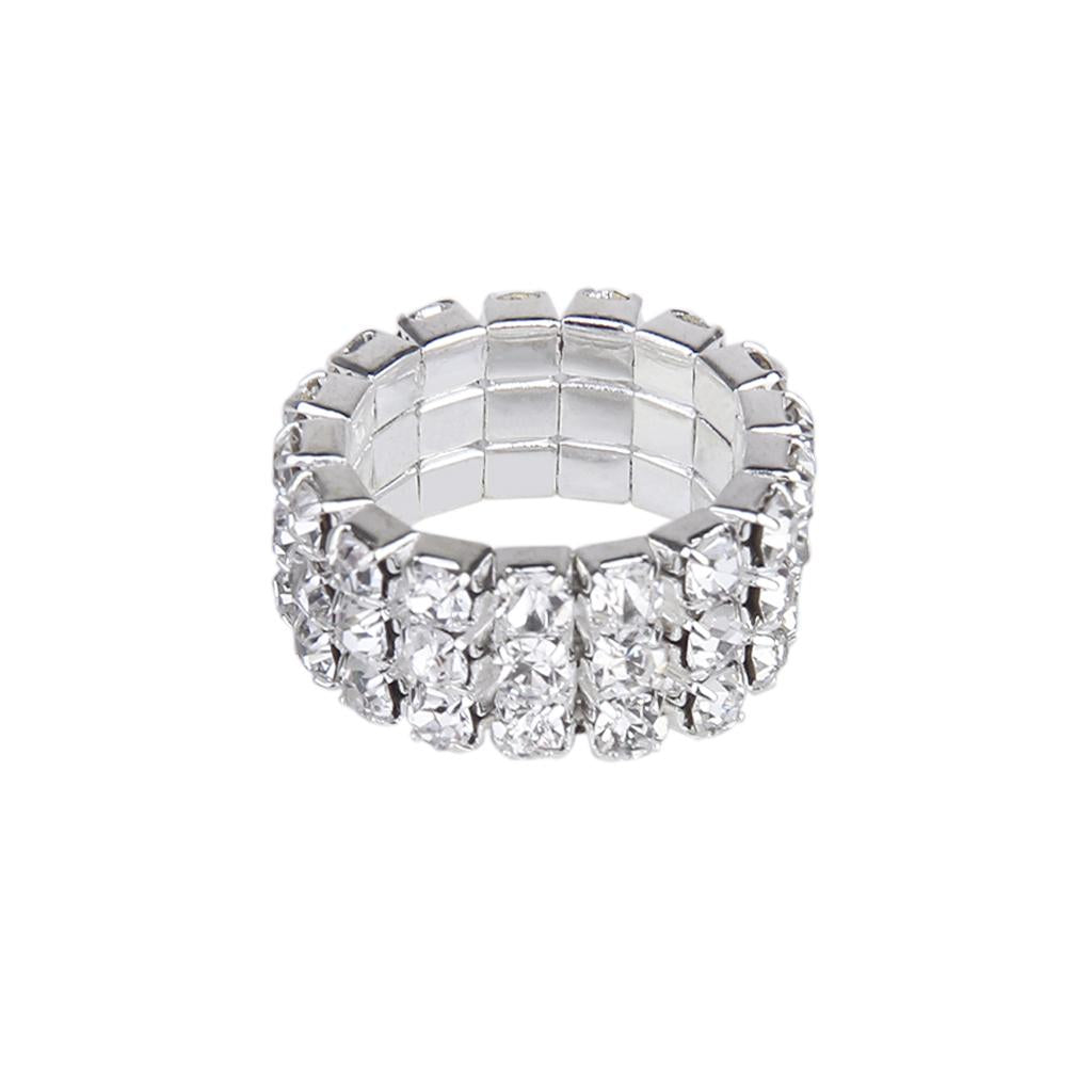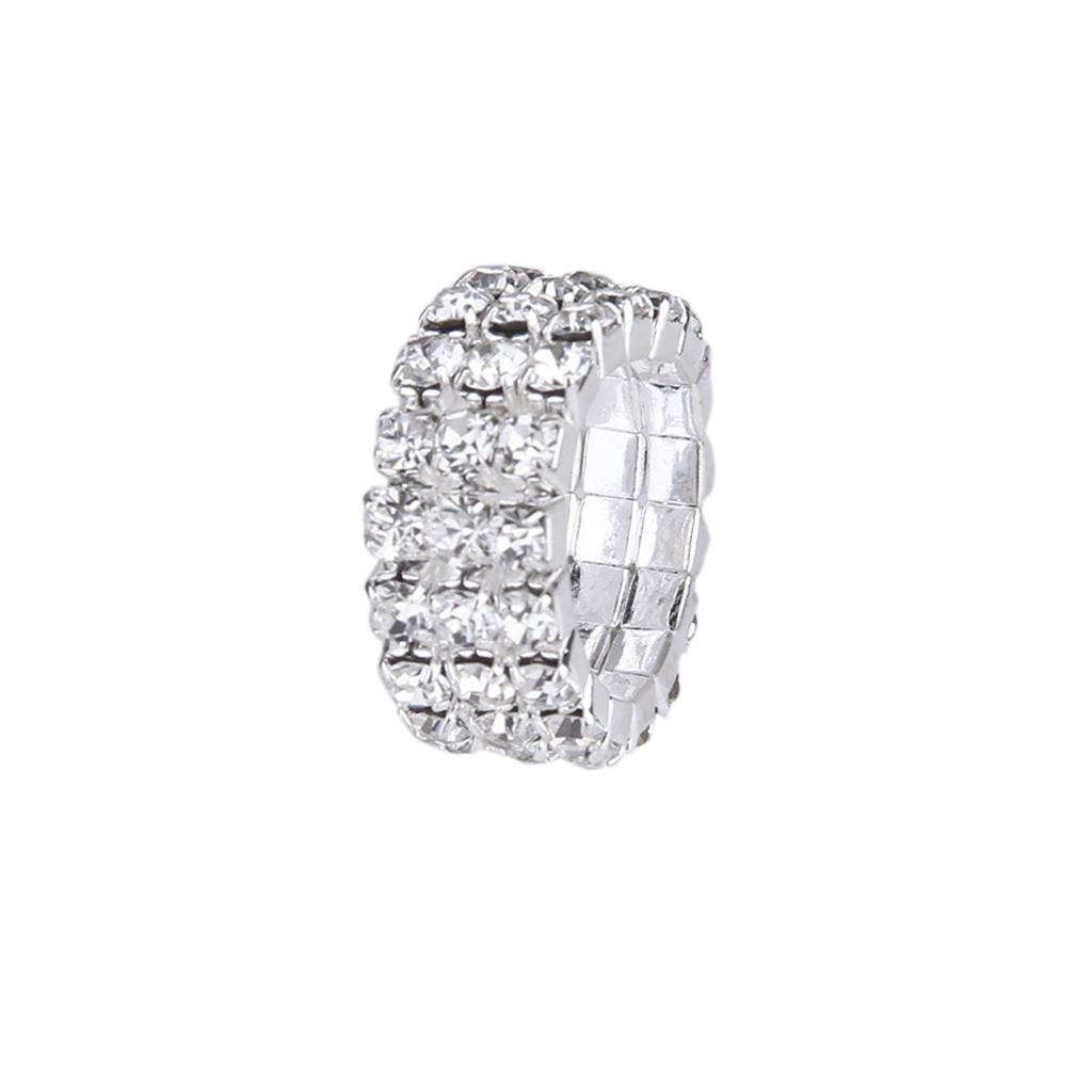 Elastic Silver Tone 3 Row Crystal Rhinestone Toe Ring Bridal Jewelry 9mm