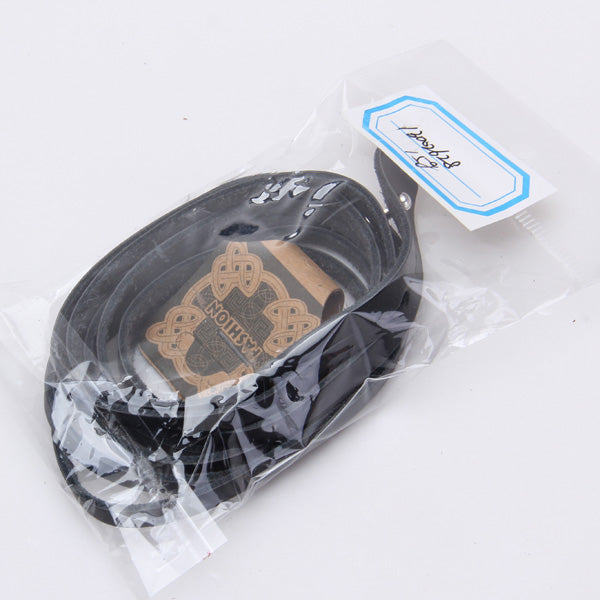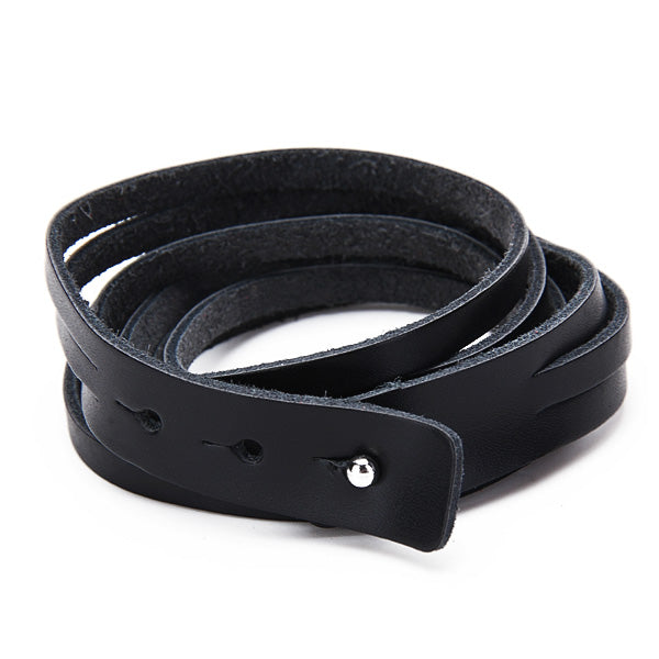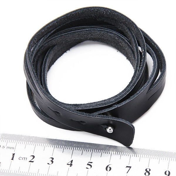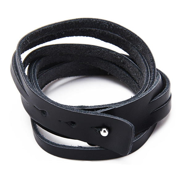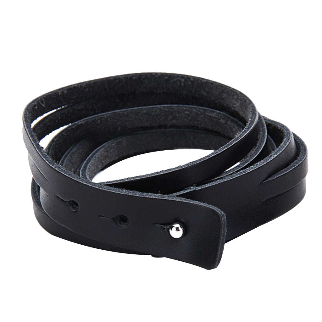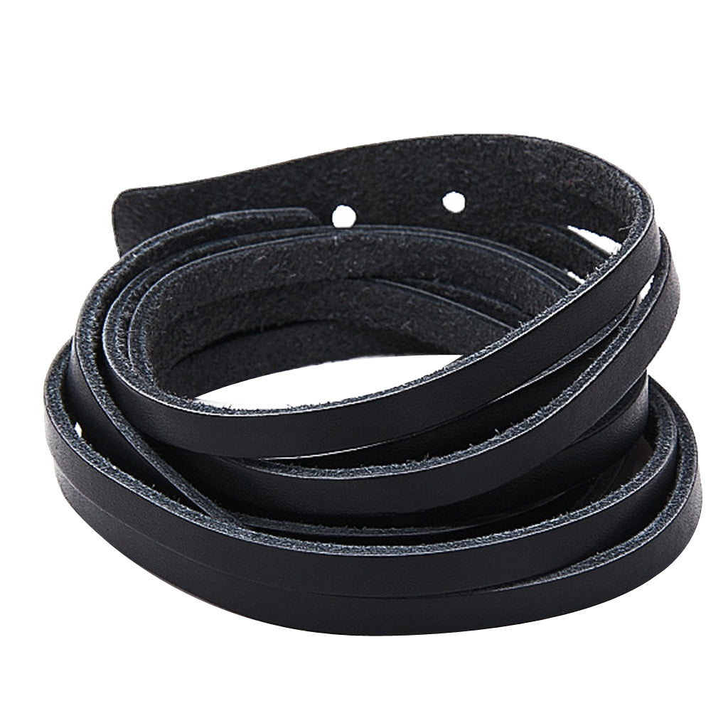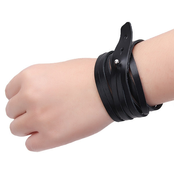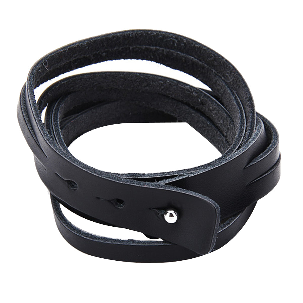 Fashion Long Artificial Leather Strap Wrap Cuff-Bracelet-Belt - Black