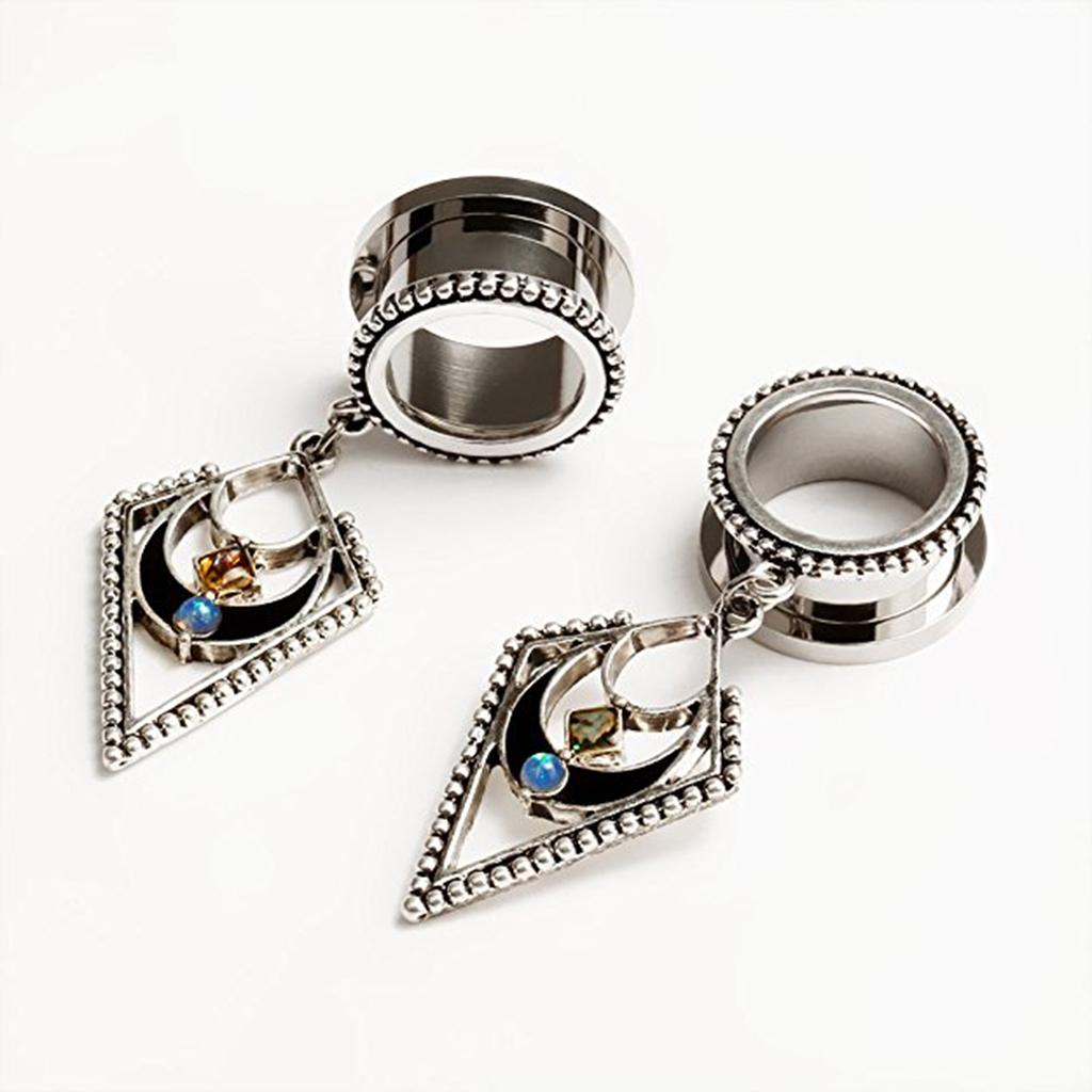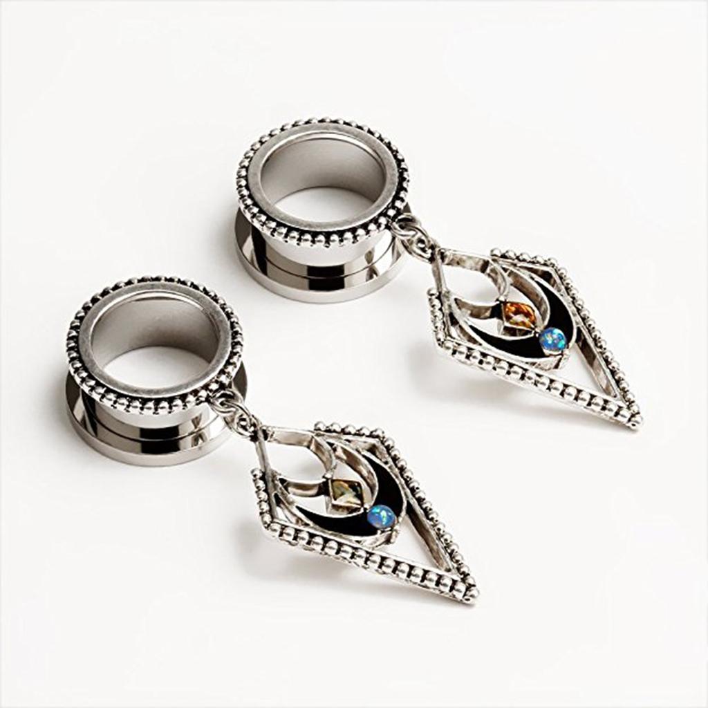 Fashion Opal Dangle Jewelry Stainless Steel Ear Plug Tunnels Gauge 12mm