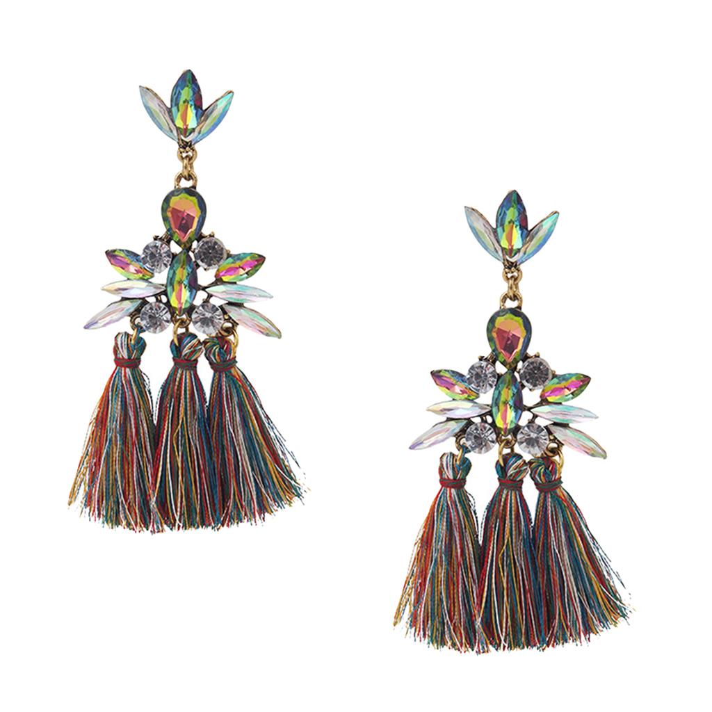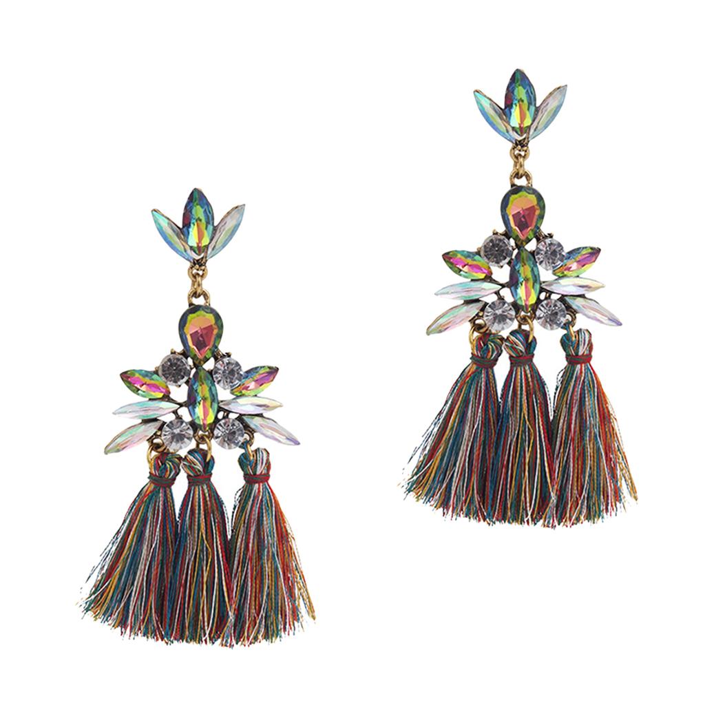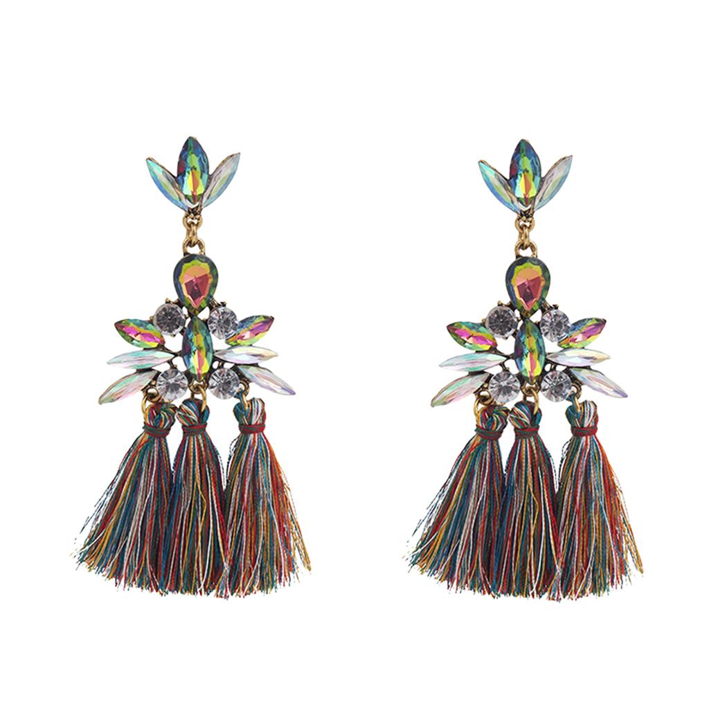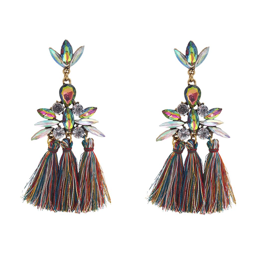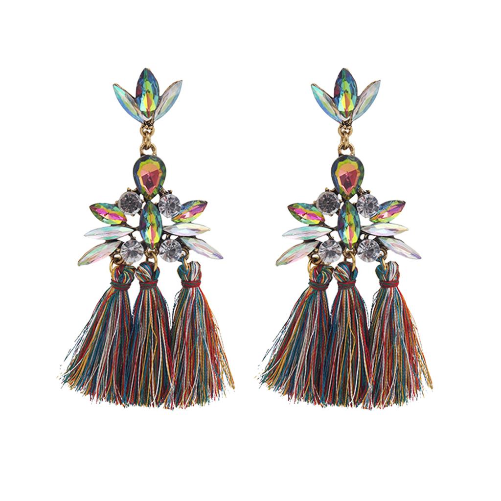 Fashion Personality Exaggerated Bohemia Long Tassels Earrings Multi-color