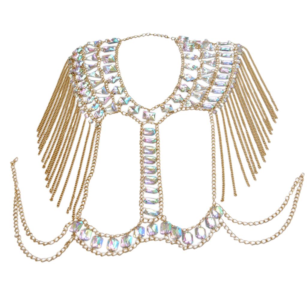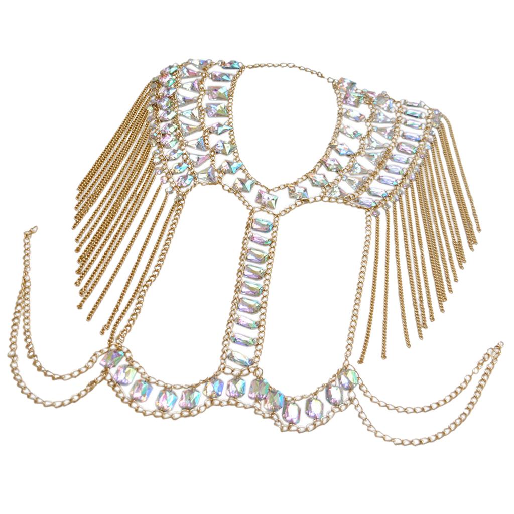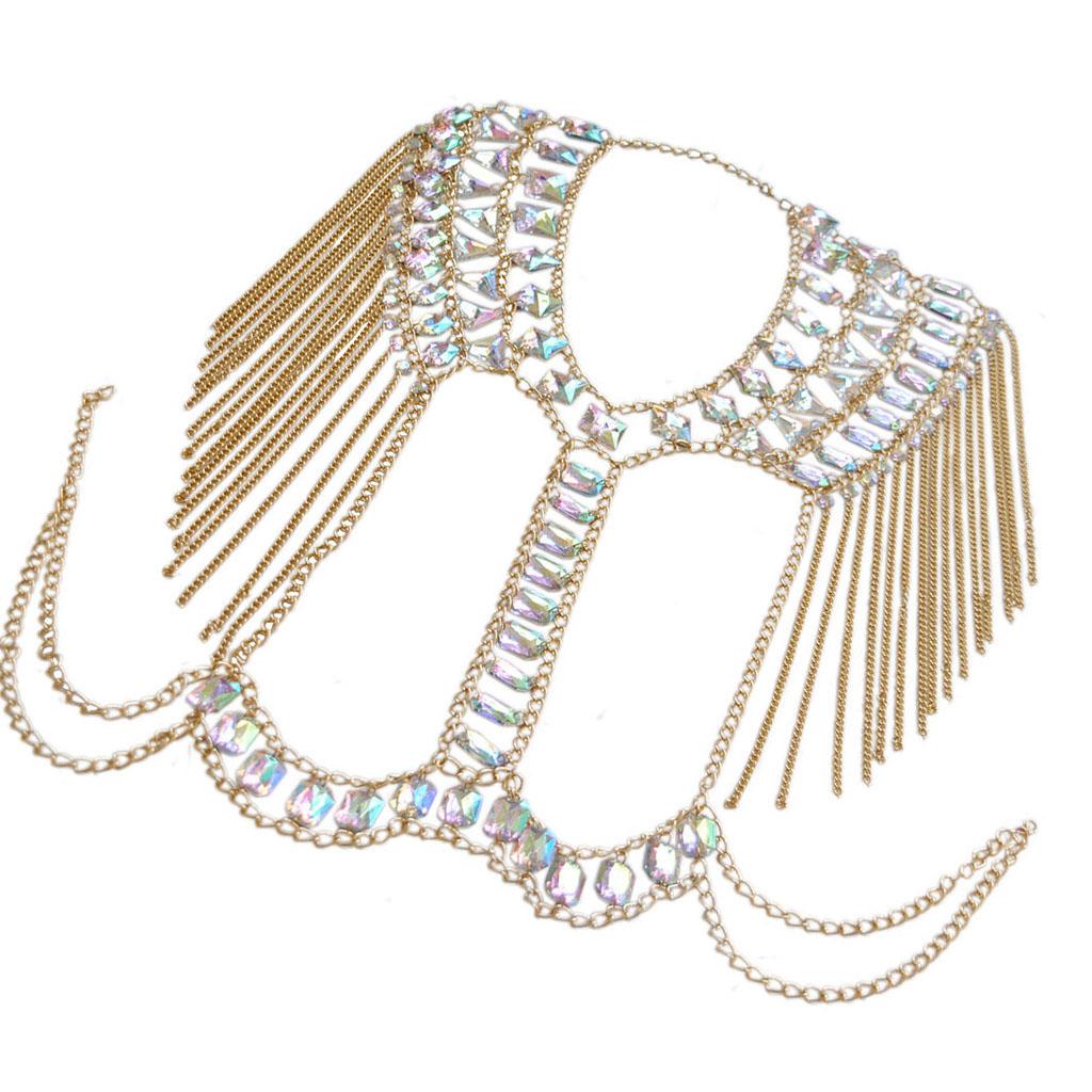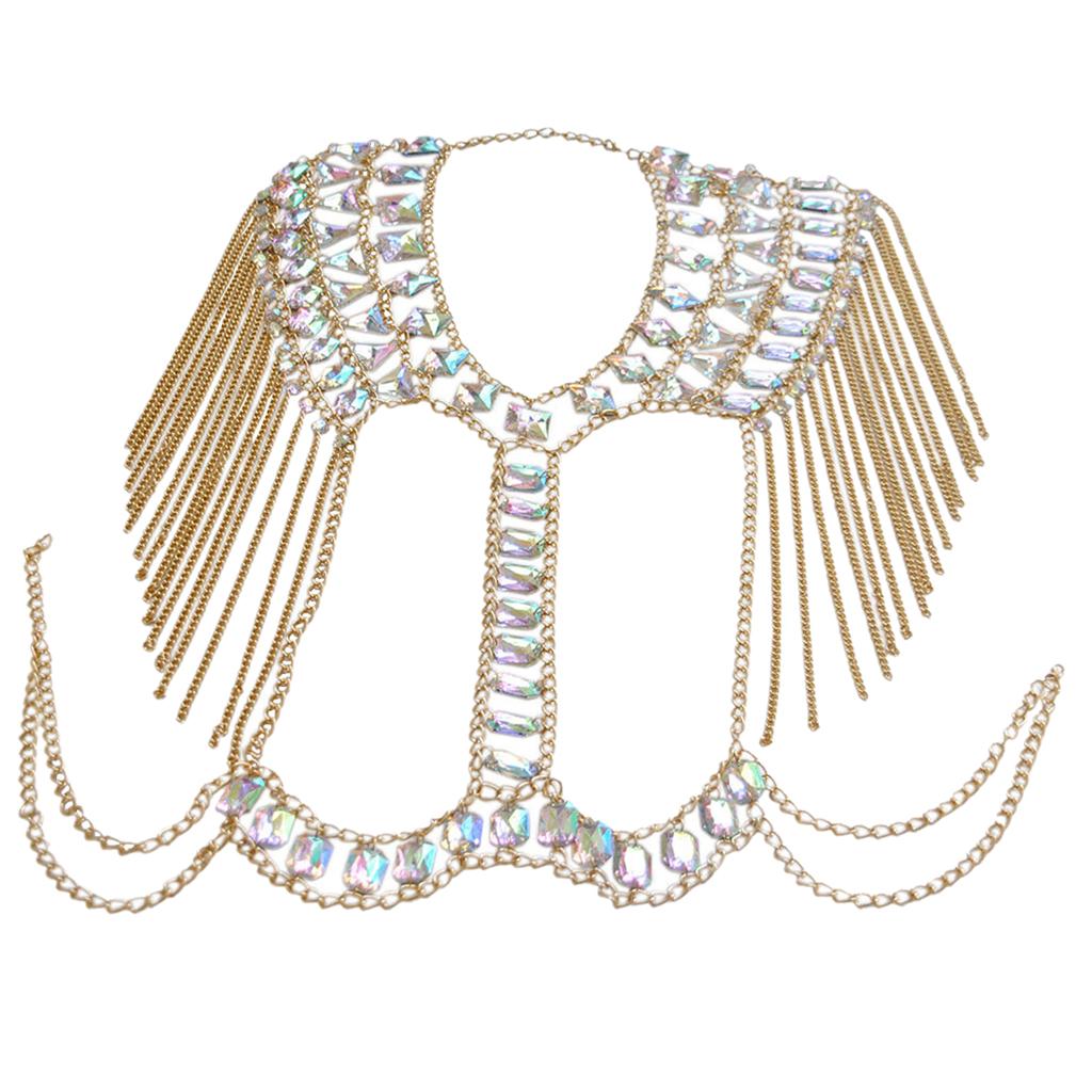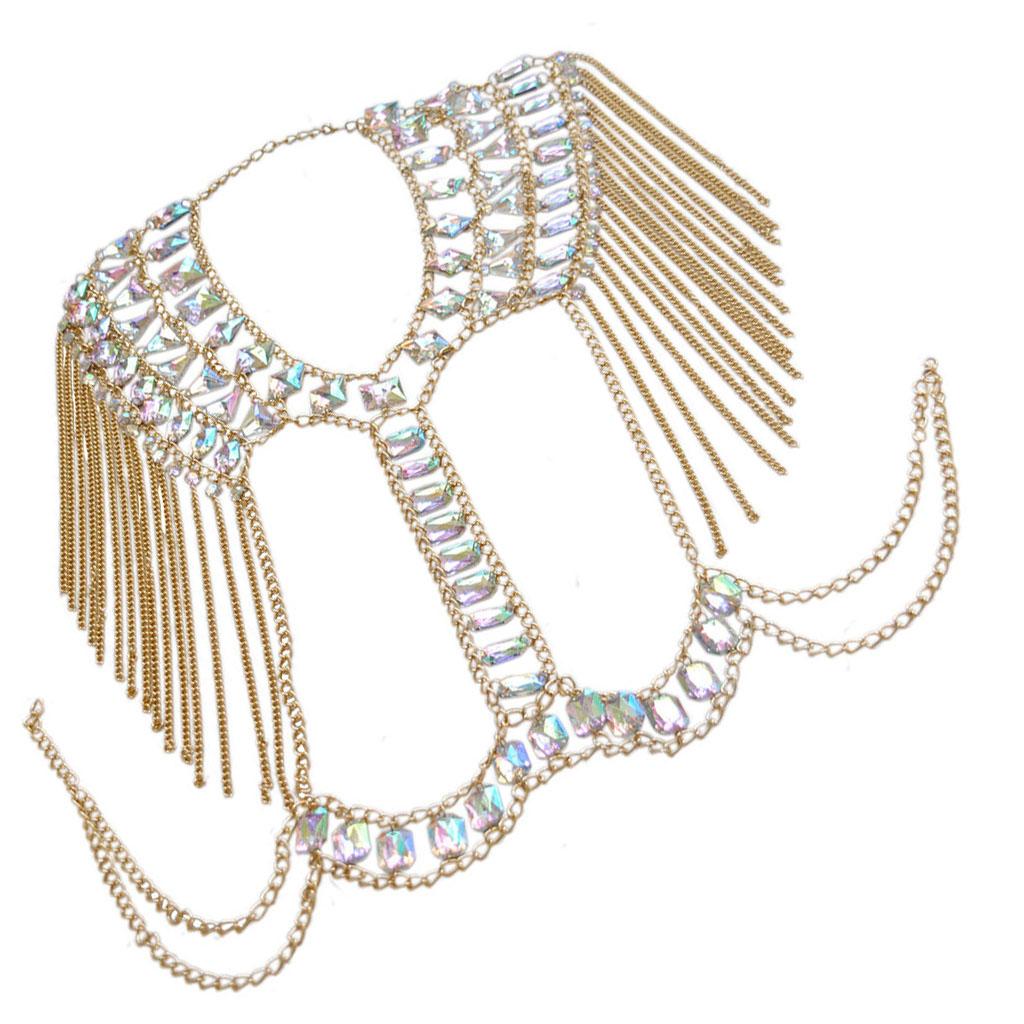 Fashion Tassel Crystal Shoulder Body Chain Harness Necklace Jewelry Golden