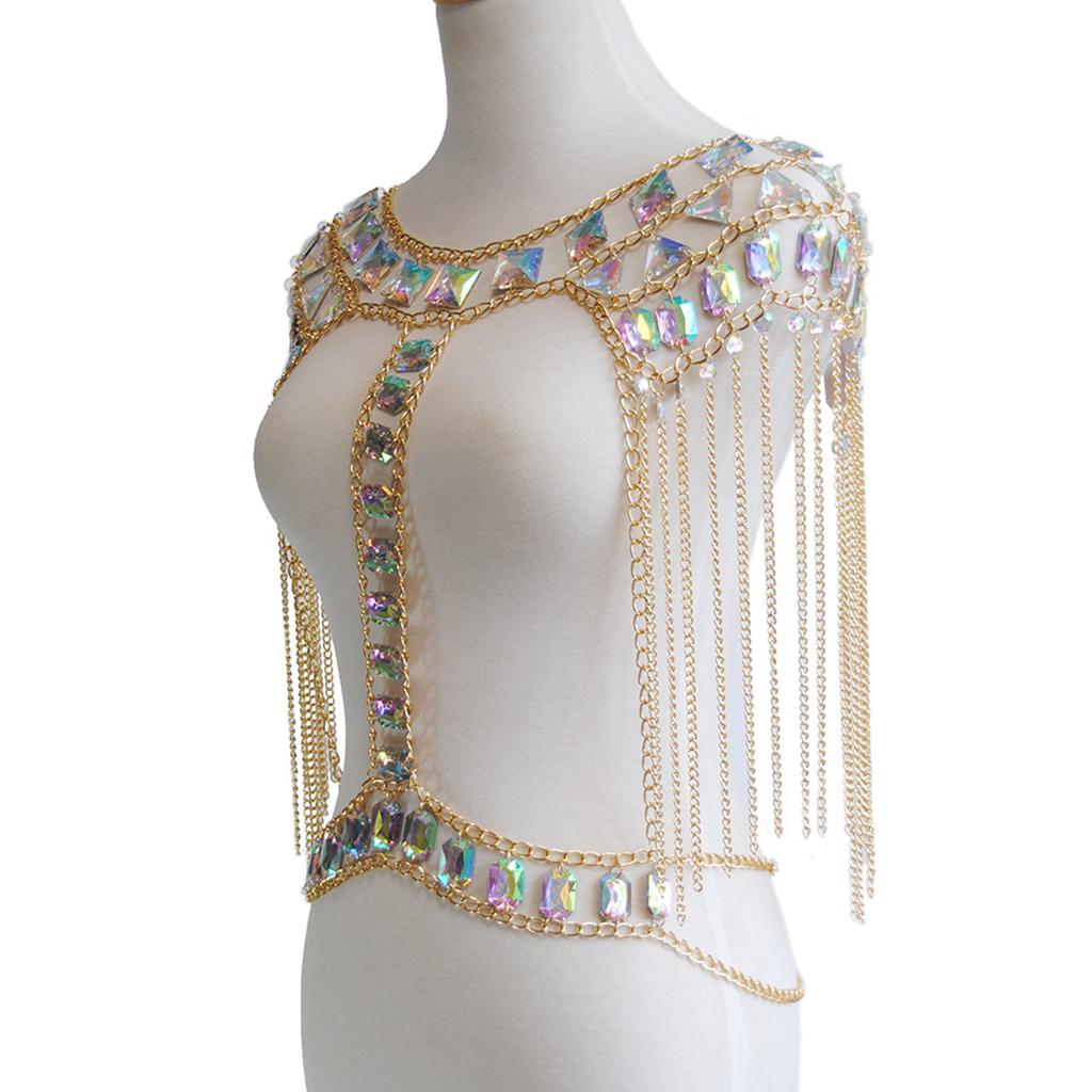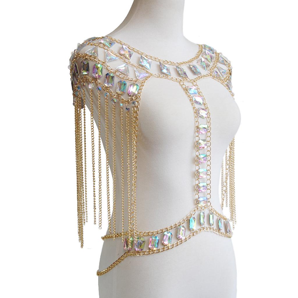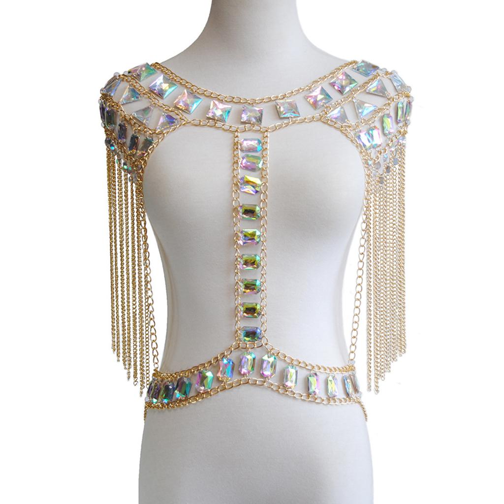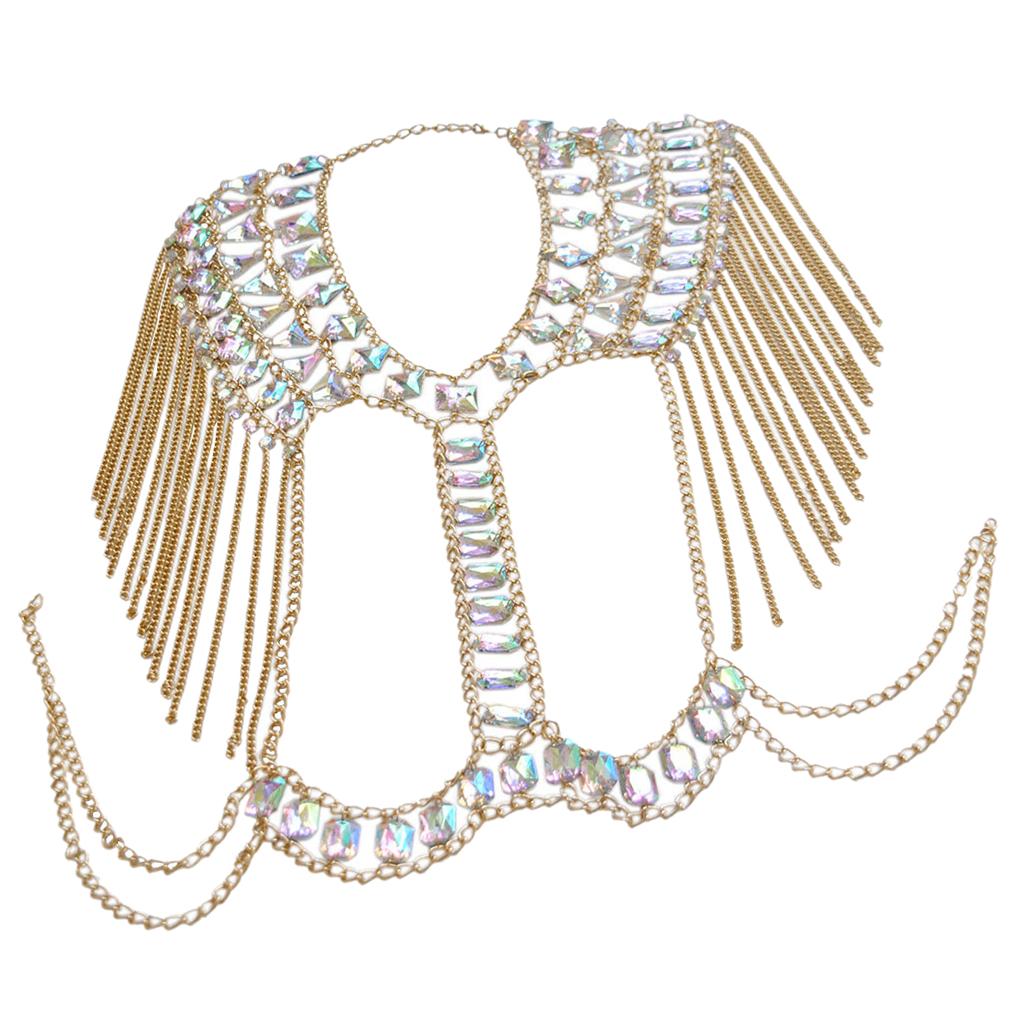 Fashion Tassel Crystal Shoulder Body Chain Harness Necklace Jewelry Golden