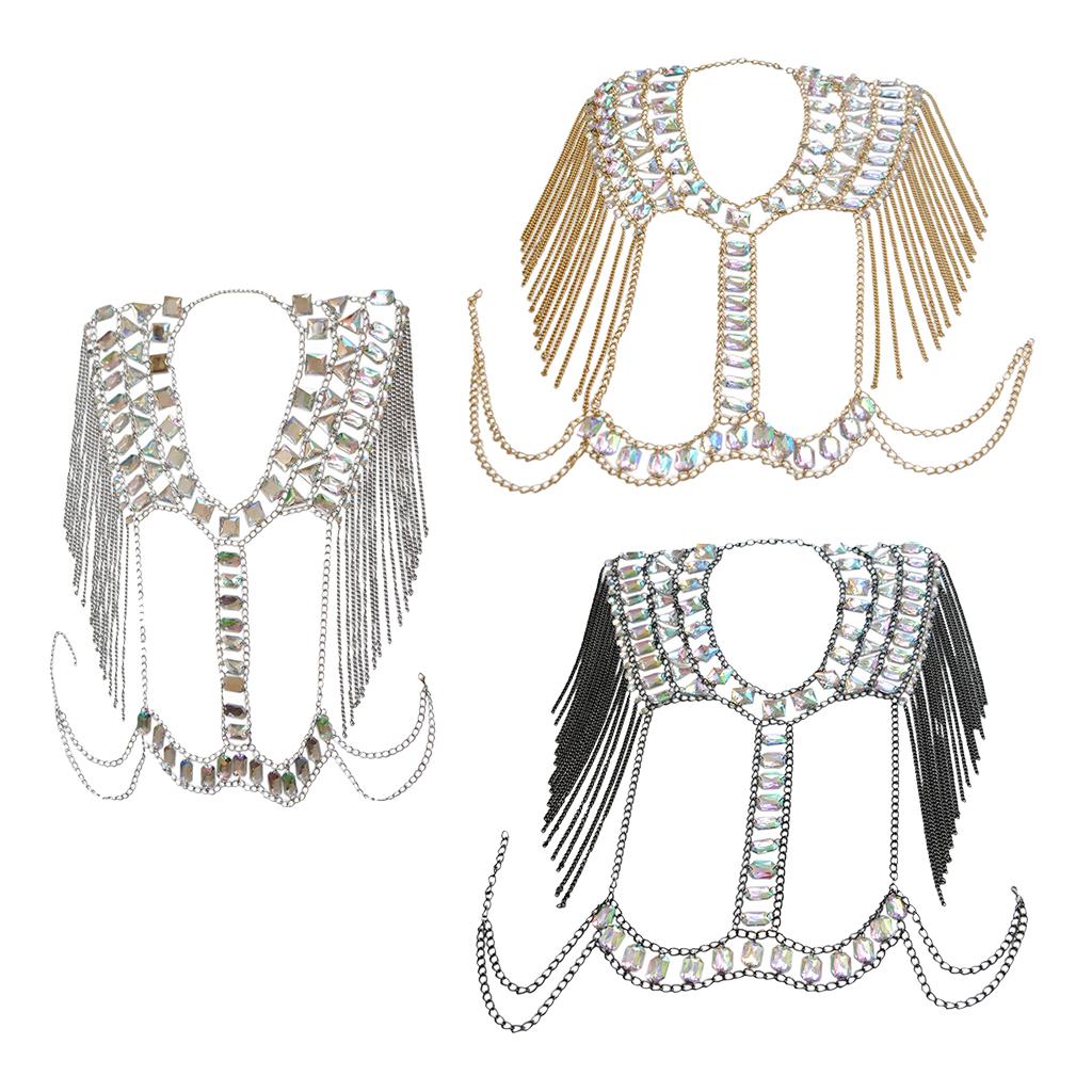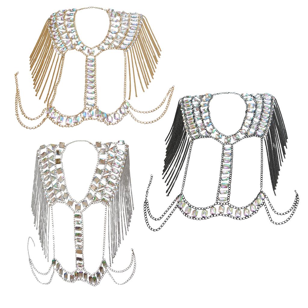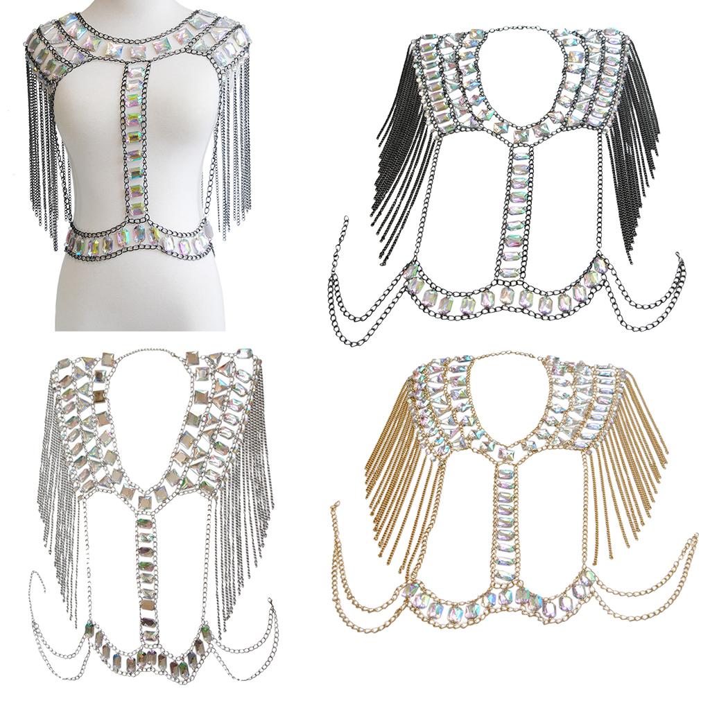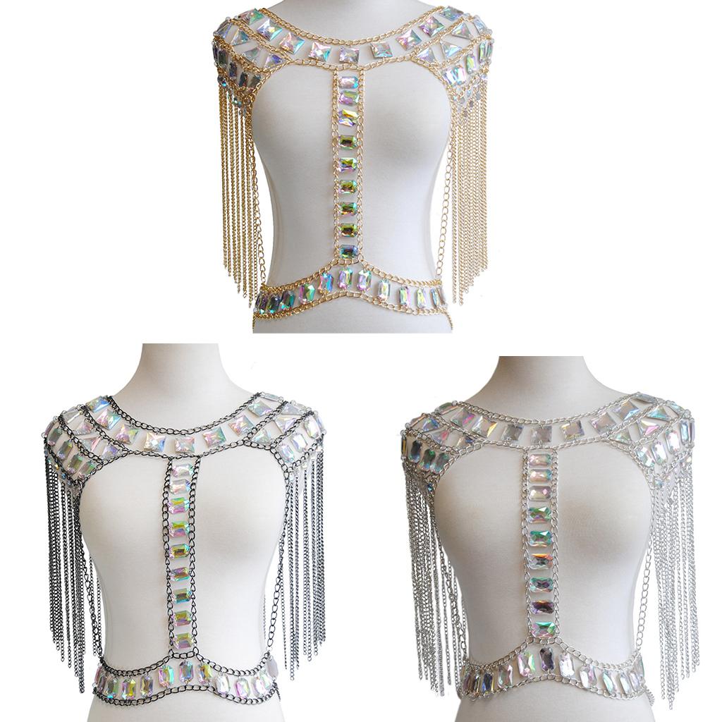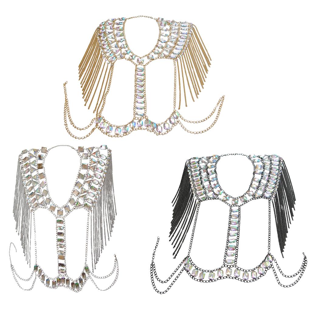Fashion Tassel Crystal Shoulder Body Chain Harness Necklace Jewelry Golden