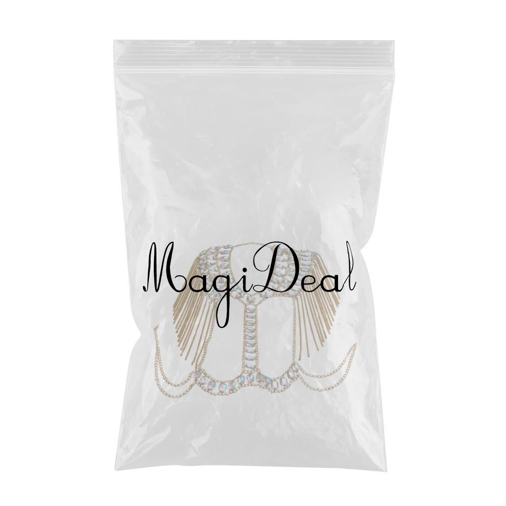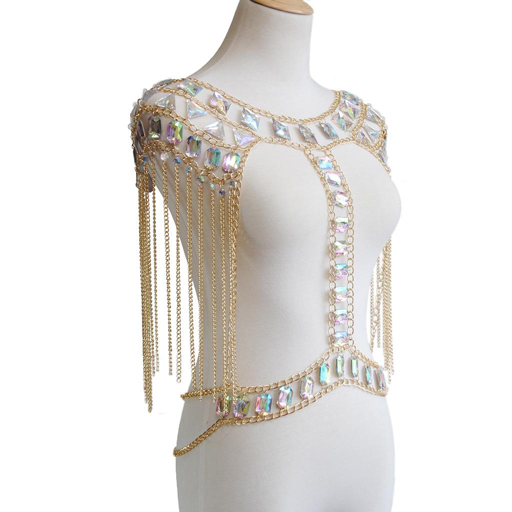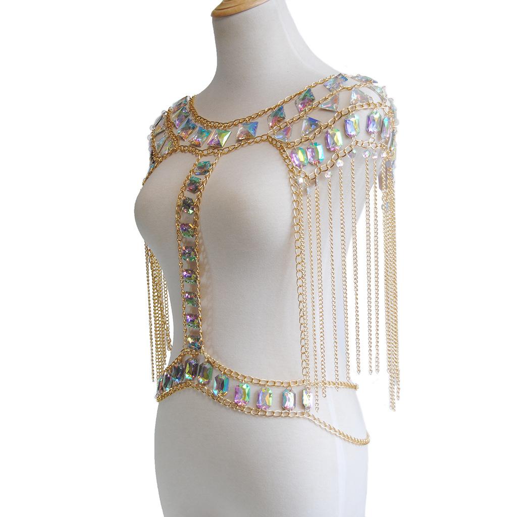 Fashionable unique long tassel Crystal Shoulder necklace Chest Harness Bikini Body Chain jewelry ,Great for Cocktail Nightclub show jewelry costmues accessories