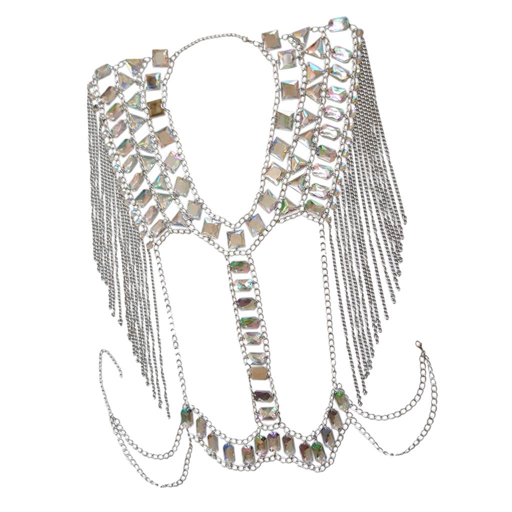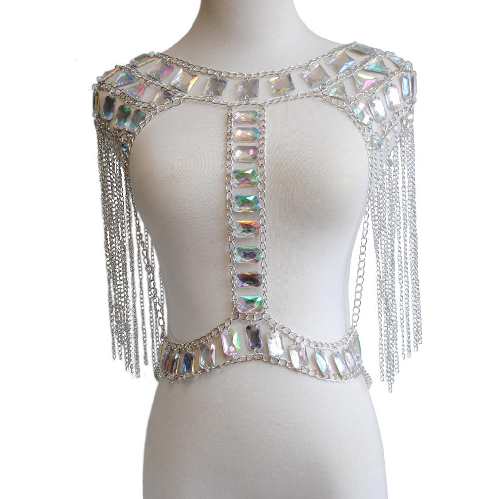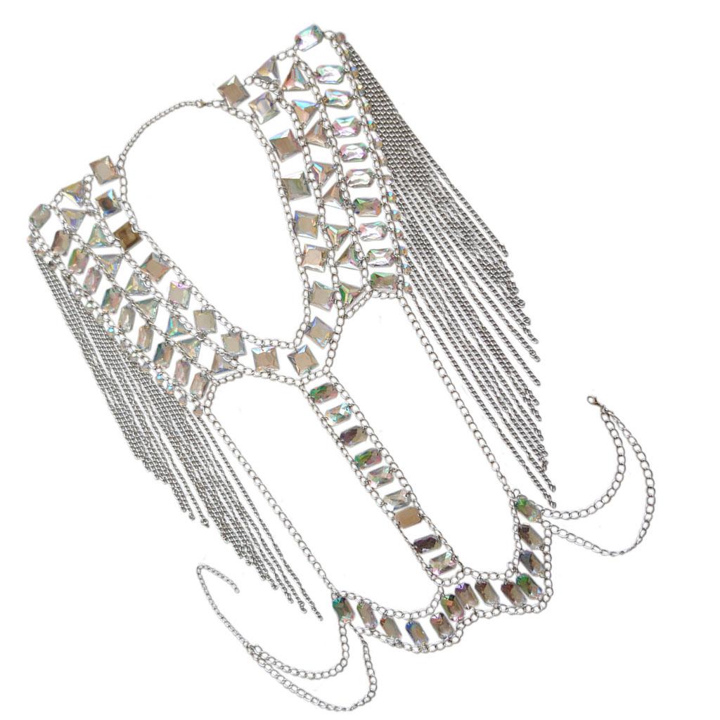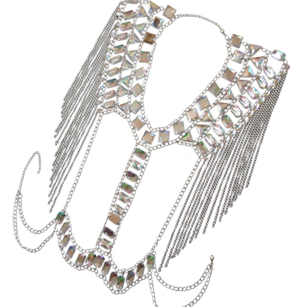 Fashion Tassel Crystal Shoulder Body Chain Harness Necklace Jewelry Silver
