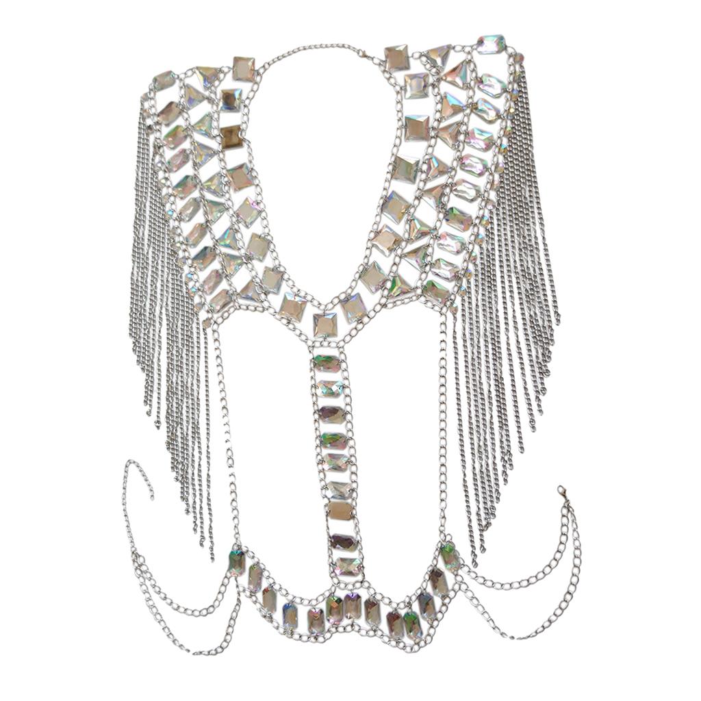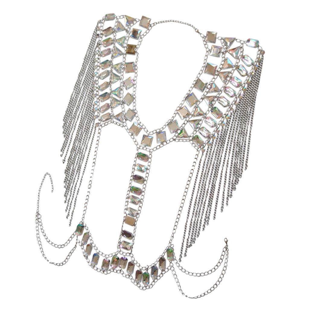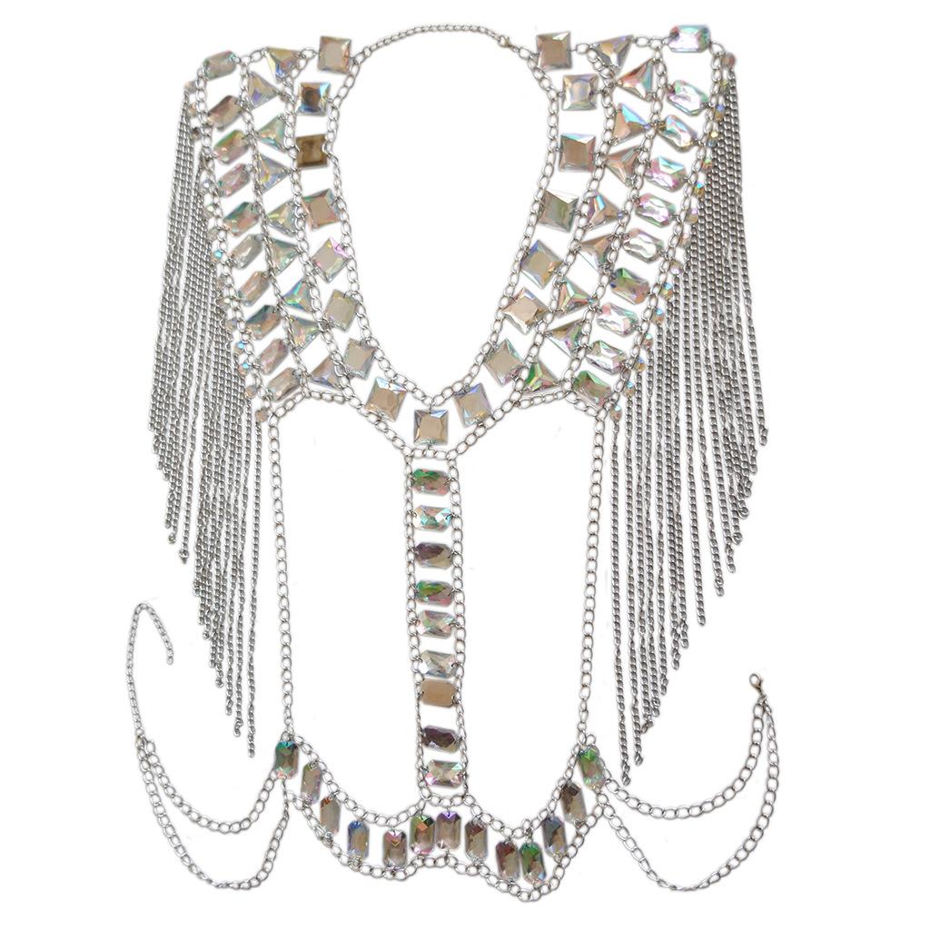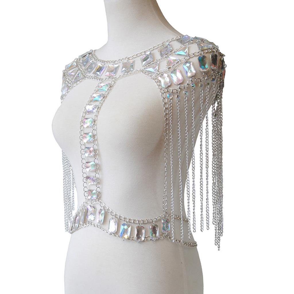 Fashion Tassel Crystal Shoulder Body Chain Harness Necklace Jewelry Silver