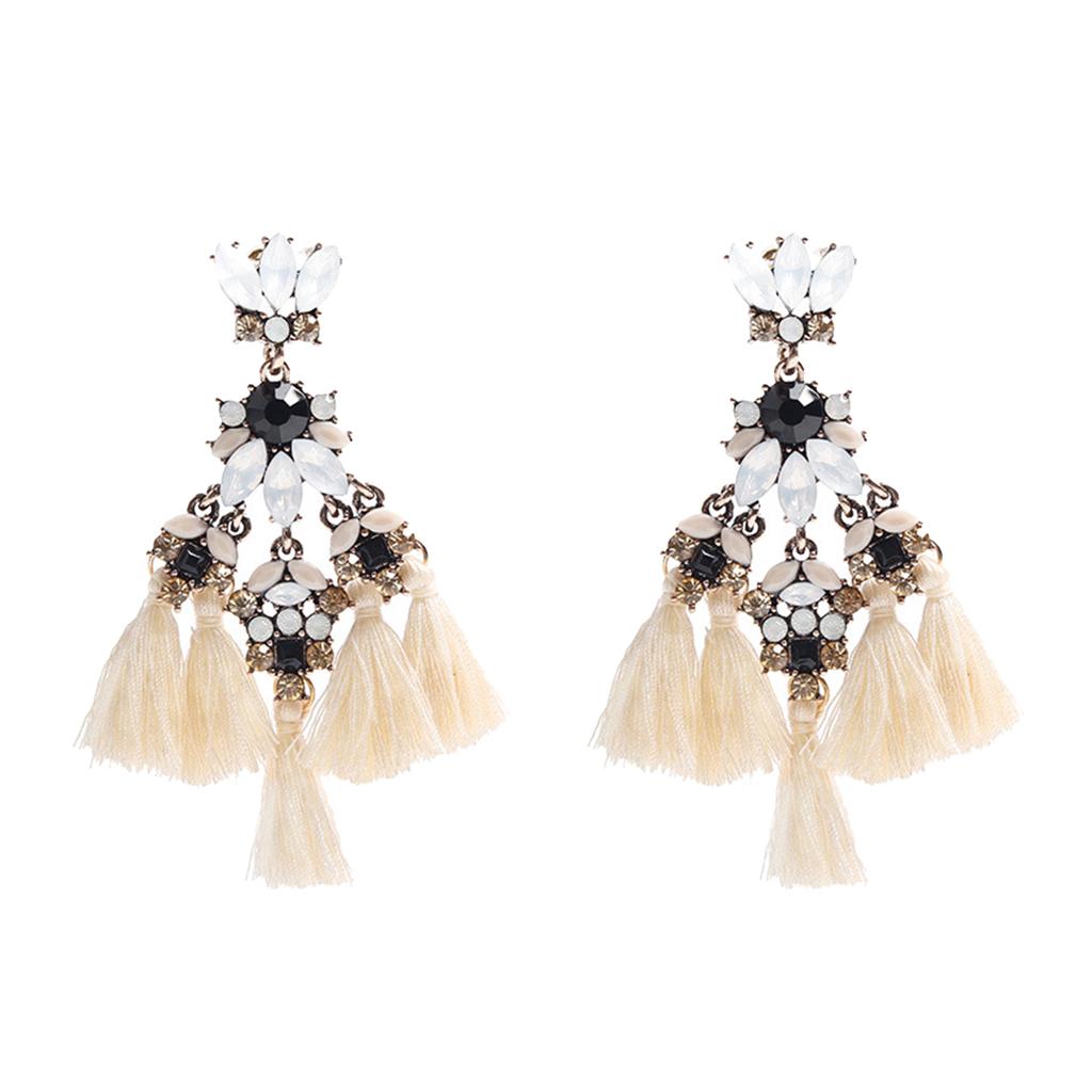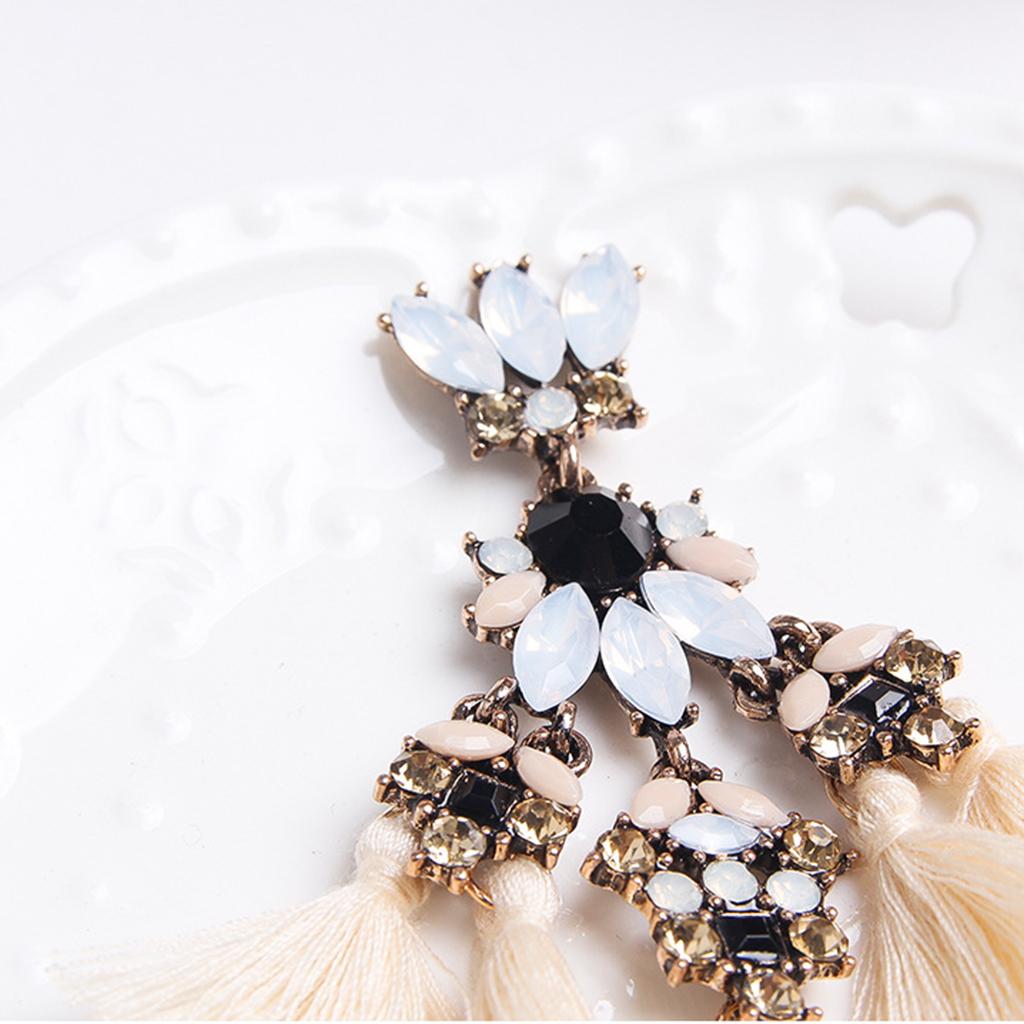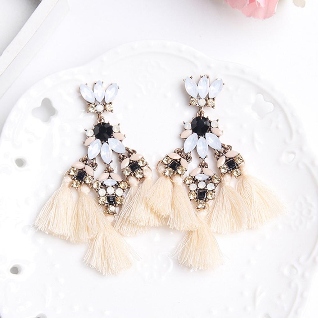 Fashion Women Rhinestone Long Tassels Flower Earrings Drop Earring Light Yellow