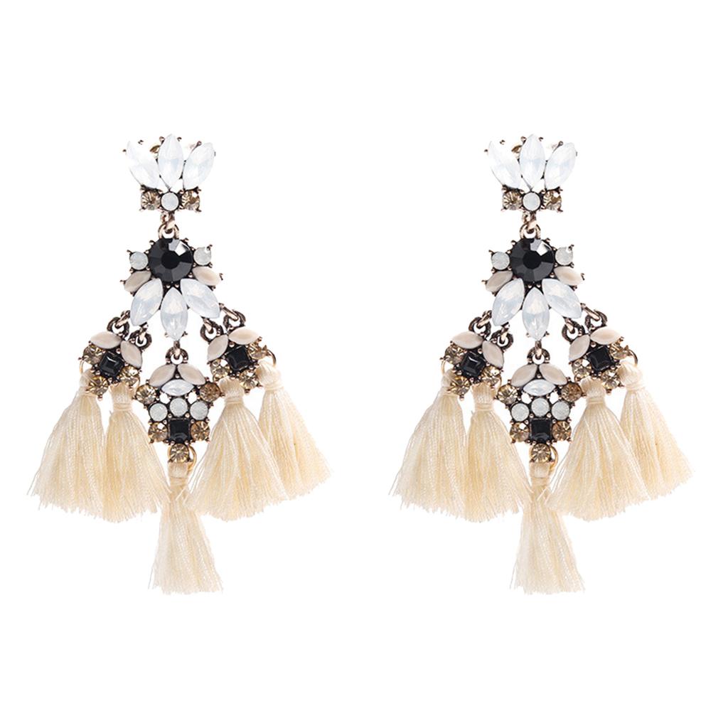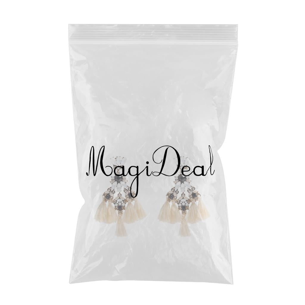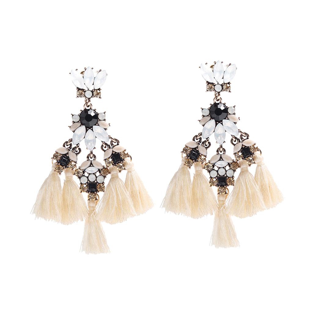 Fashion Women Rhinestone Long Tassels Flower Earrings Drop Earring Light Yellow