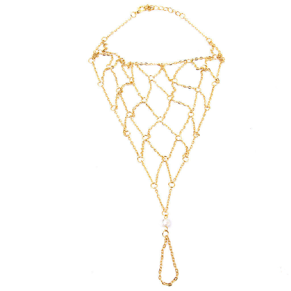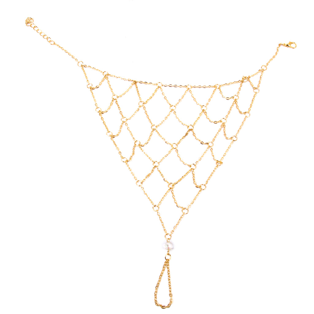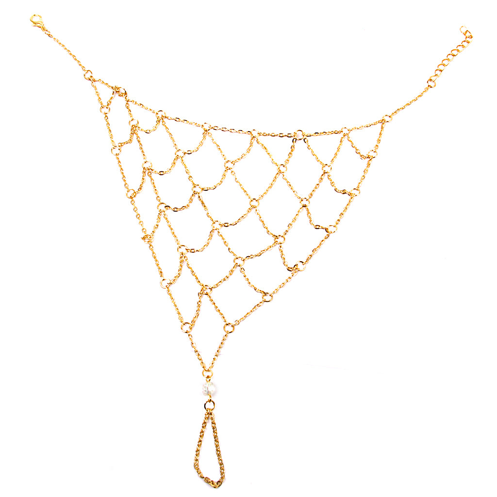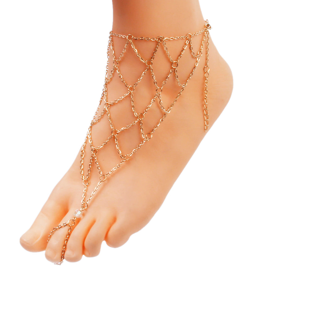 Golden Alloy Barefoot Anklet Ankle Fish Net Bracelet Chain Foot Toe Ring