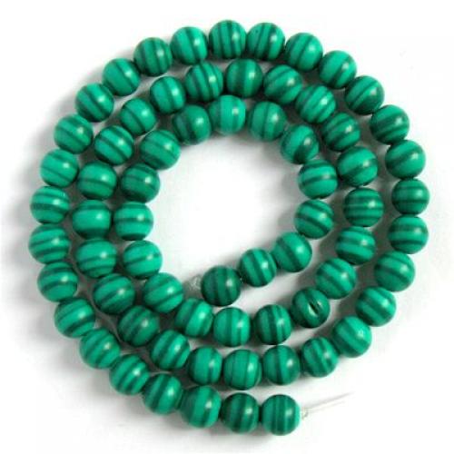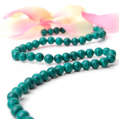 Green malachite gemstone, 6mm Round, Cabochon cut with middle drilled hole (see string direction in photo),15.5" Strand packaging, grade B. From Africa. 100 Carats. The Finest Gemstones! The Finest Beads!They are good for necklace, bracelets and earrings.