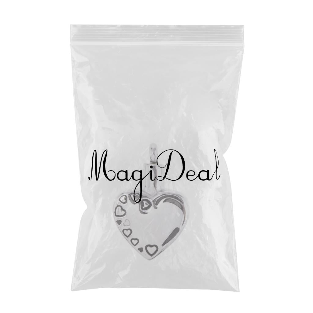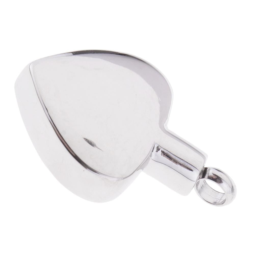 A heart shaped pendant with hanging hole on top, also an openable container, clear silver tone