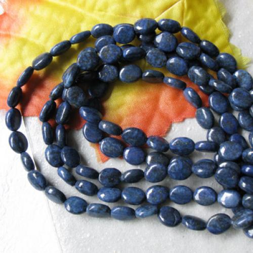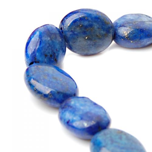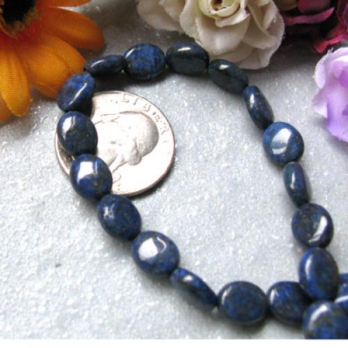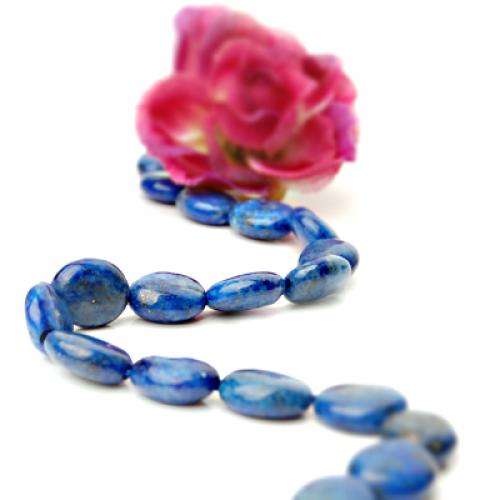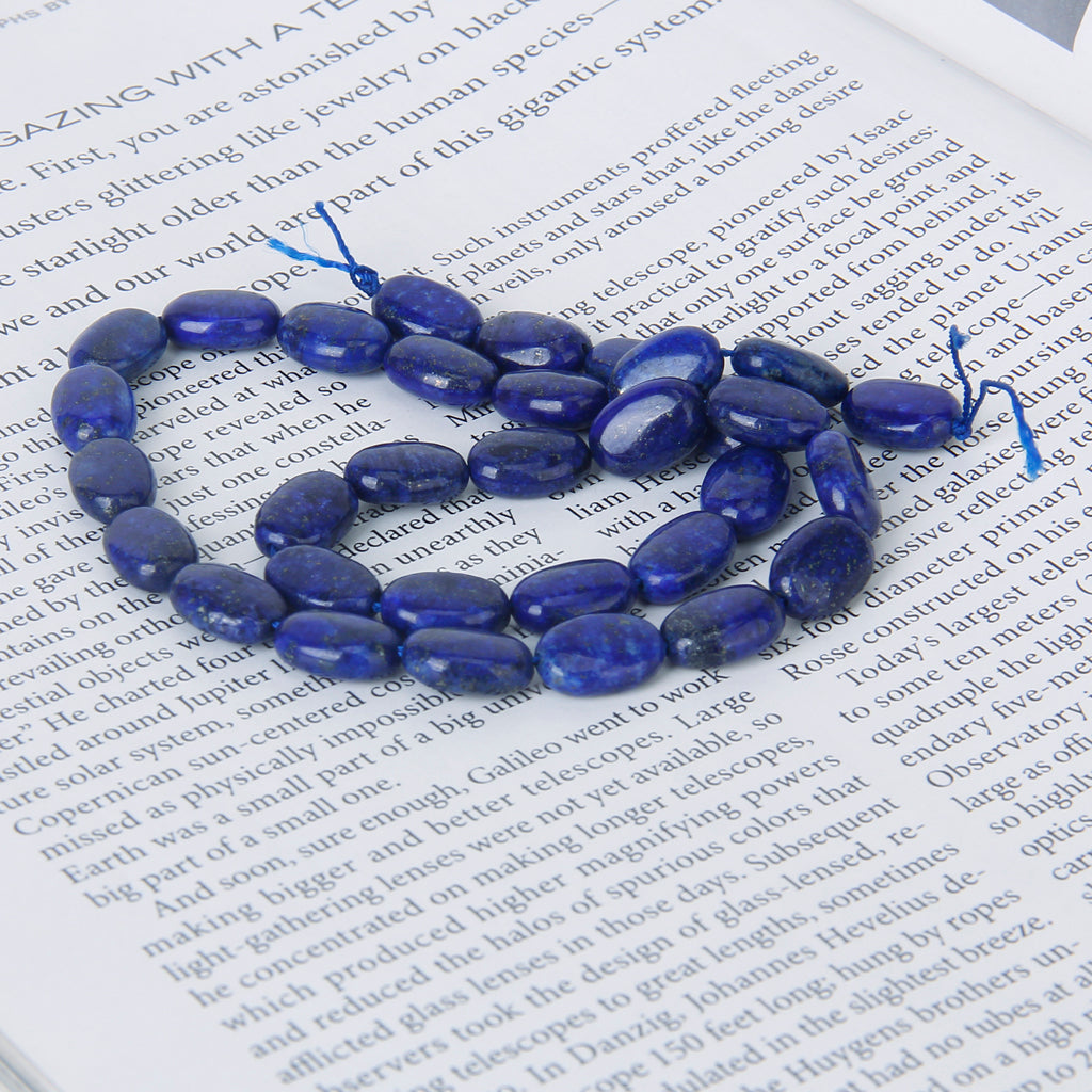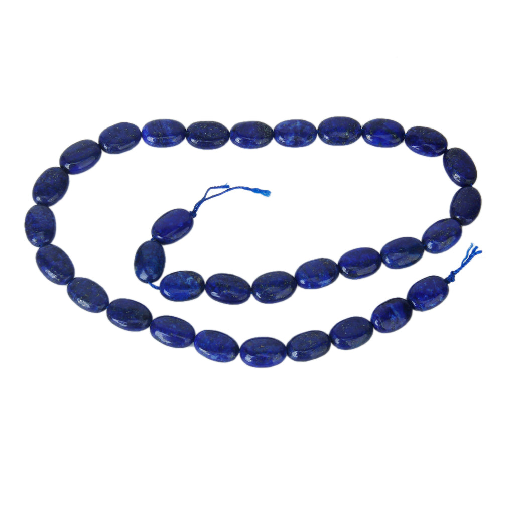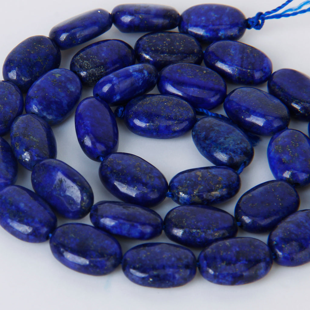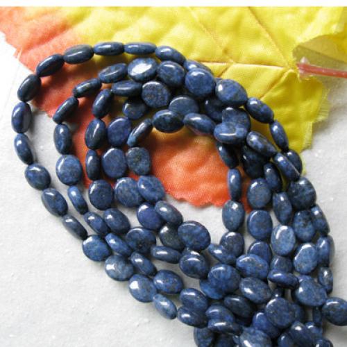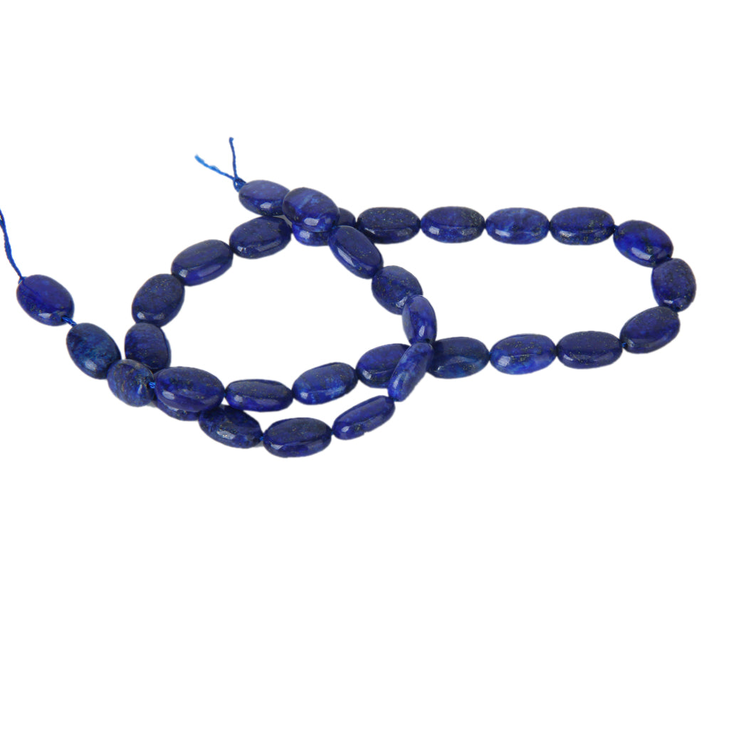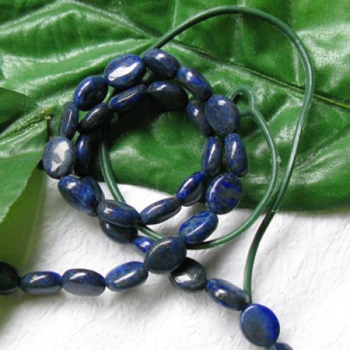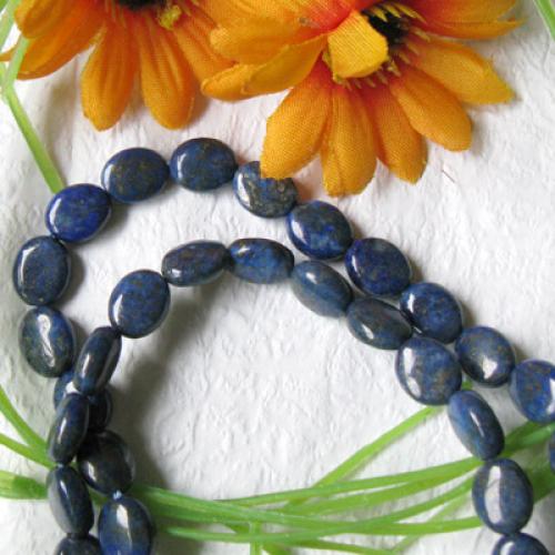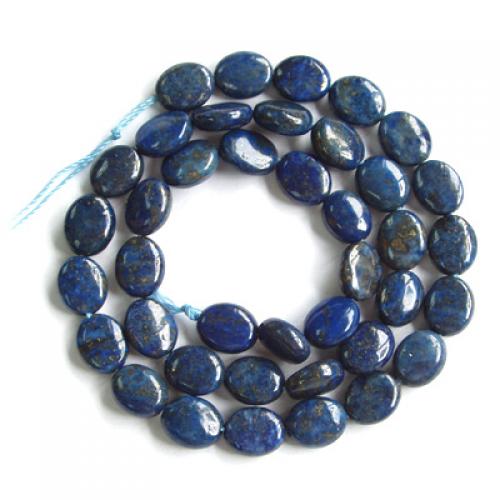 Natural lapis gemstone, 8 x 12mm oval, cabochon cut with lengthwise drilled hole (see string direction in photo),15.5" strand packaging, grade B. Treatment: None. From Africa.Our lapis lazuli beads are made of natural stone,and very attractive.They are good for necklaces, bracelets and earrings.
