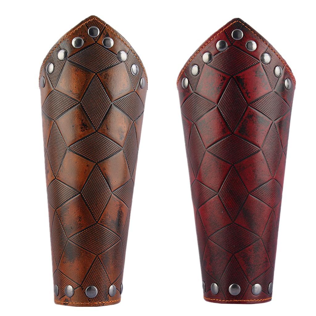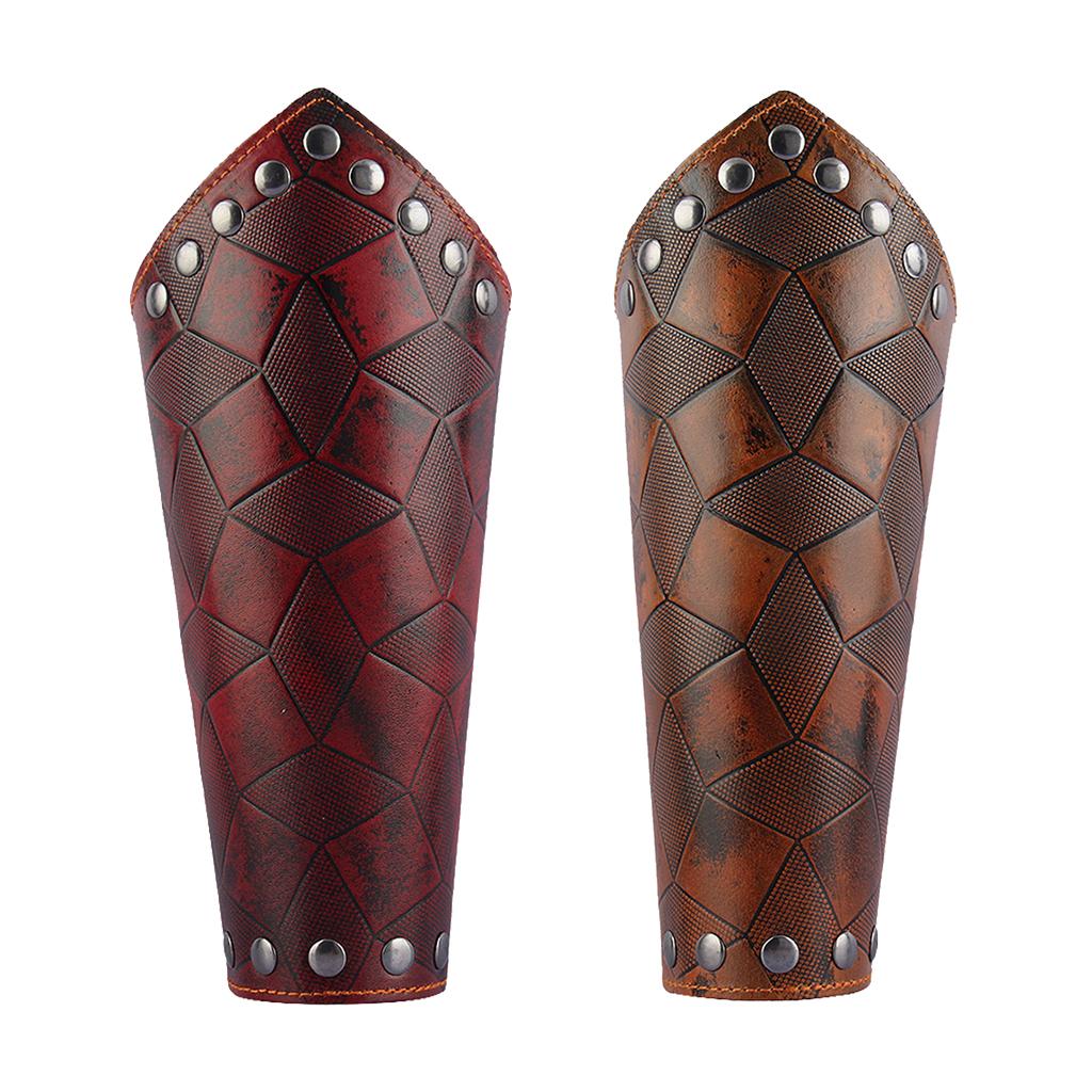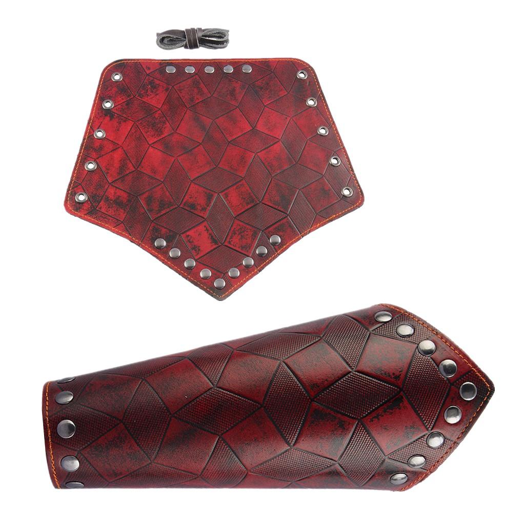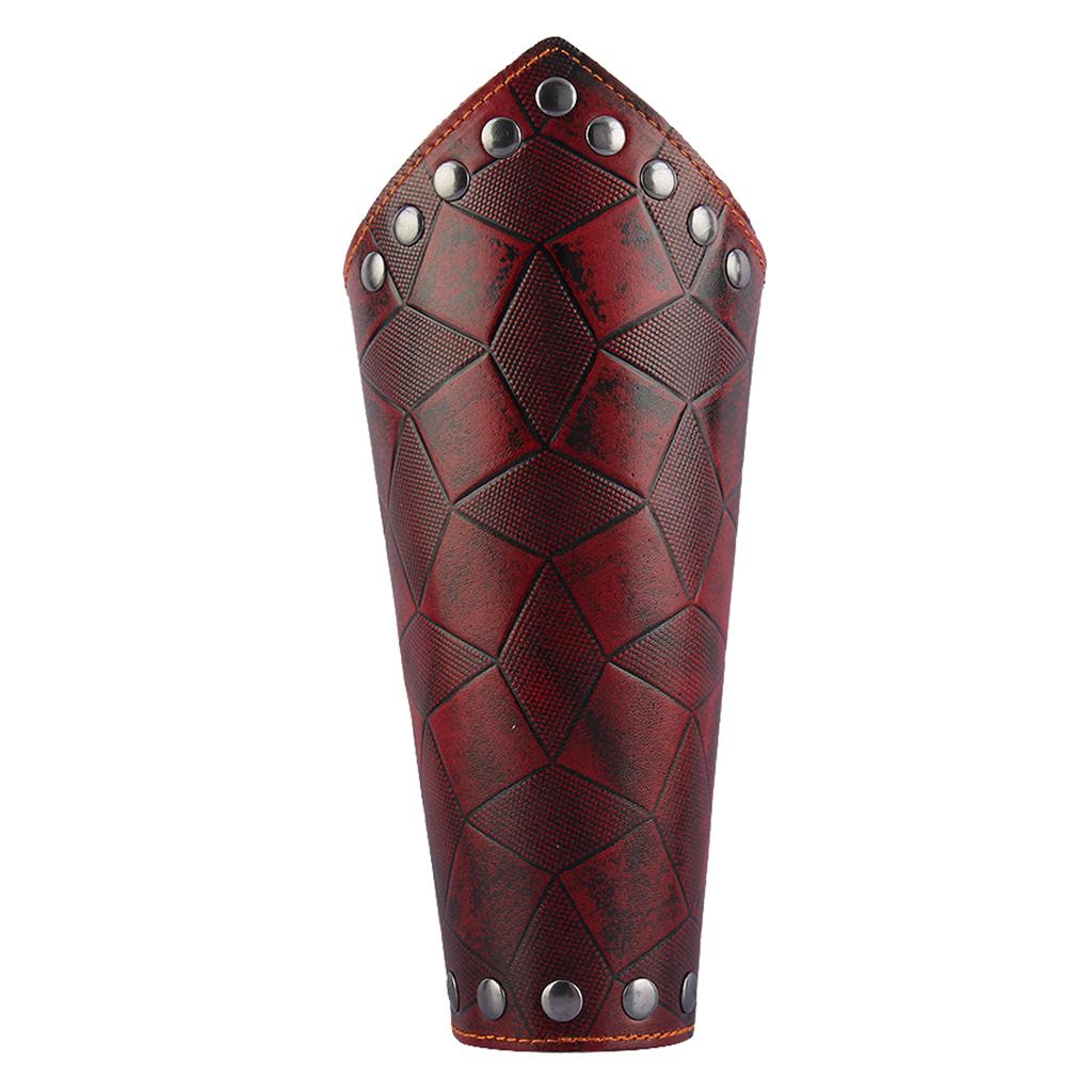 Medieval Unisex Bracers Leather Gauntlet Wristband Bracers Arm Armor Red