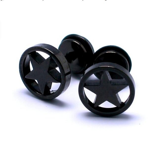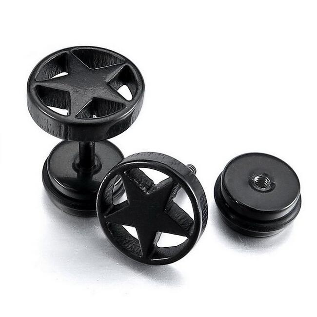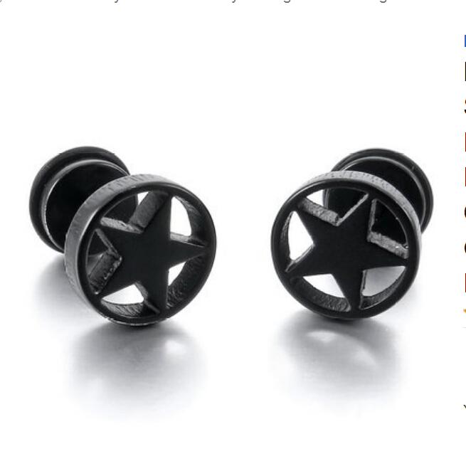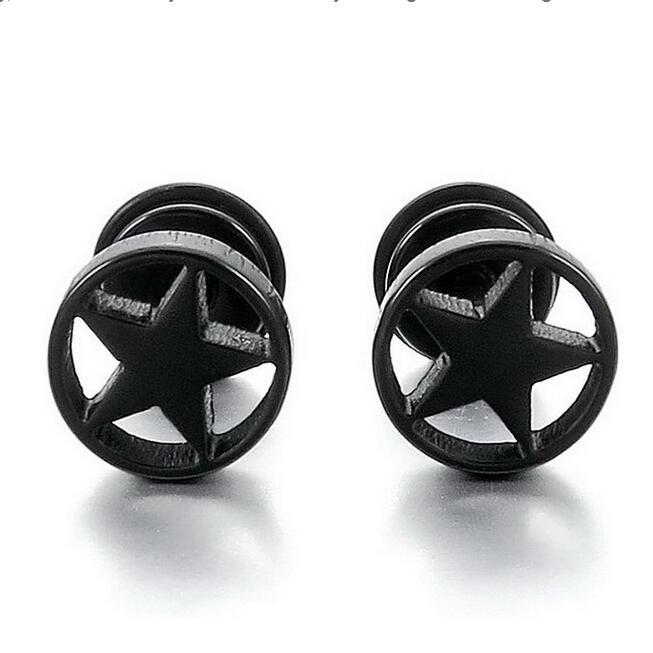 Men's 316L Stainless Steel Round Stars Pentagram Ear Studs Earrings Jewelry