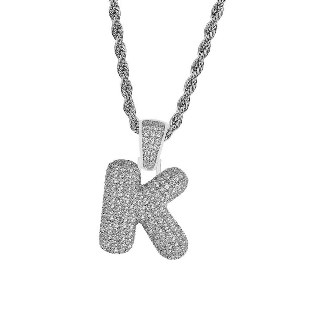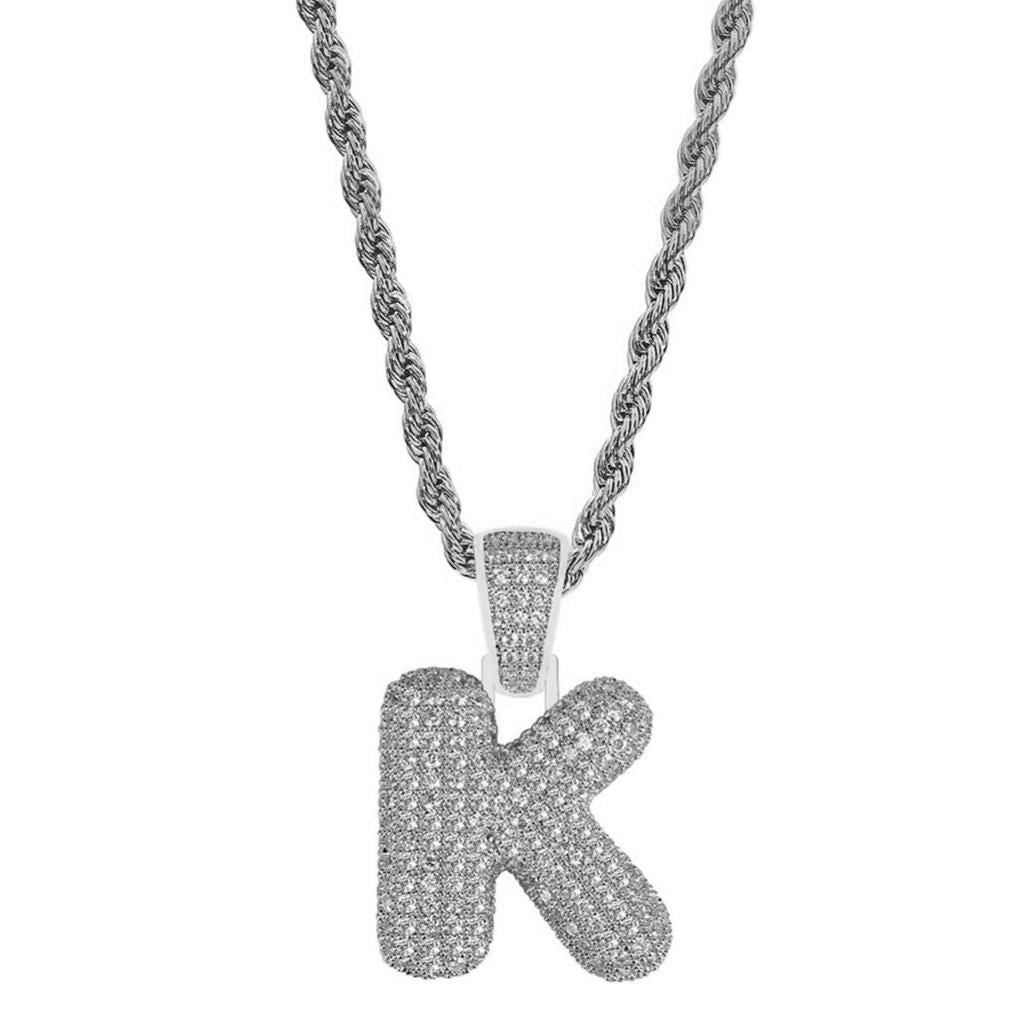 This pendant features with letter 'K', hip hop design and high polished iced cut rhinestone to give the pendant shiny look.