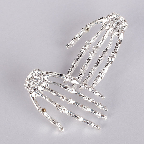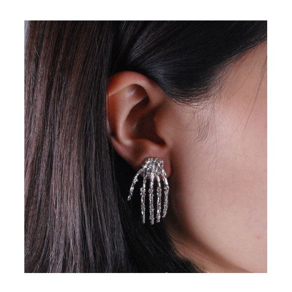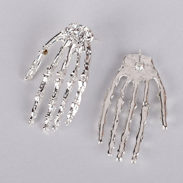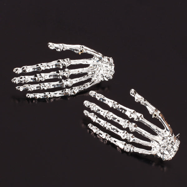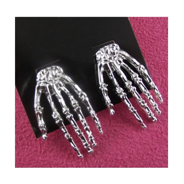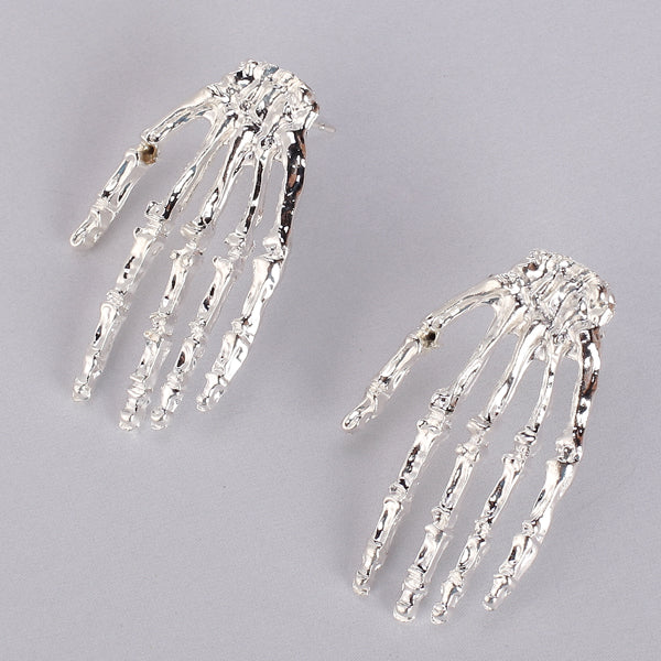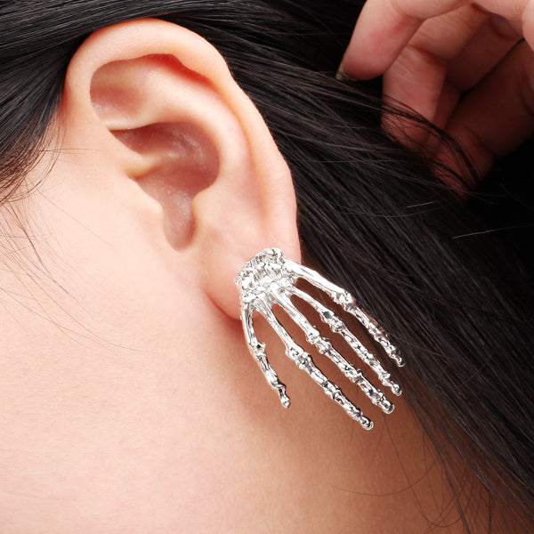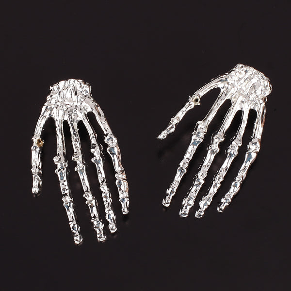 Pair Silver Punk Gothic Big Skeleton Hand Stud Earring