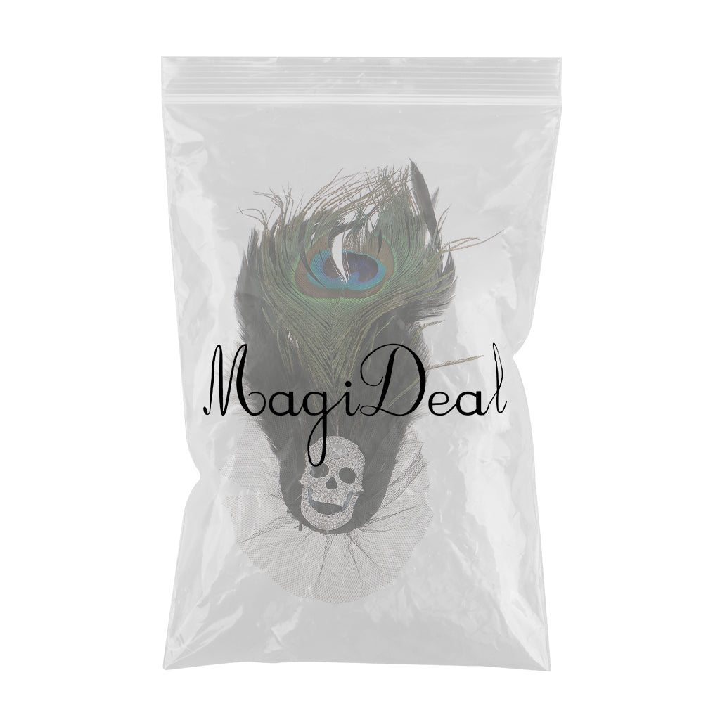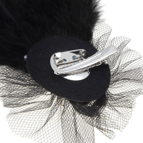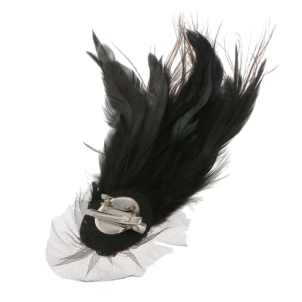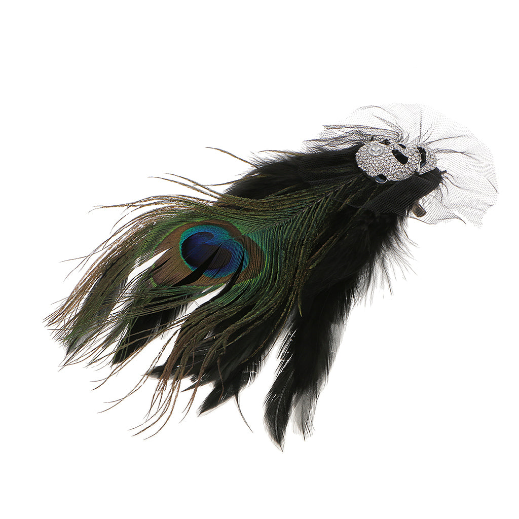 • Material: Peacock feather, rooster feather, rhinestone, alloy, mesh