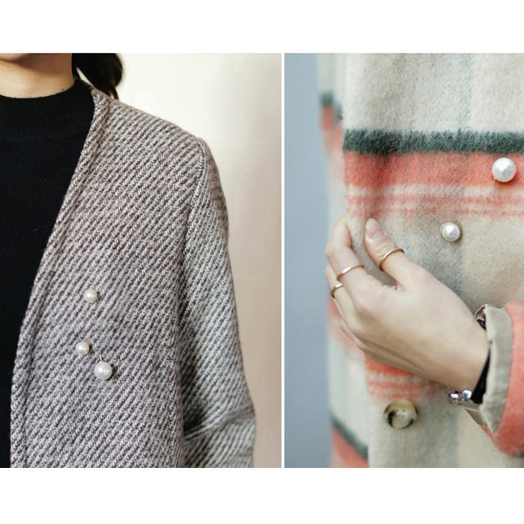 Pearl Brooch Lapel Pin Breastpin Women Collar Safety Pin Silver design 1
