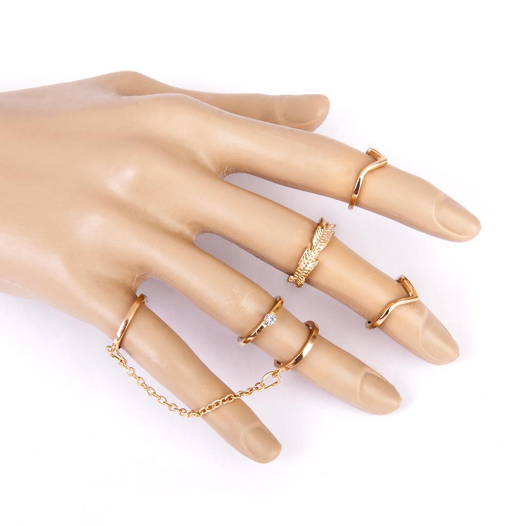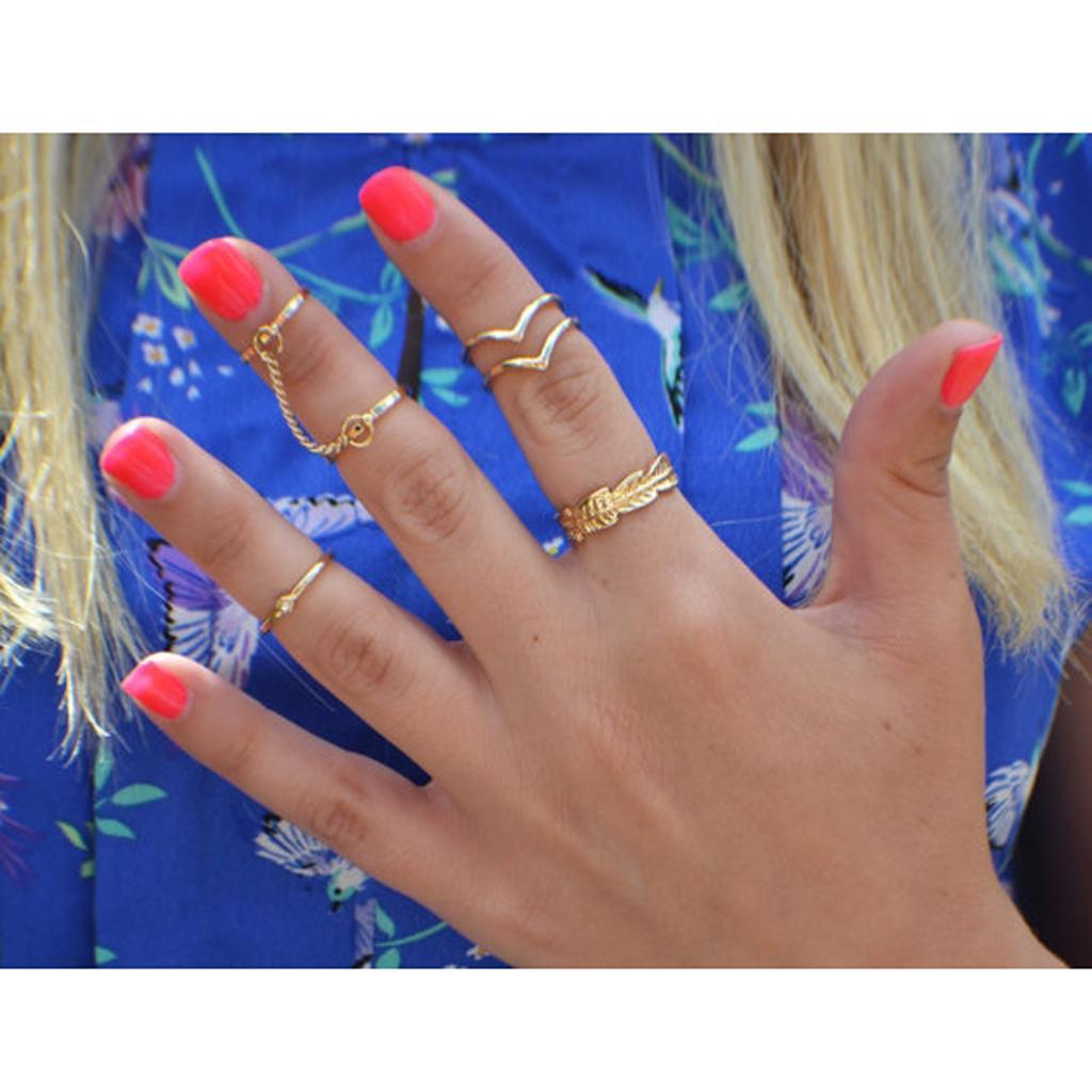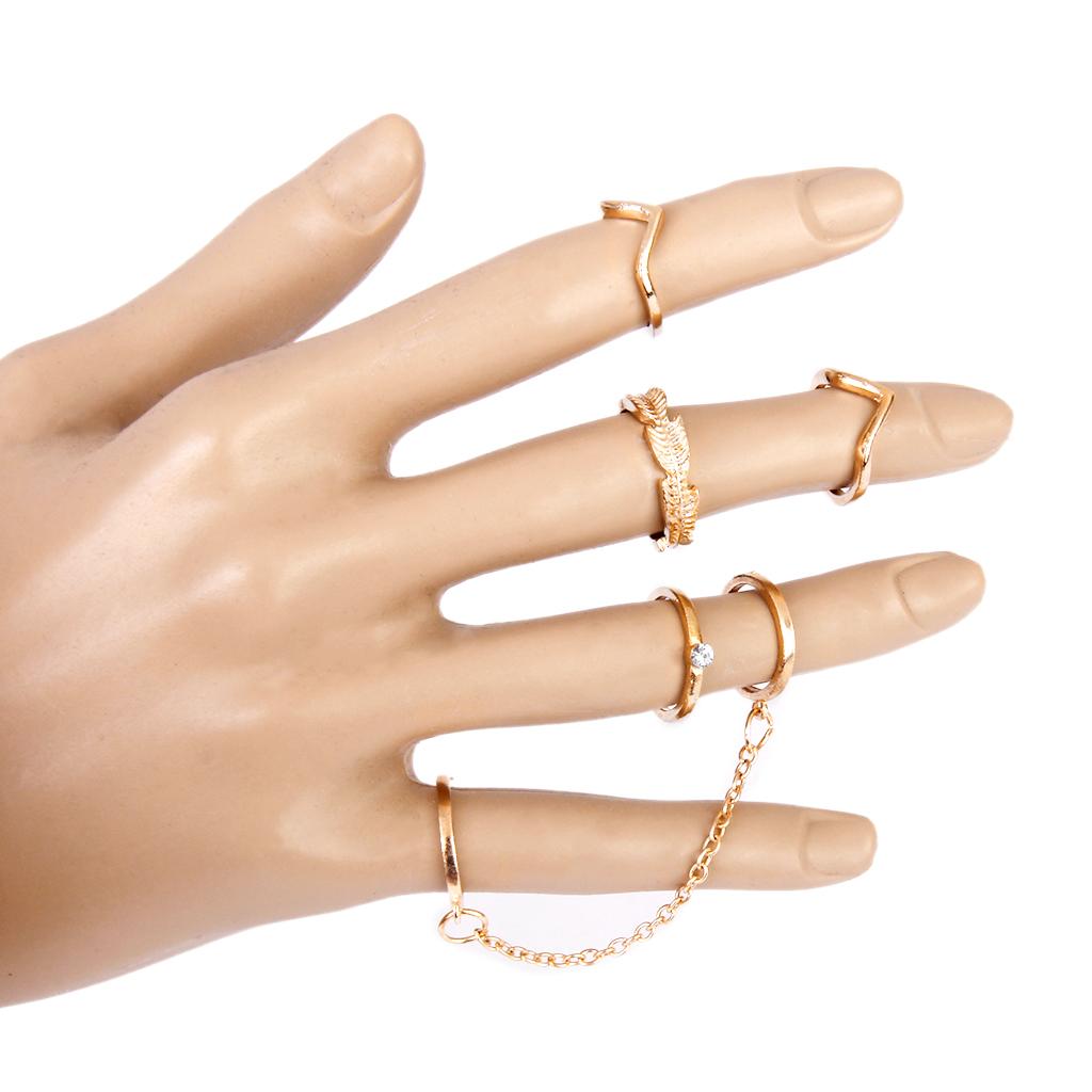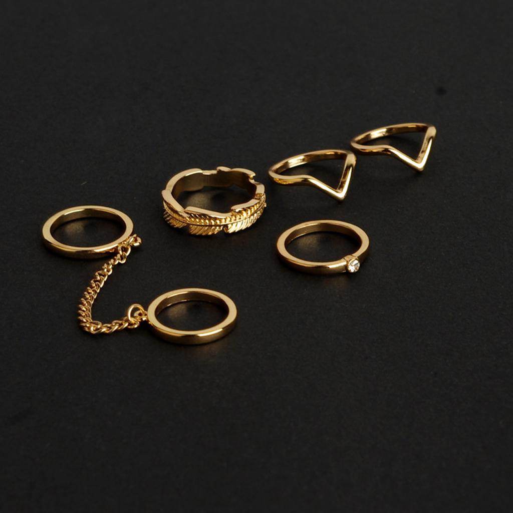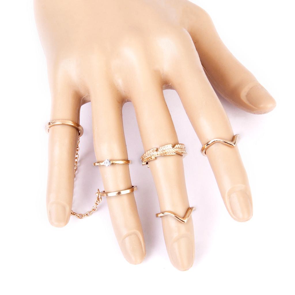 Phenovo Fashion Gold Alloy 6pc/Set Rings Tail Knuckle Joint Finger Tip Ring