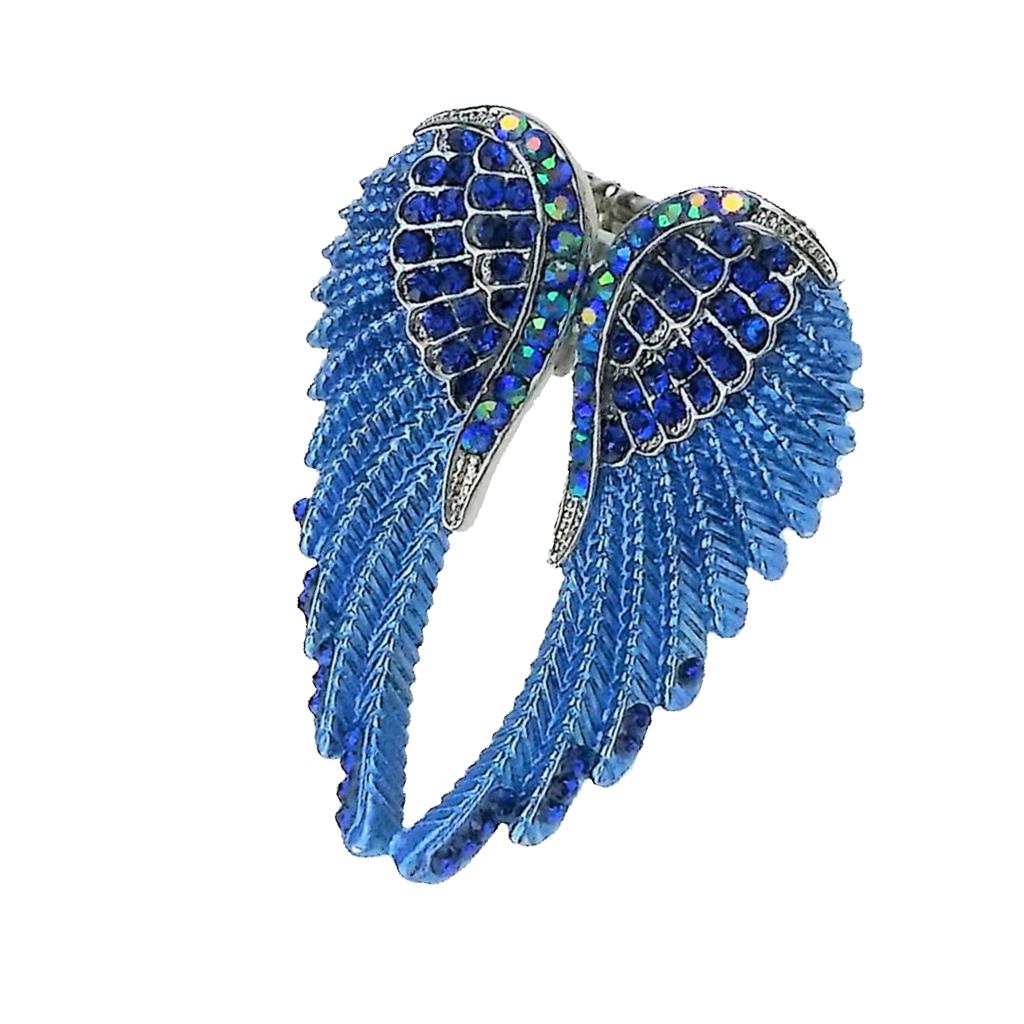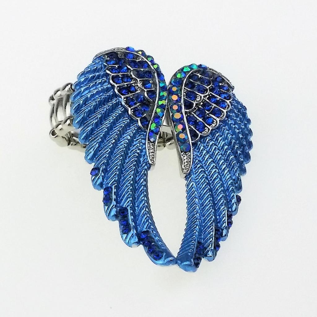 Punk Rock Angel Wing Ring Crystal Rhinestone Stretch Ring Biker Blue