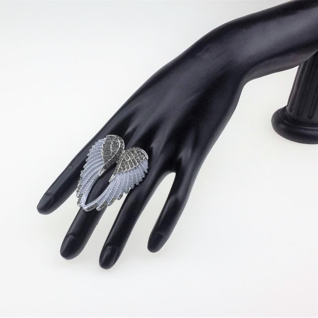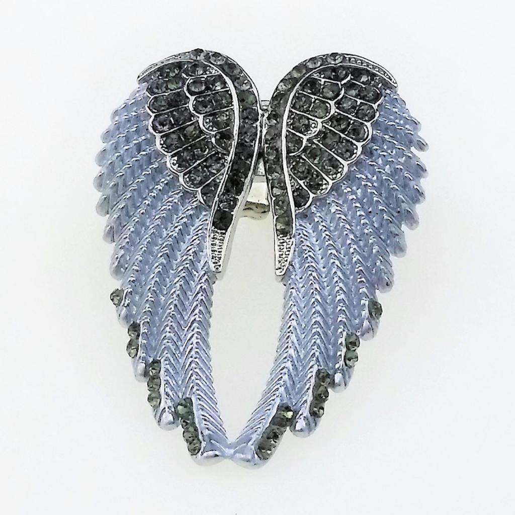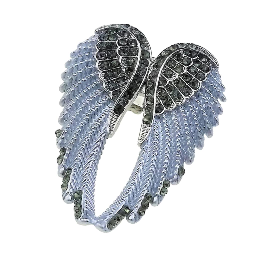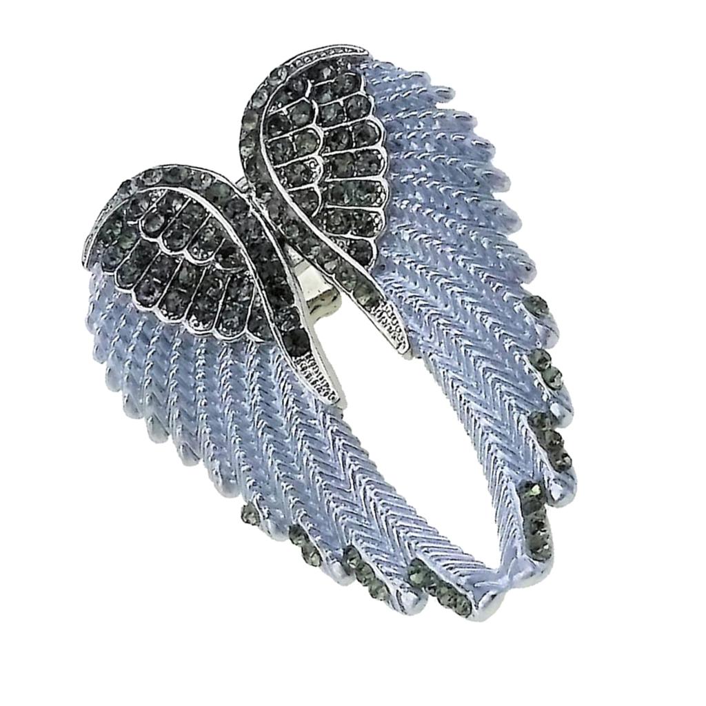 Punk Rock Angel Wing Ring Crystal Rhinestone Stretch Ring Biker Gray