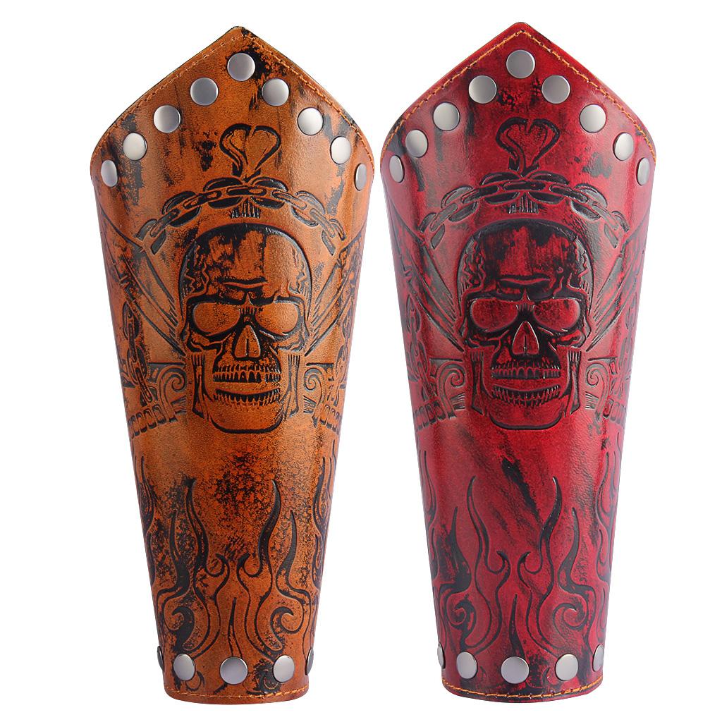 Unique leather bracelet bangle Embossed Skeleton Skull bracer with String ties, and it make it fairly adjustable to different arm sizes