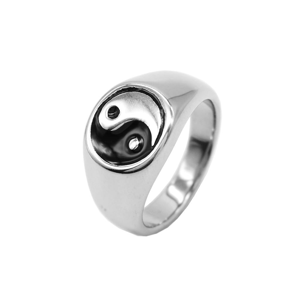Retro Stainless Steel Tai Chi Finger Ring Yin Yang Spinner Ring US Size 13