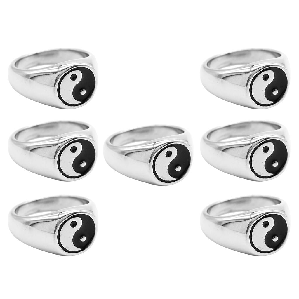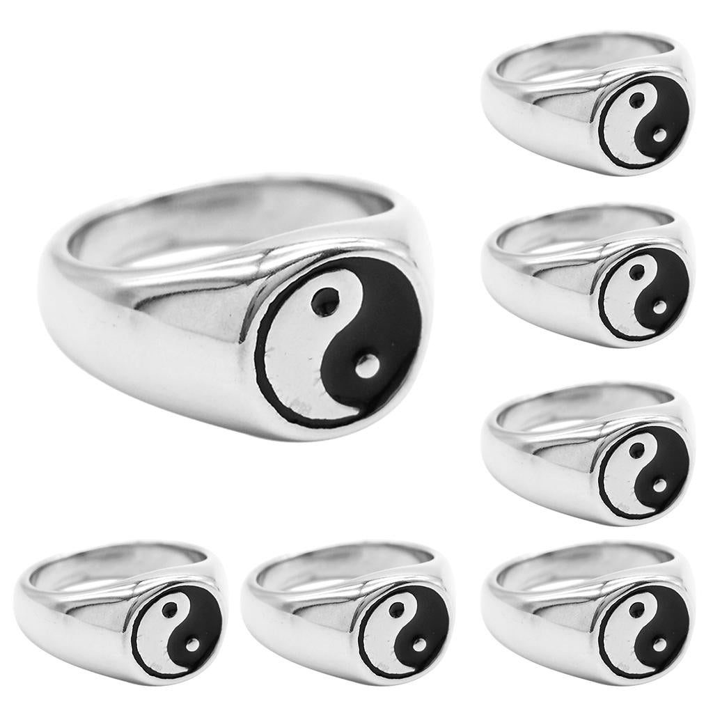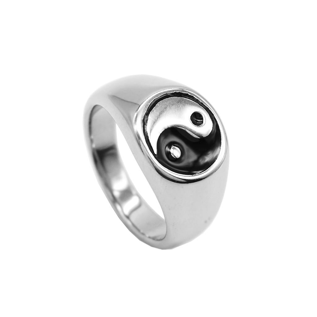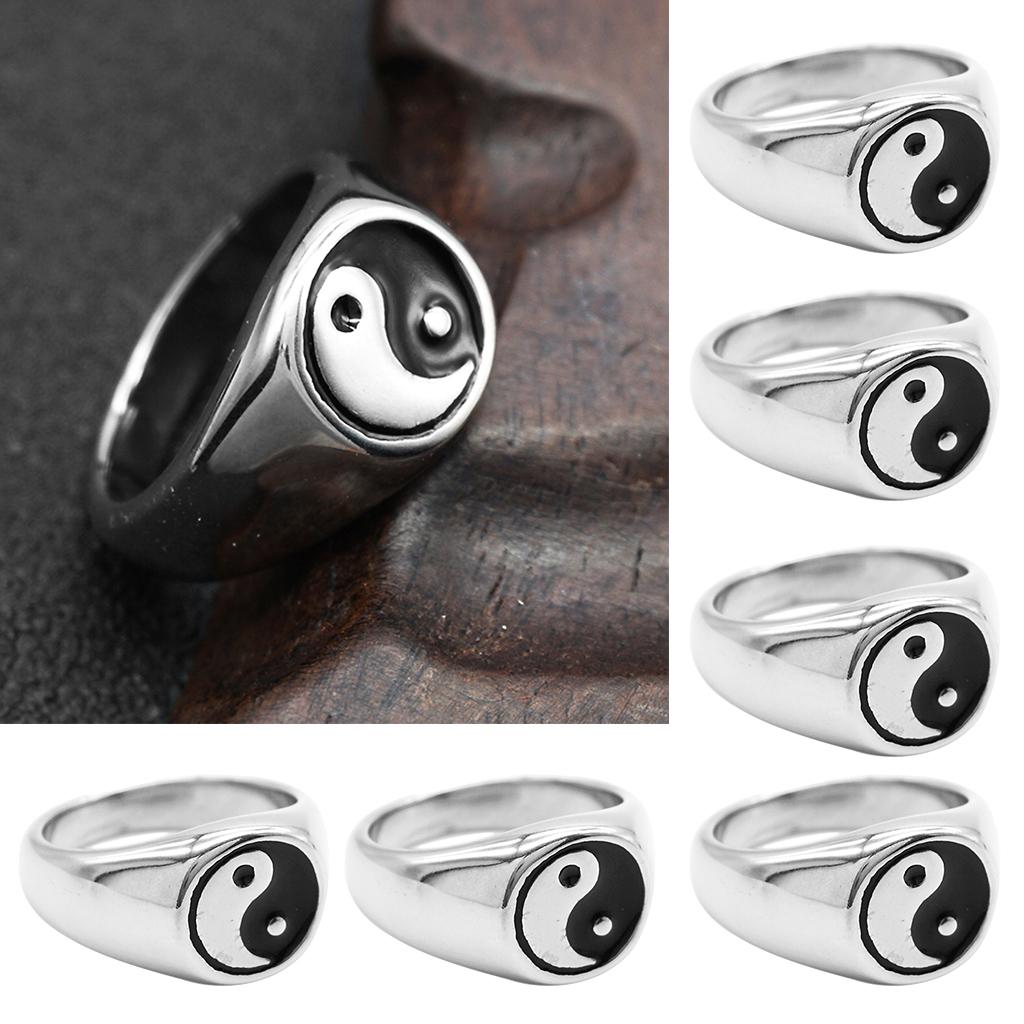 Retro Stainless Steel Tai Chi Finger Ring Yin Yang Spinner Ring US Size 7