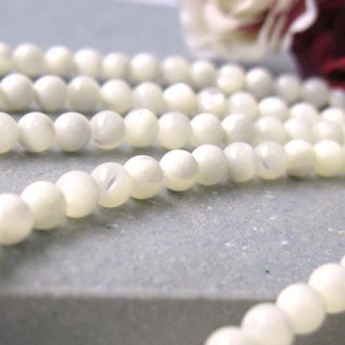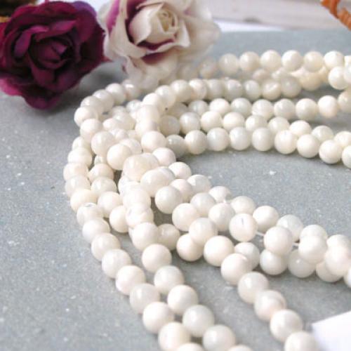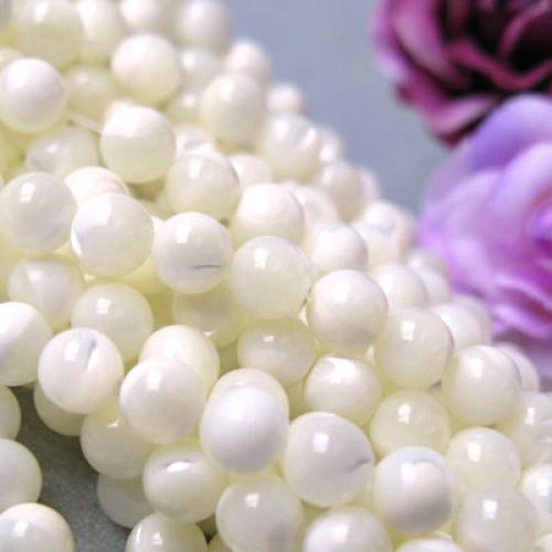 Natural Seashell beads, 6mm round, cabochon cut with middle drilled drilled hole (see string direction in photo),16" Strand packaging, grade B. 105 carats. From Japan. The finest gemstones! The finest beads! They are good for necklace, bracelets and earrings.