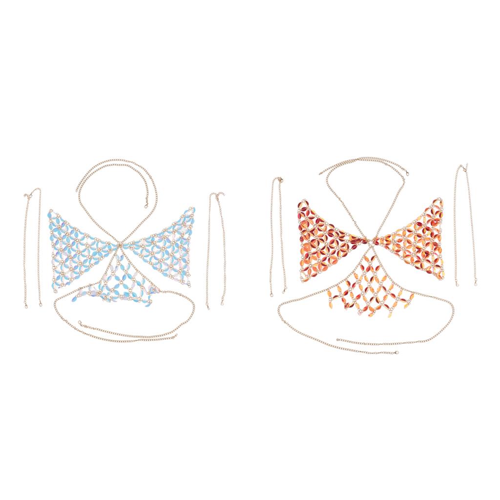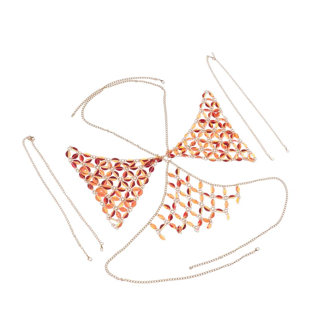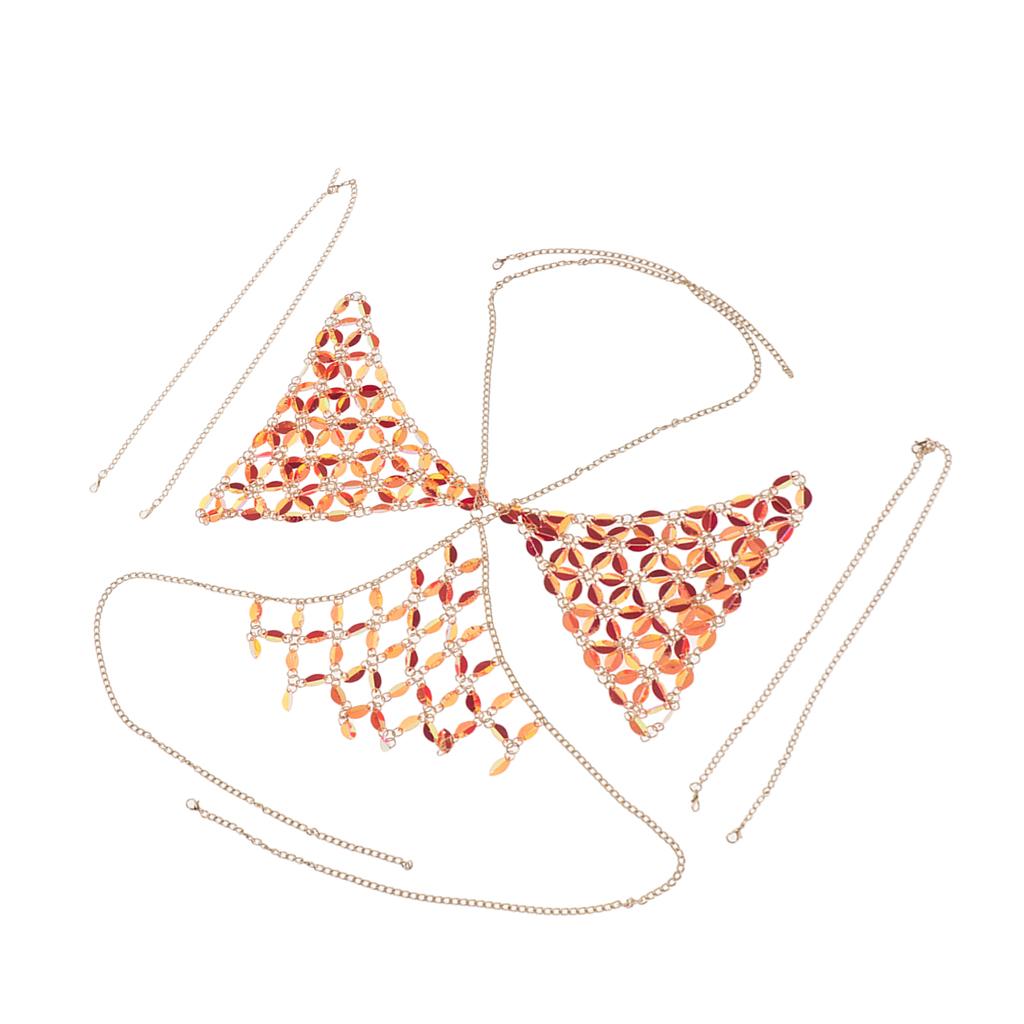 Sexy Bra Bikini Women Halter Sequin Tassel Summer Beach Chest Chain Rose Red