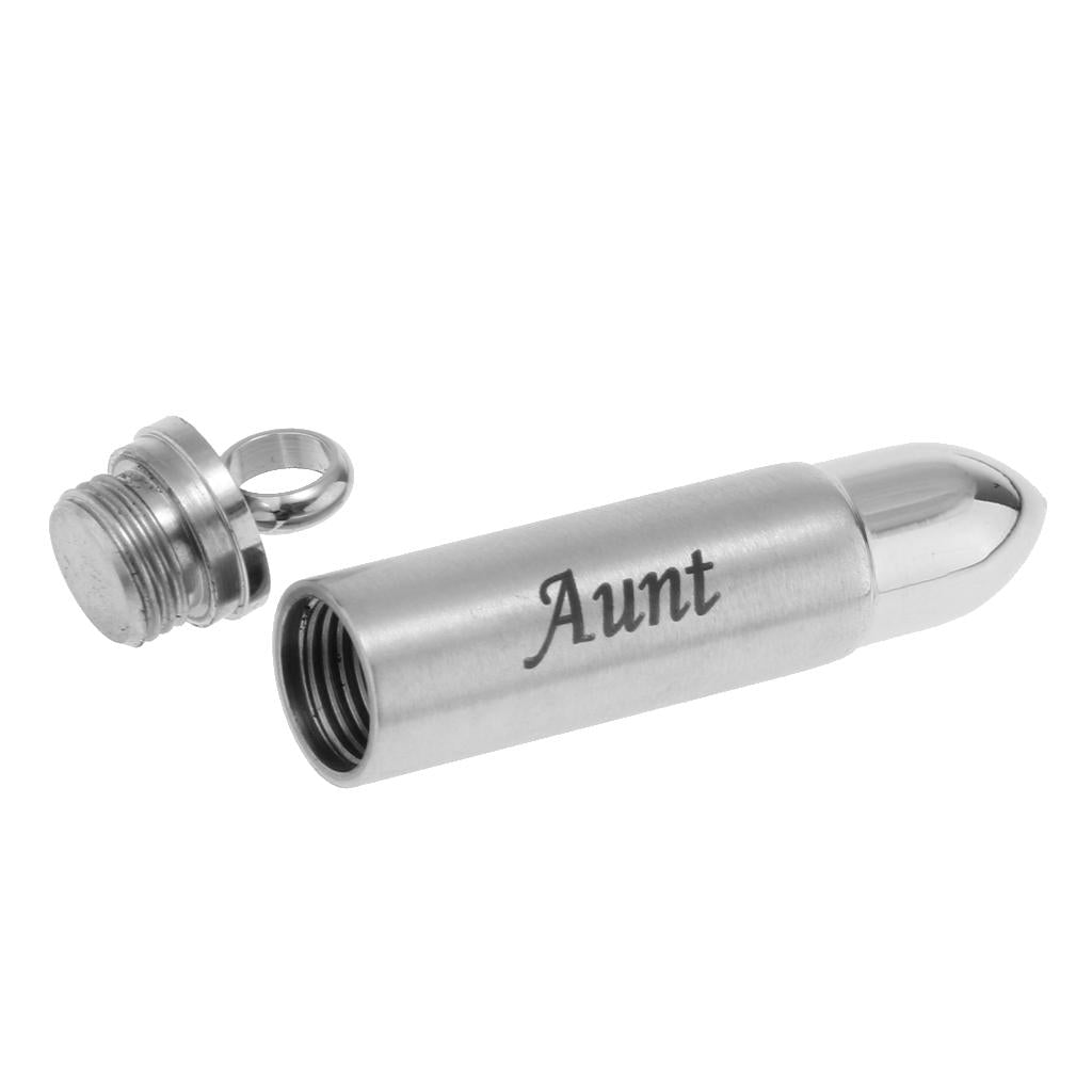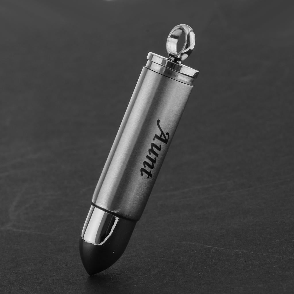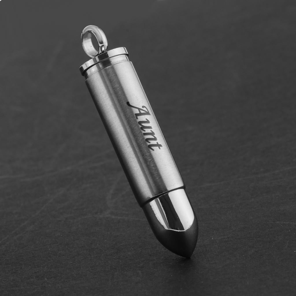 Stainless Steel Bullet Shape Cremation Ashes Urn Memorial Pendant Aunt